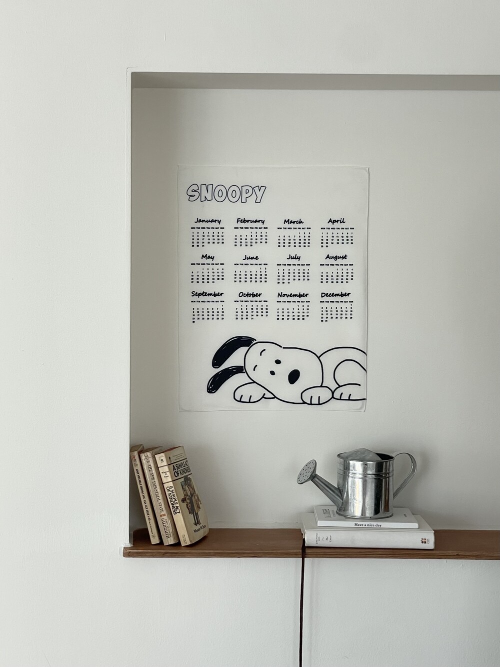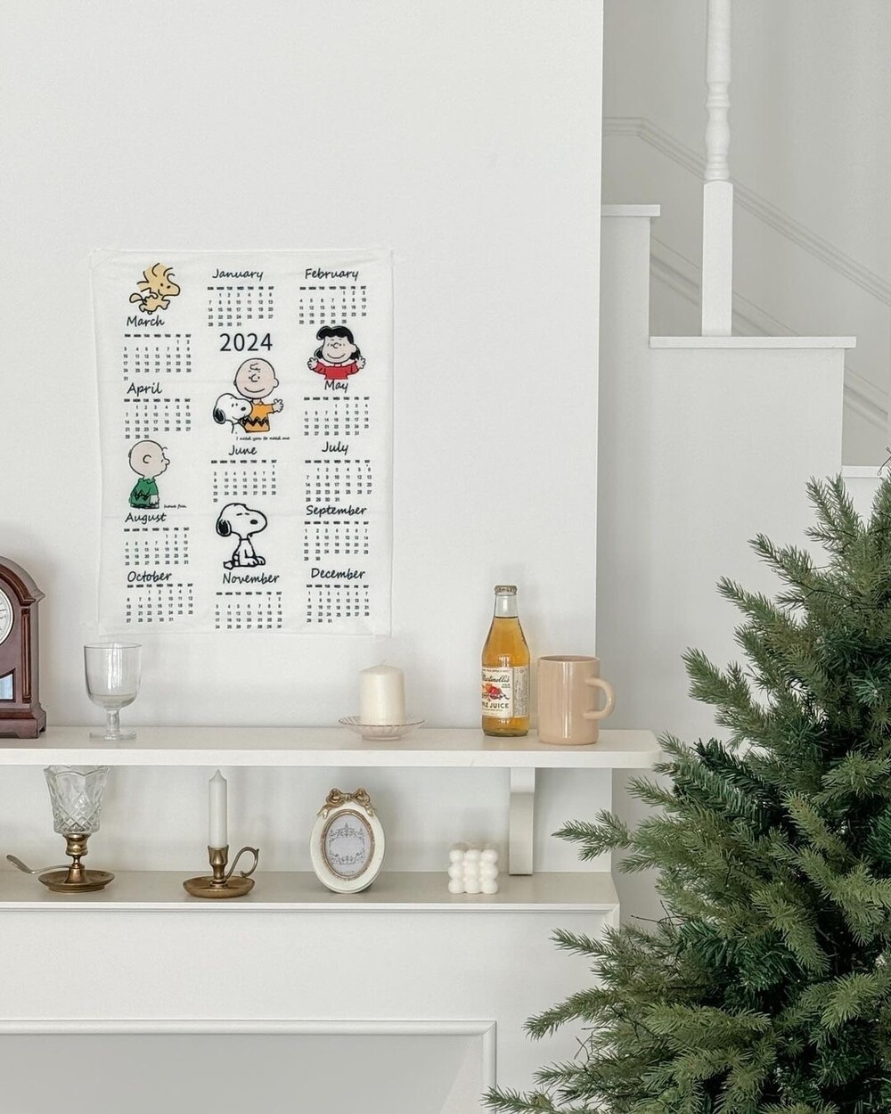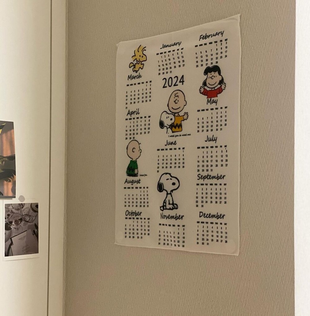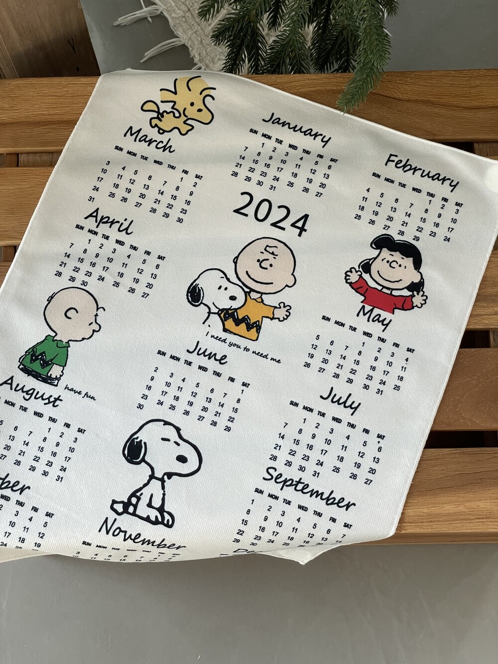귀여운 스누피 친구들이 그려진 2024 패브릭 캘린더입니다.