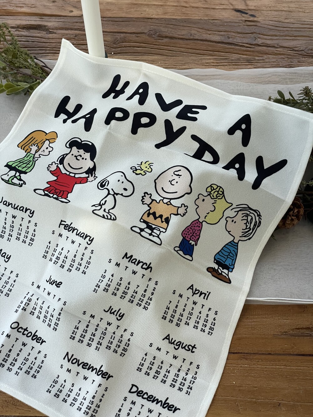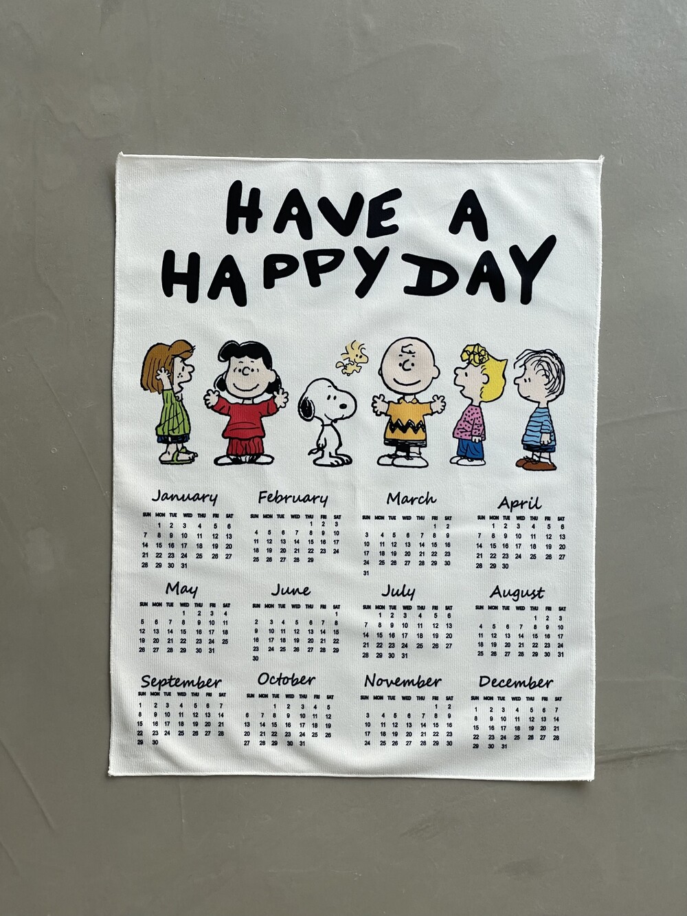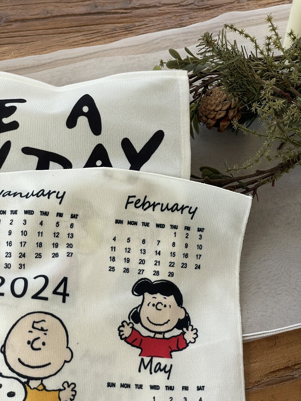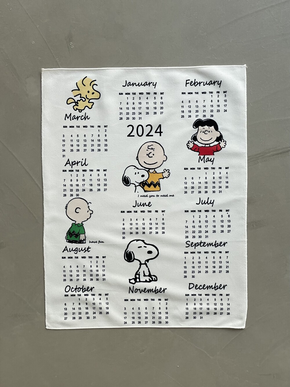 귀여운 스누피 친구들이 그려진 2024 패브릭 캘린더입니다.