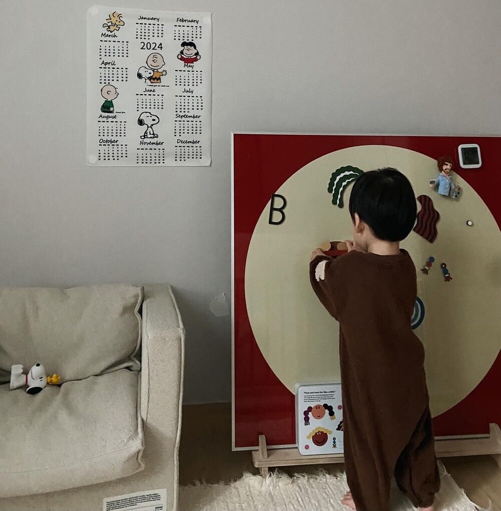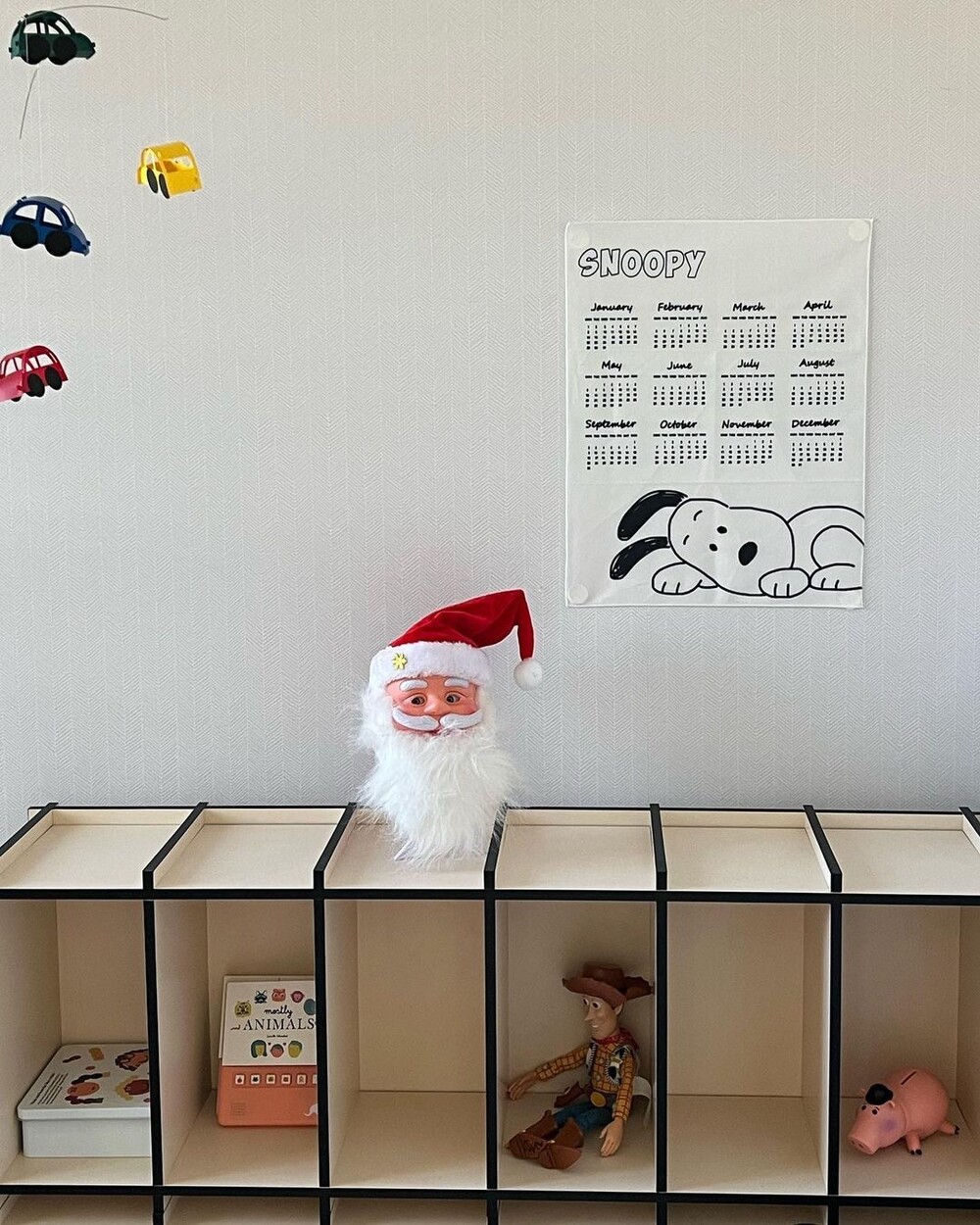 "이준이 공간에 찰떡같이 어울리는 메린드레 스누피 패브릭 달력. 트리옆에 붙이거나 아이방에 붙여도 너무 예쁘더라구요! 양면테이프 4개가 함께 동봉 되어 있어 깔끔하고 쉽게 붙일 수 있답니다. 이준이는 “멍멍이다” 하면서 엄청 좋아하더라구요!"