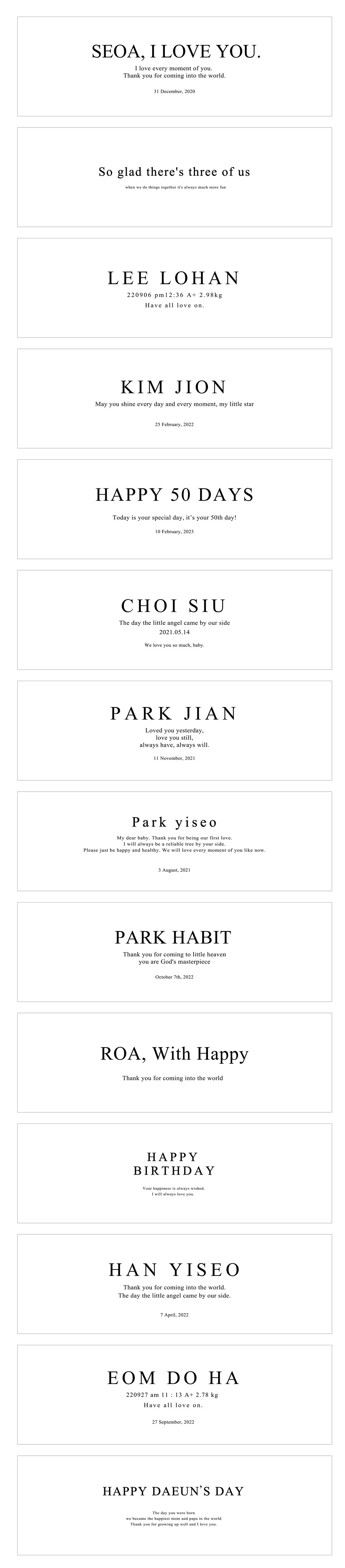소중한 우리 아이의 이름과 아이에게 전하고 싶은 말을 기록해드립니다.