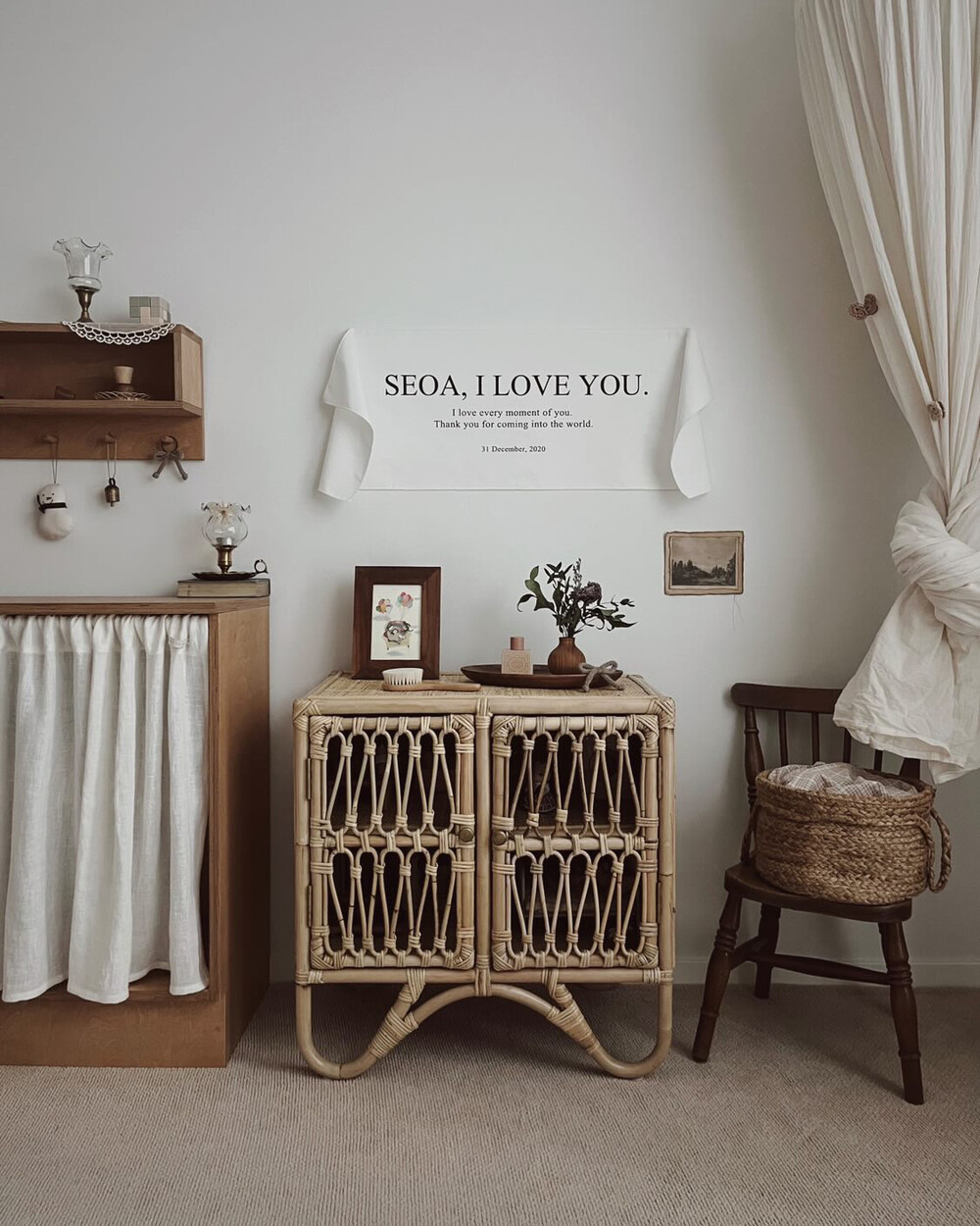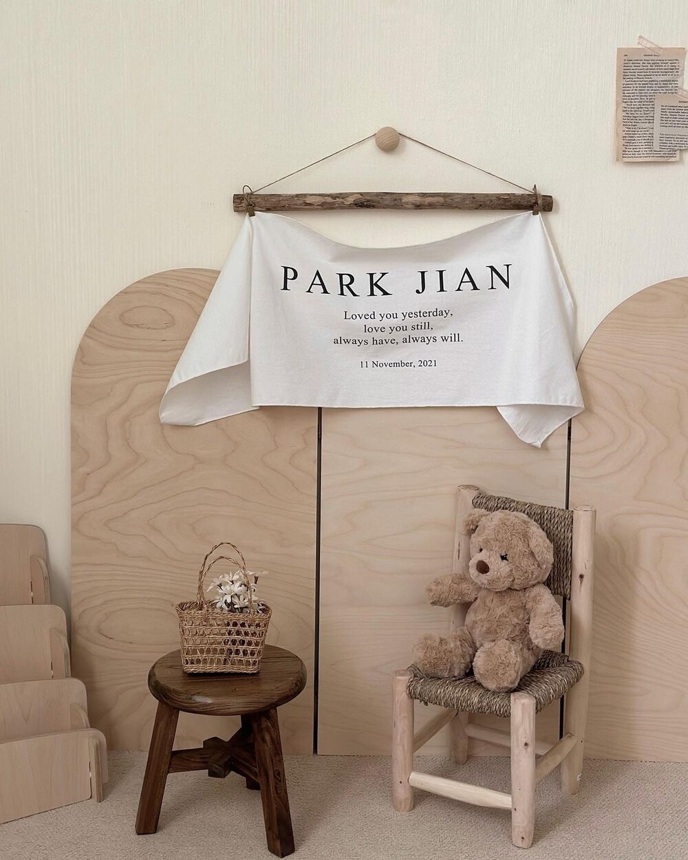 빈티지한 우드감성이 돋보이는 우드걸이세트로 아기방에 패브릭포스터와 함께 인테리어 해보세요. 기념일이 아닌 날에도 인테리어 소품으로 활용할 수 있답니다.