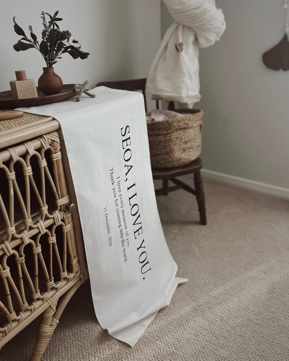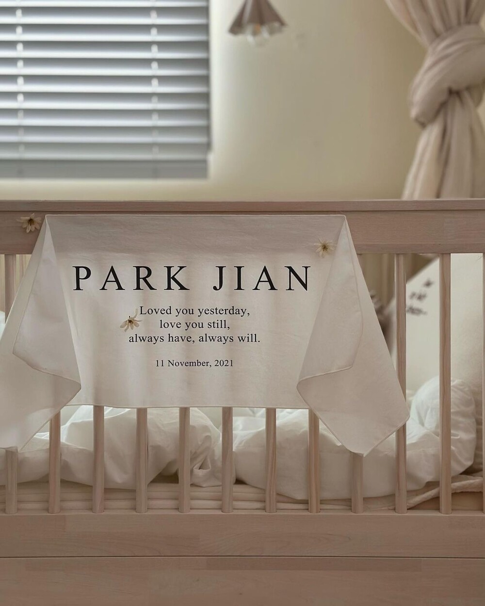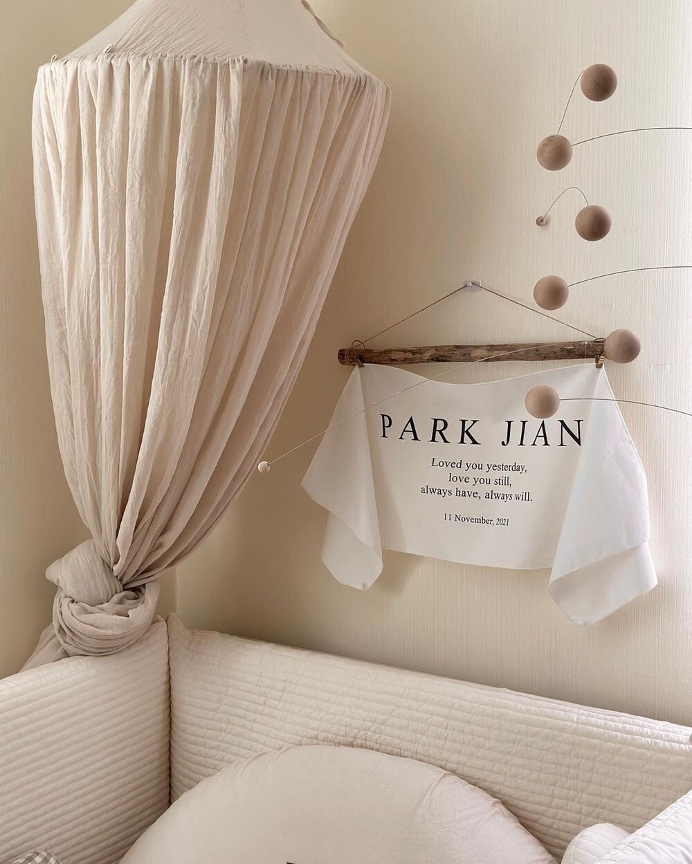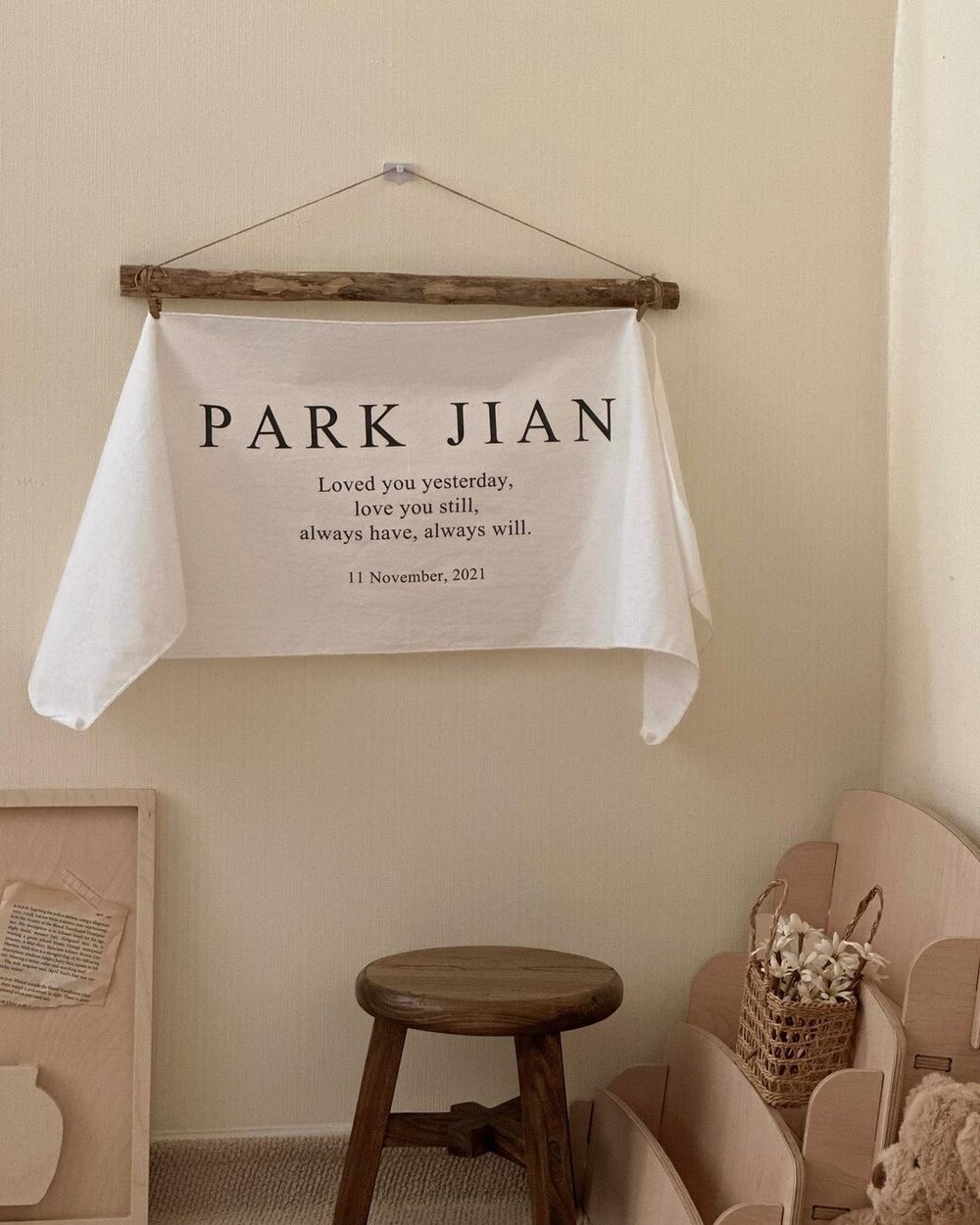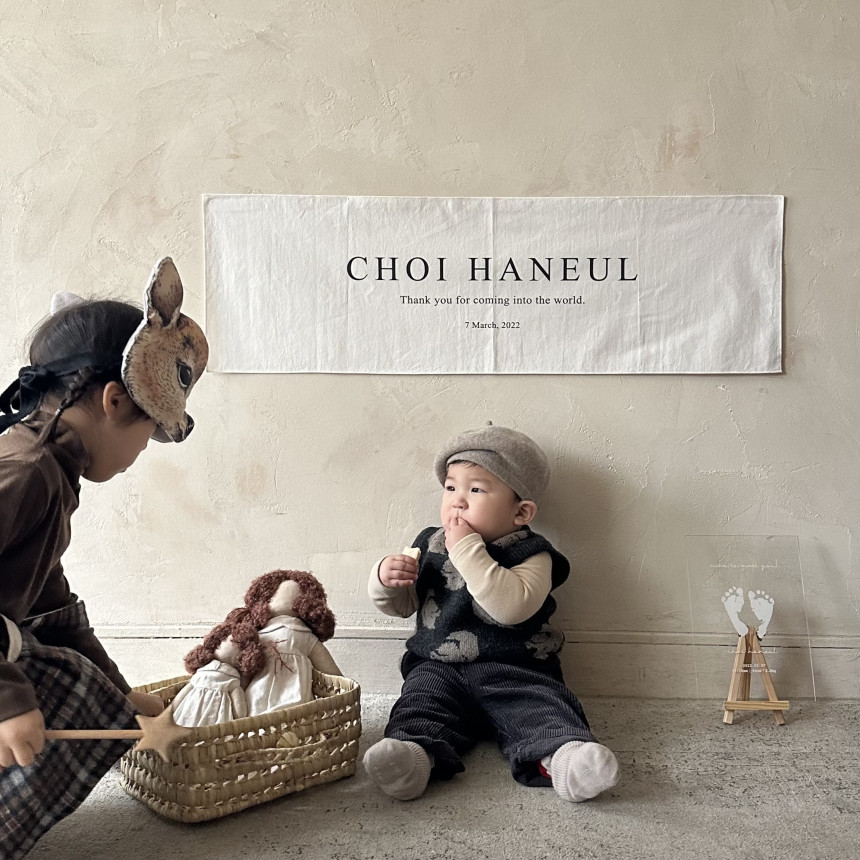원하는 문구로 제작가능 한 메린드레 이니셜 패브릭포스터로 아이의 기념일을 의미있게 남겨주세요.