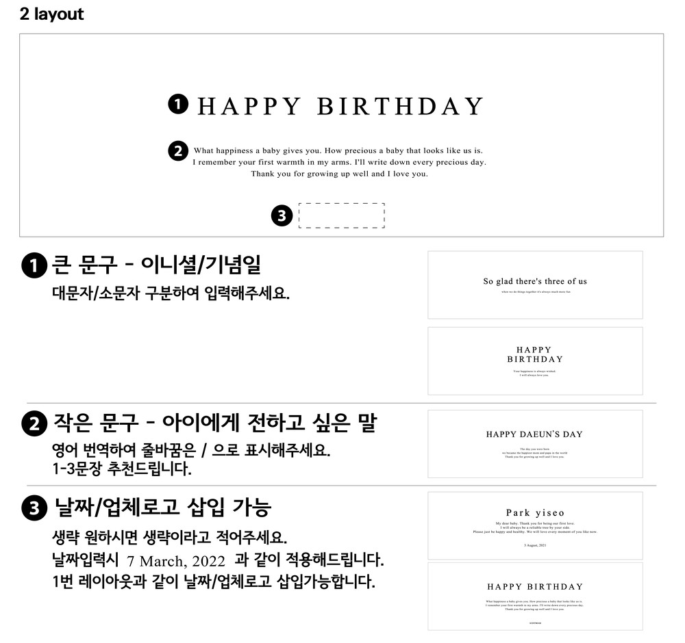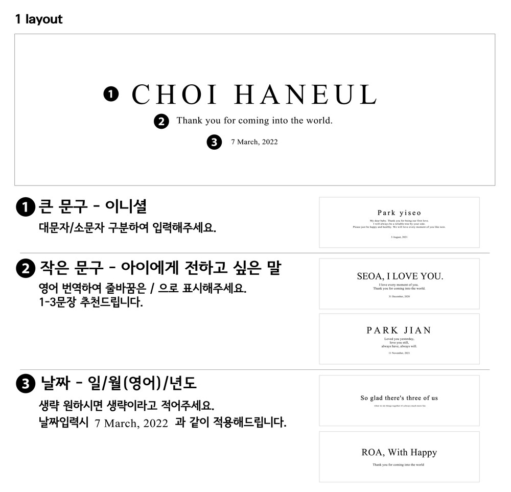 폰트 크기 비율이 다름으로, 원하시는 레이아웃을 선택하여 문구 적용해드립니다.