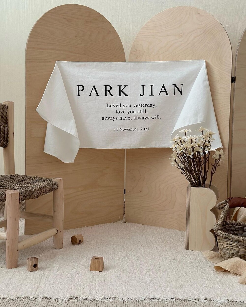 아이의 정보가 담긴 이니셜 패브릭포스터로 더욱 의미있는 기념일 사진을 남길 수 있답니다.