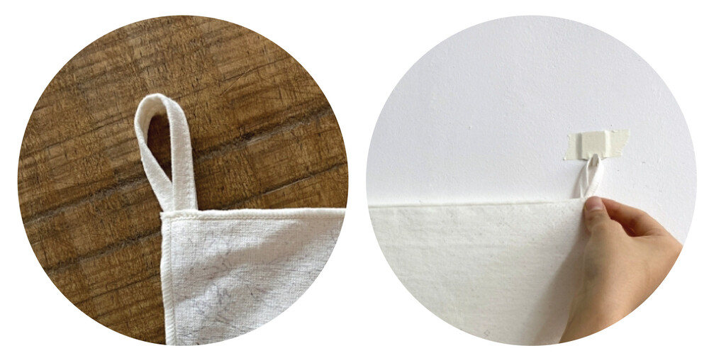 이니셜 패브릭포스터는 가벼워 양면테이프로 부착하여 벽에 고정이 가능합니다.