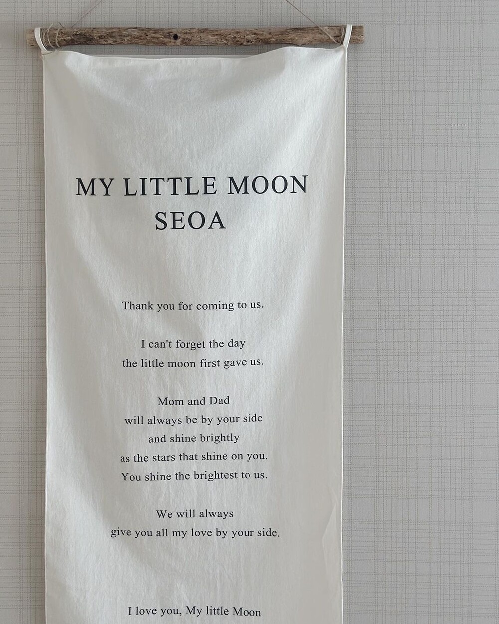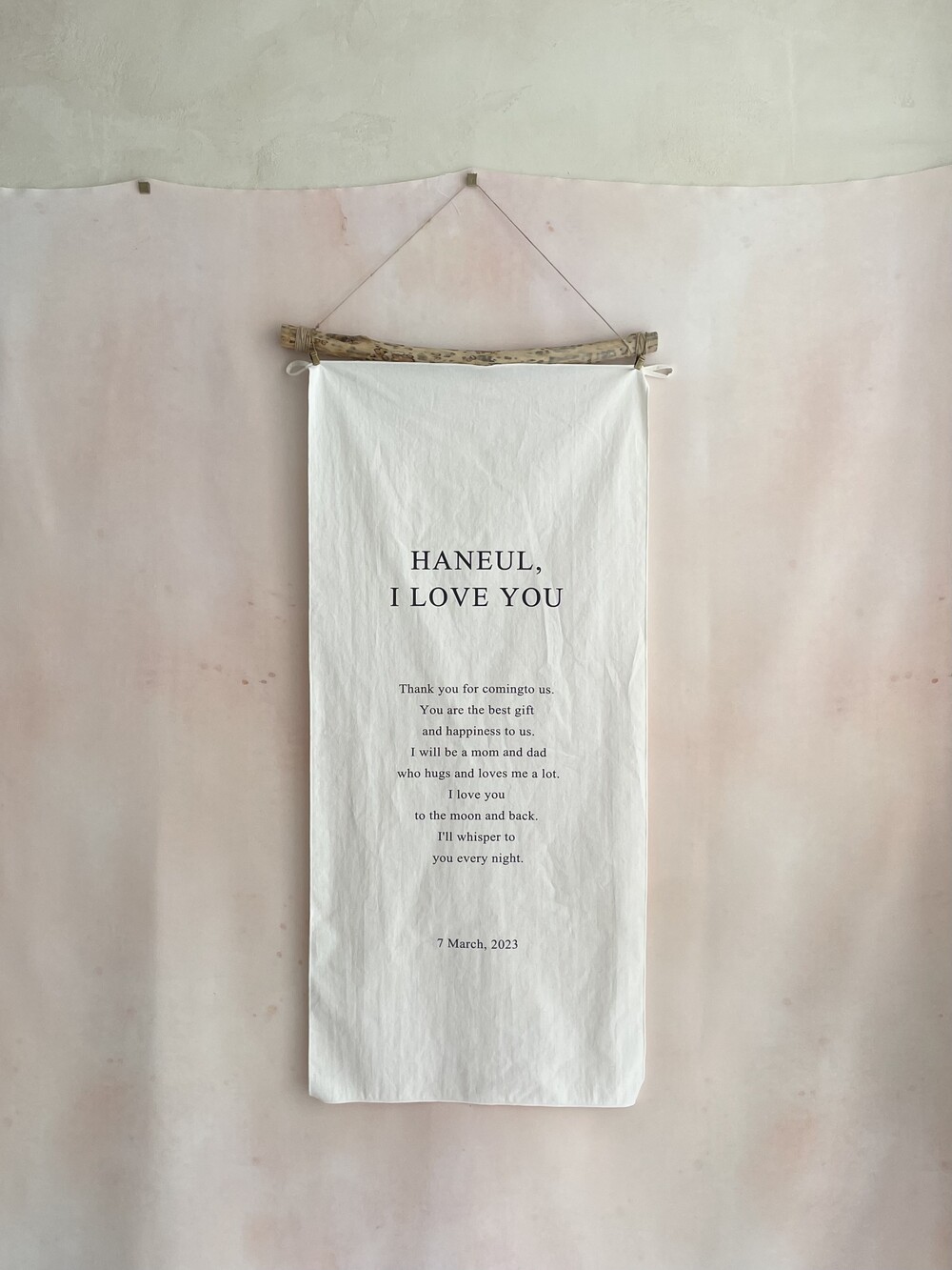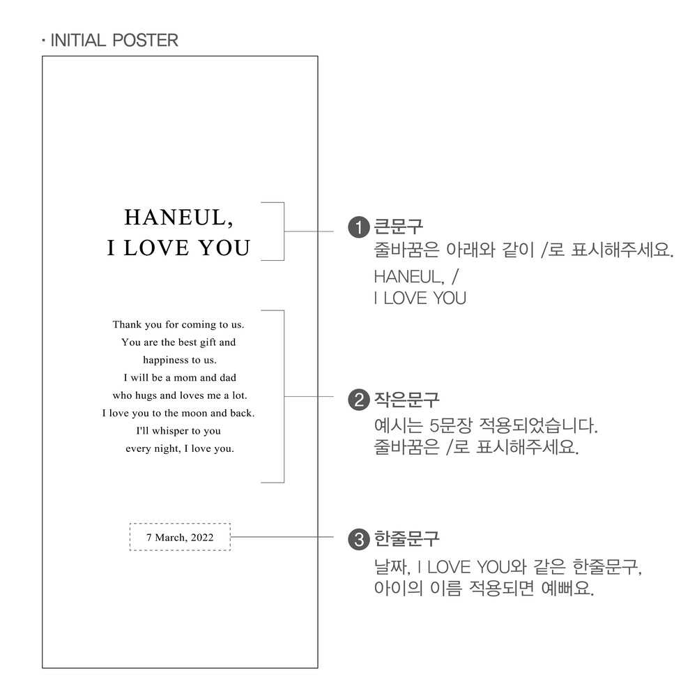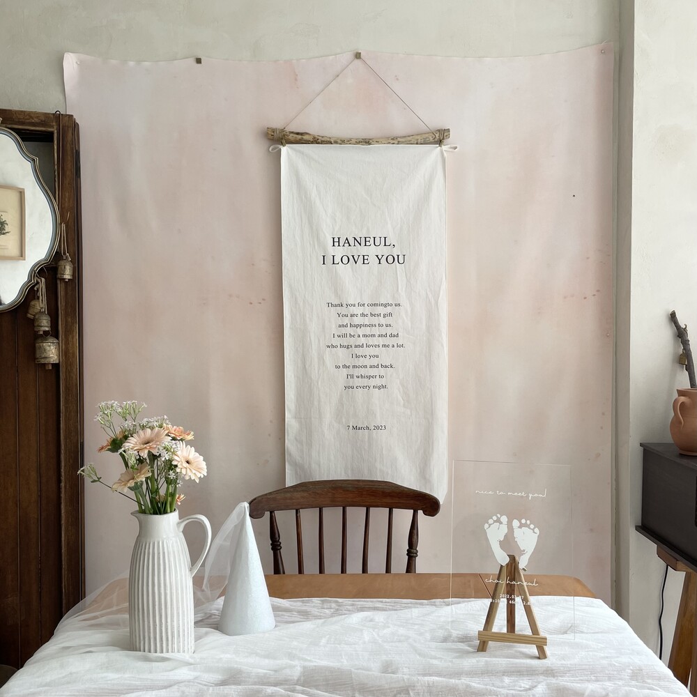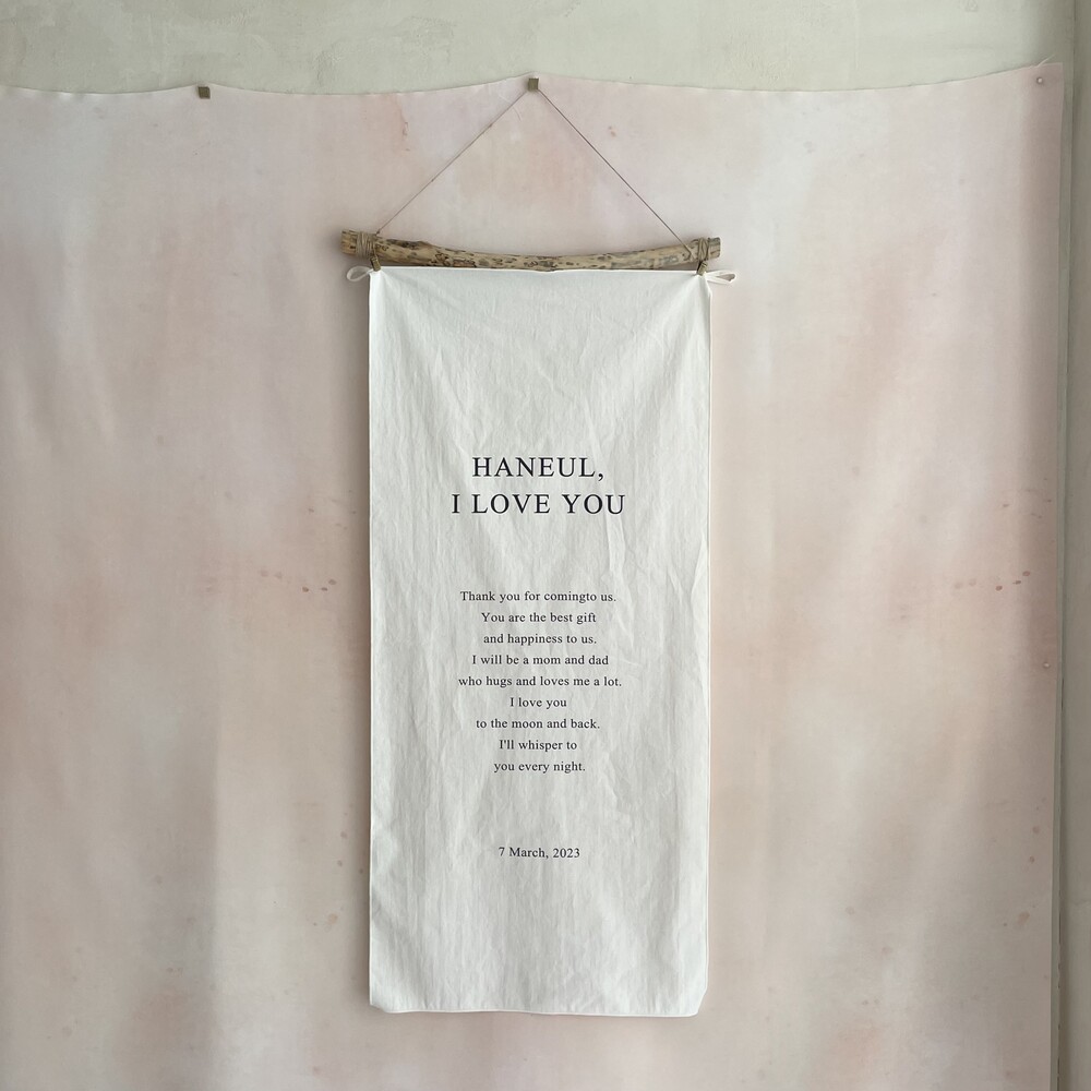 원하는 문구로 제작가능 한 메린드레 이니셜 패브릭포스터로 아이의 기념일을 의미있게 남겨주세요.