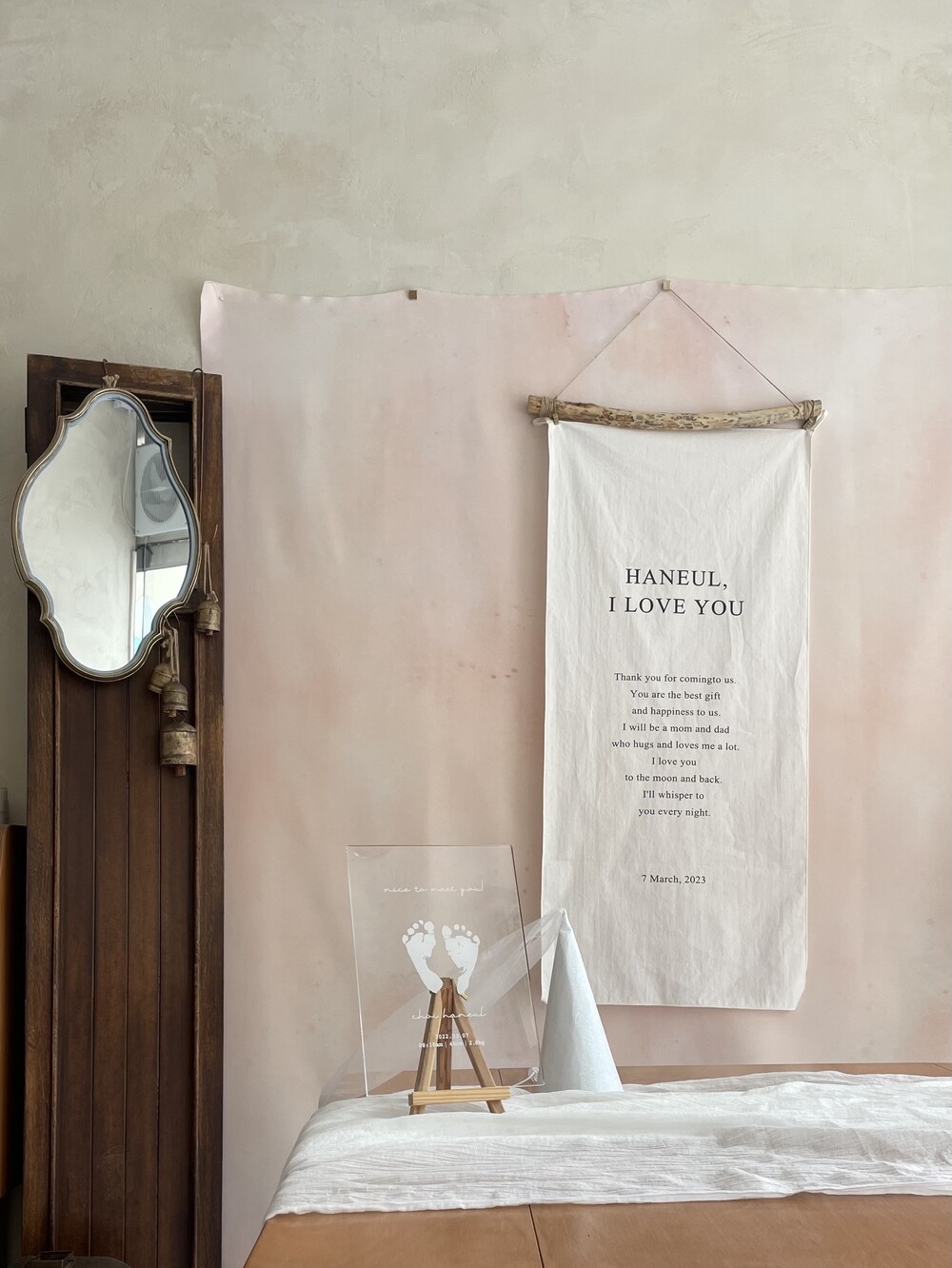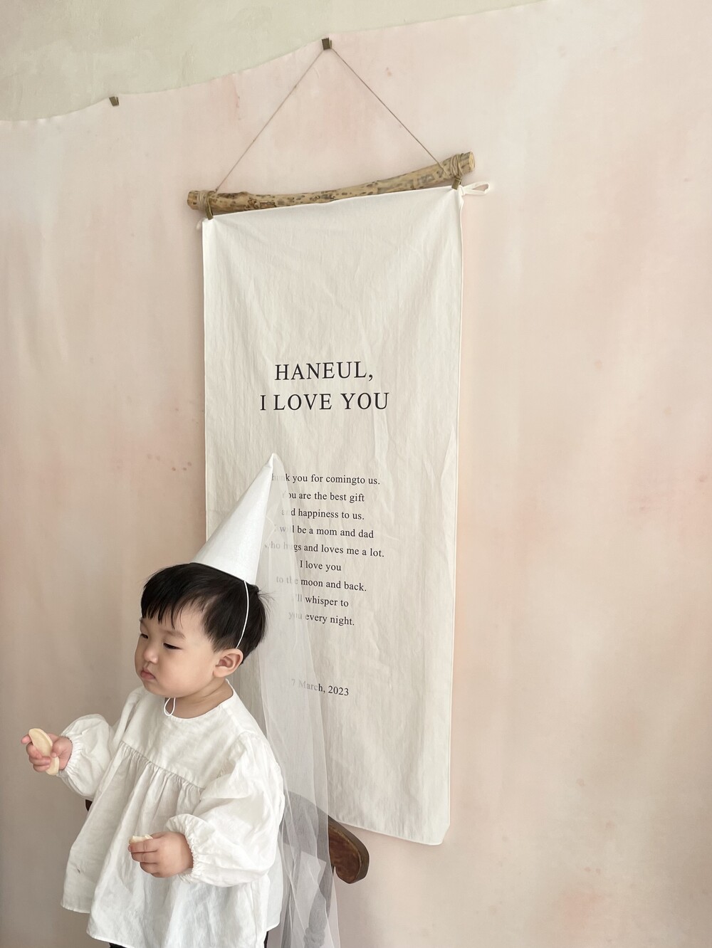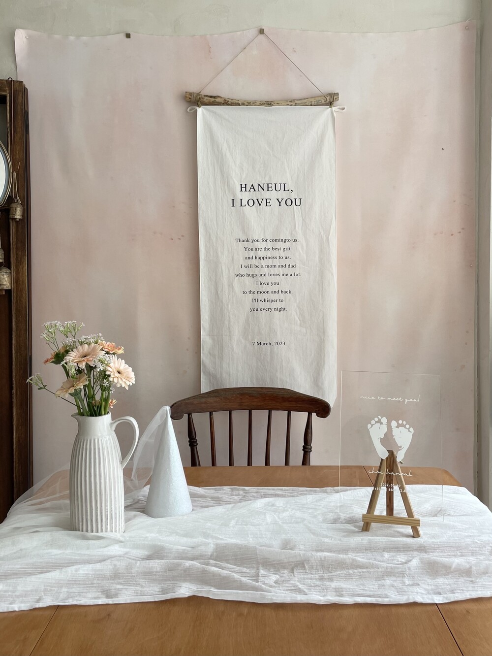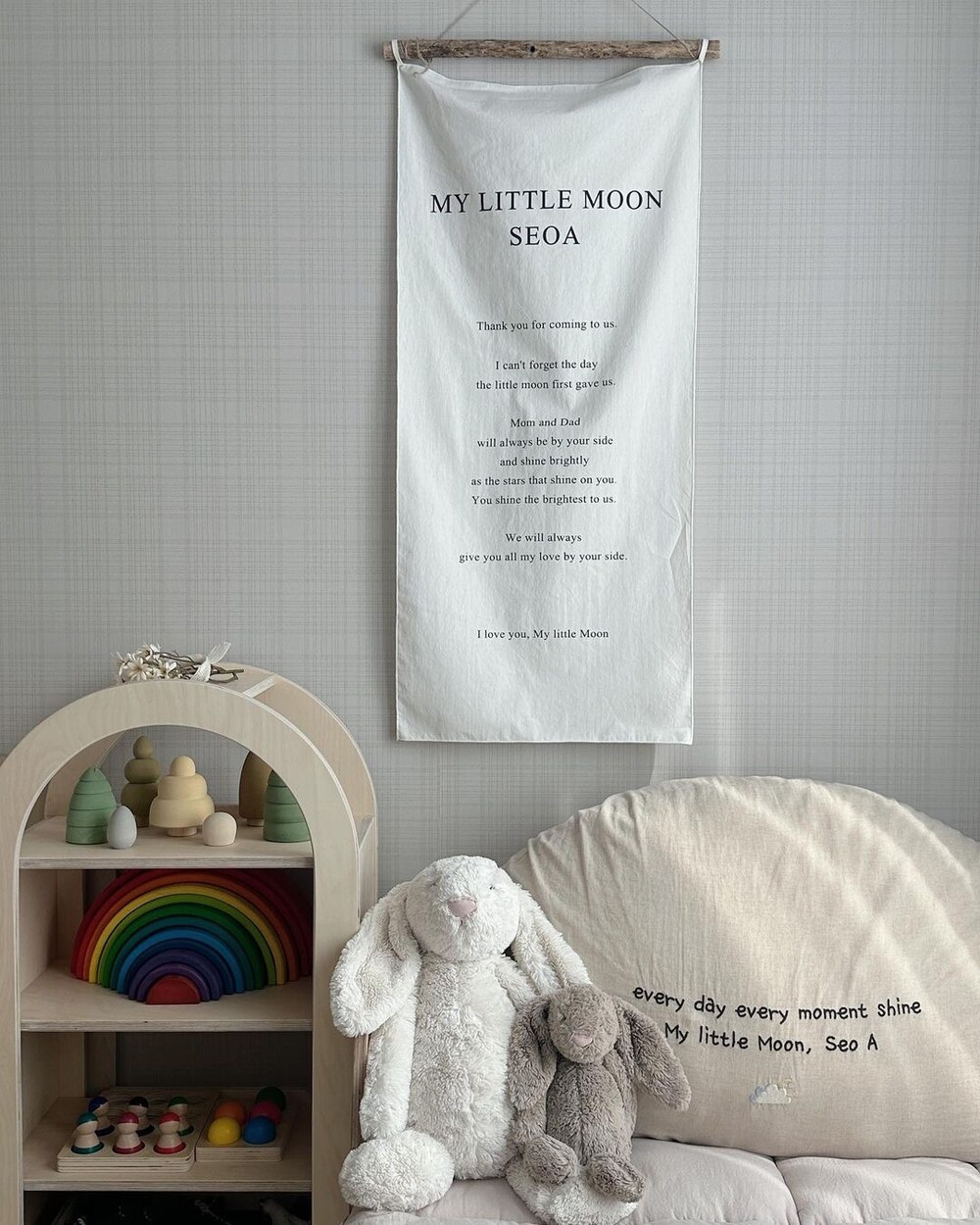 원하는 문구로 제작가능 한 메린드레 이니셜 패브릭포스터로 아이의 기념일을 의미있게 남겨주세요.