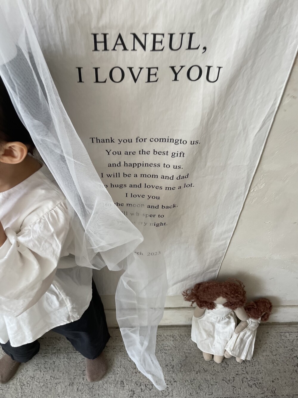 My daughter who has been the light of mom and dad,I will always be the tree that stands by you and gives you shade (엄마아빠의 빛이되어준 내딸,늘 니곁에 그늘이되는 나무가 되어줄게)"