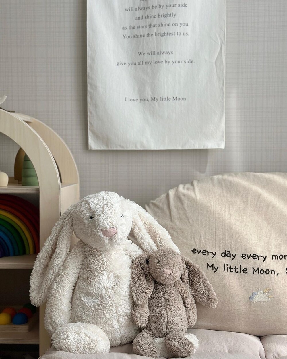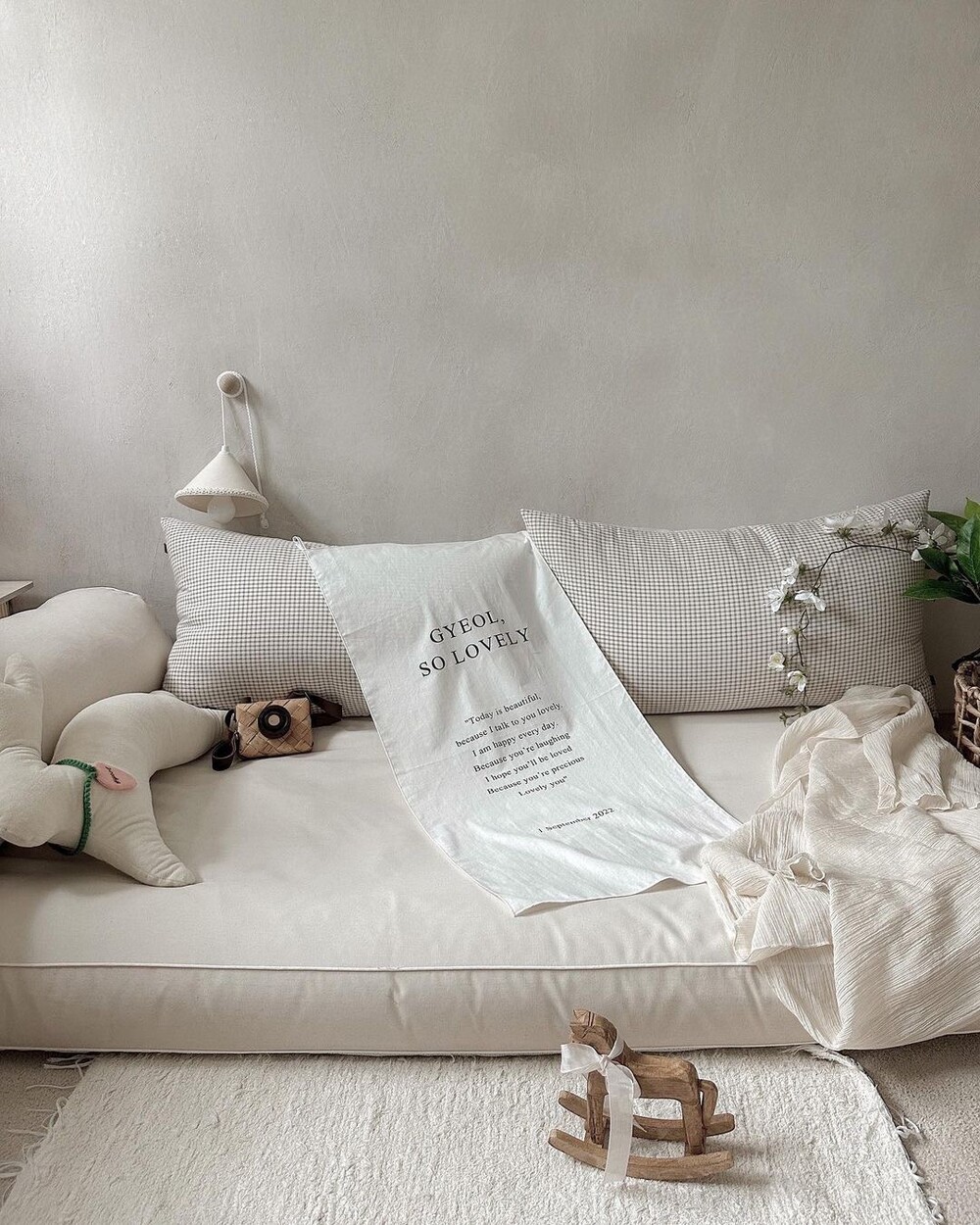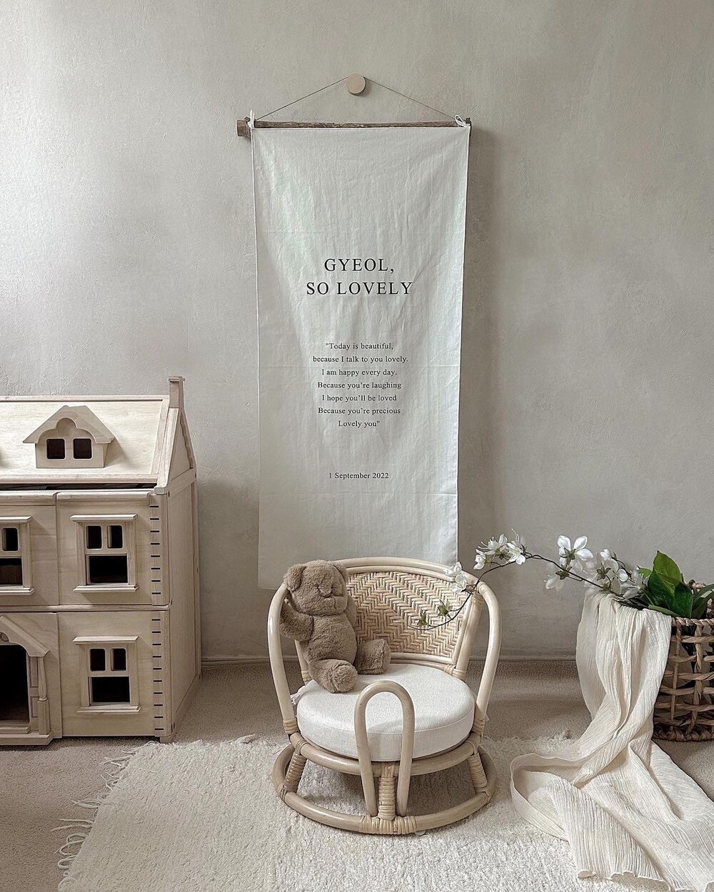 "아기방의 벽이 너무 허전하지만,가구위치를 자주 바꾸다보니 벽에 무언가를 붙이기에는 부담이었는데메린드레 패브릭 포스터 살포시 걸어두니 감성가득 포스터 하나 걸었는데,오늘 무슨 특별한 날인 것 같아서 설레"