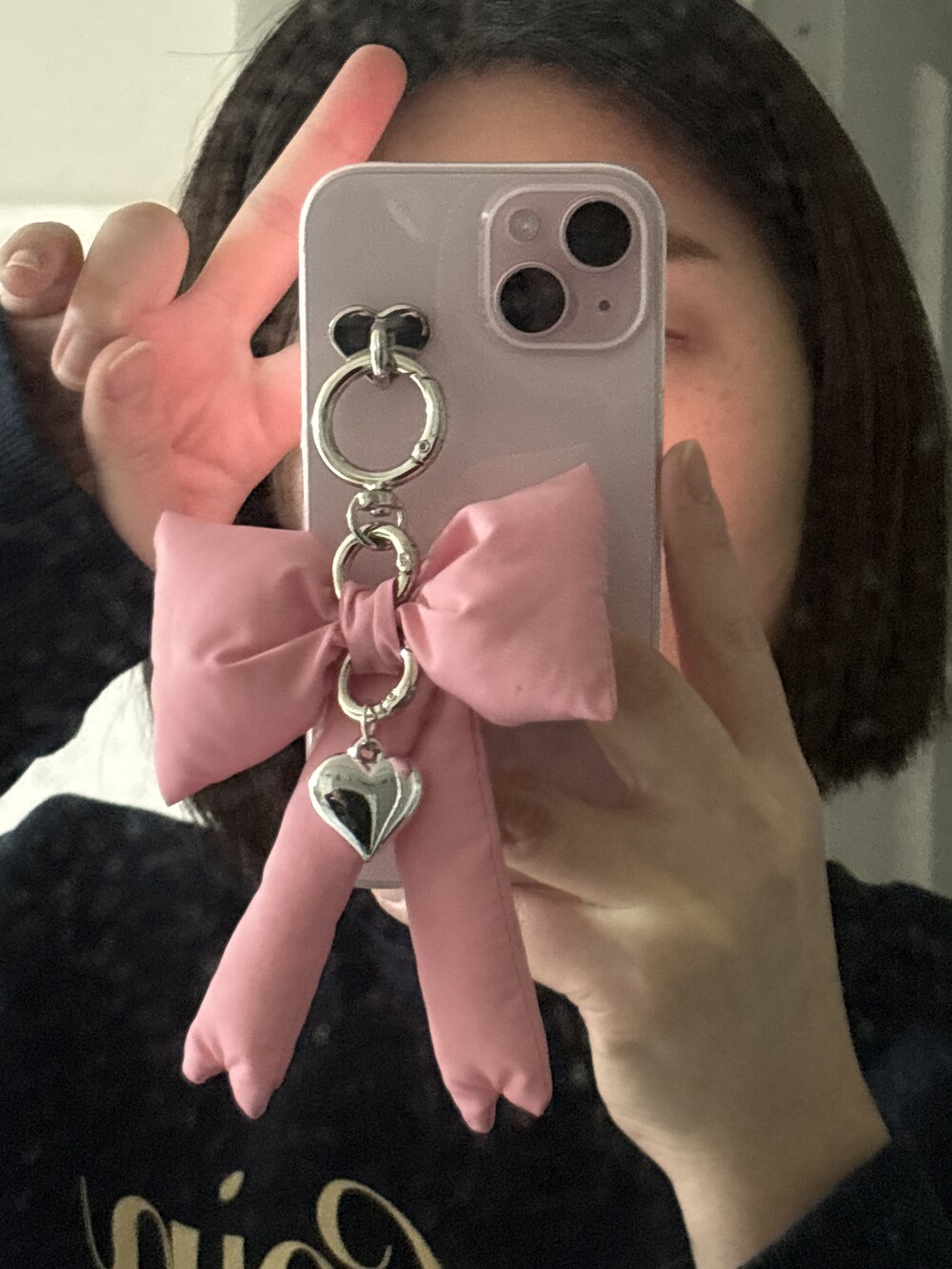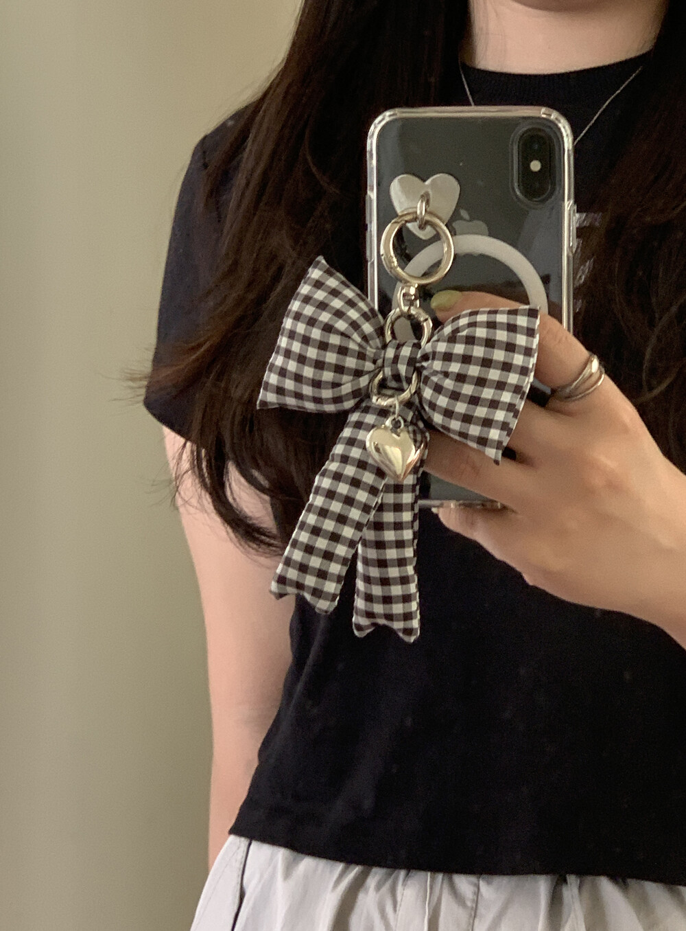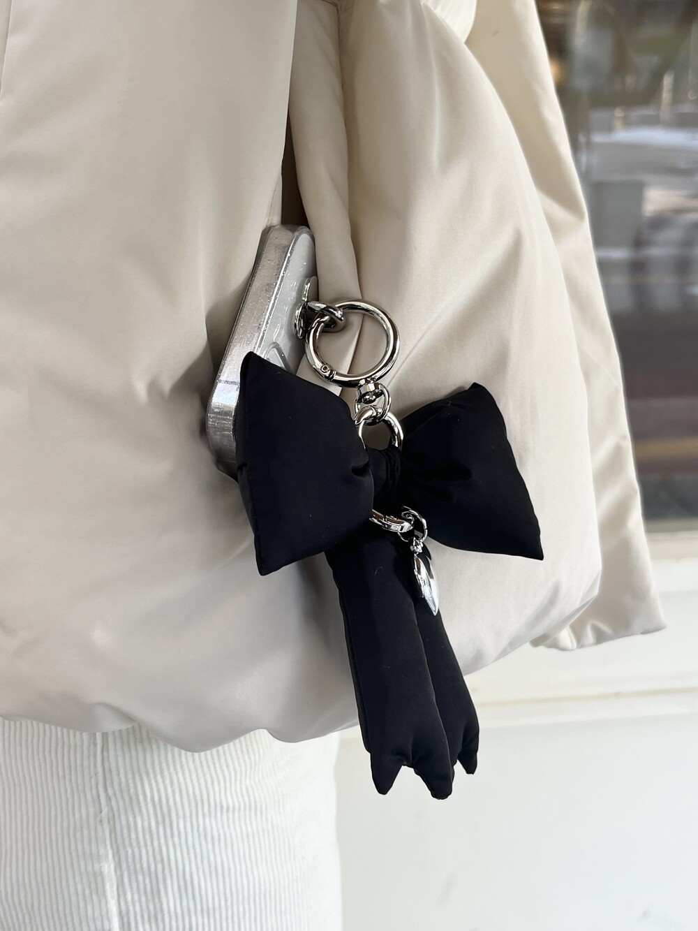 거울셀카 찍을 때도 포인트 되는 메린드레 패딩리본키링!