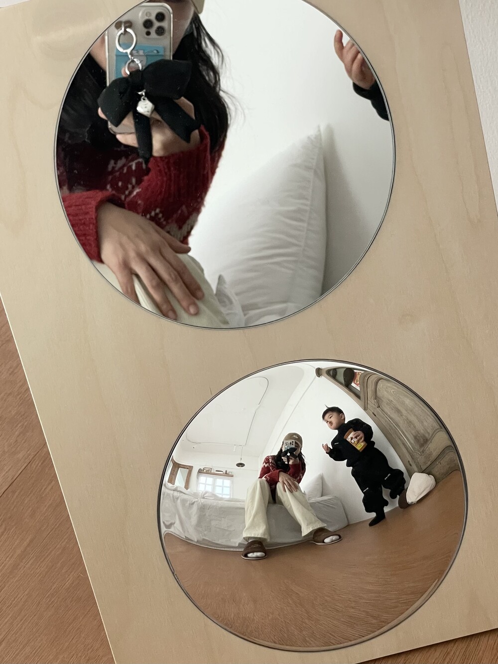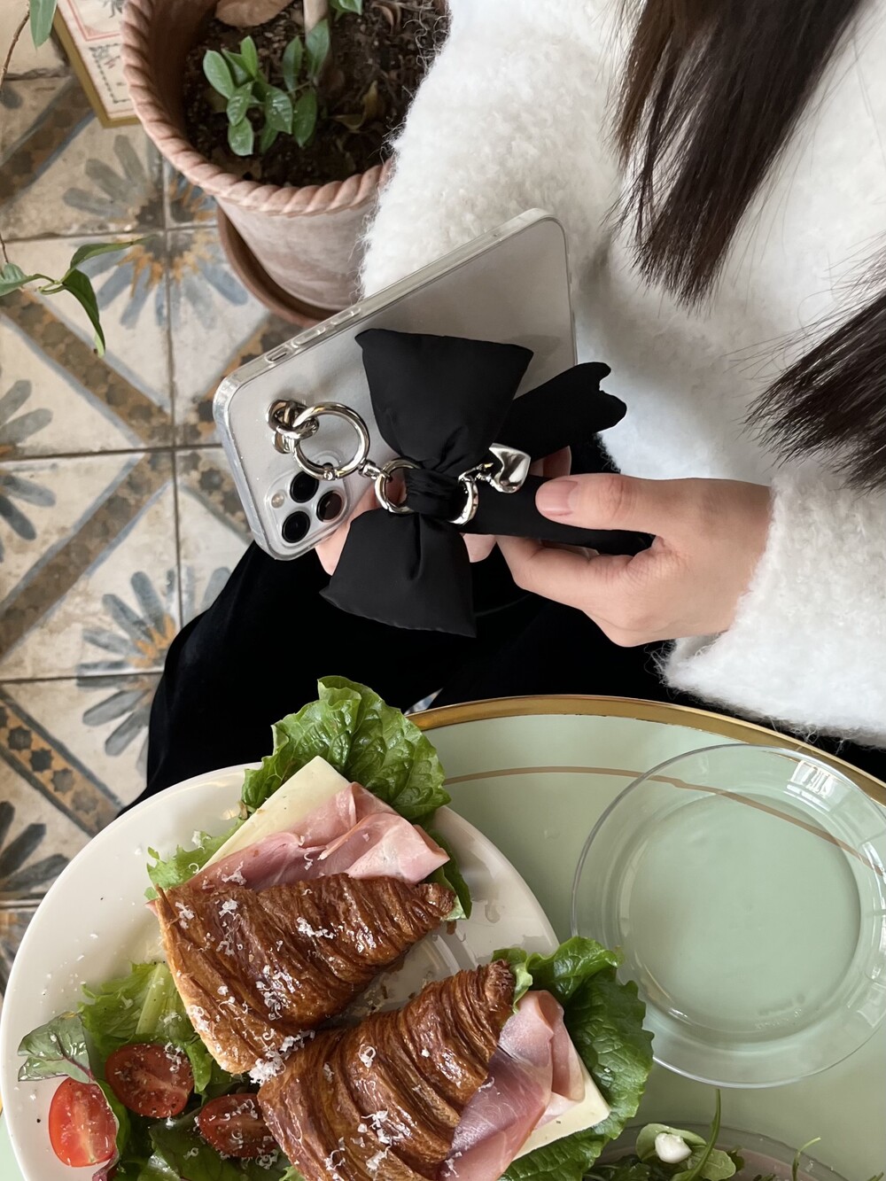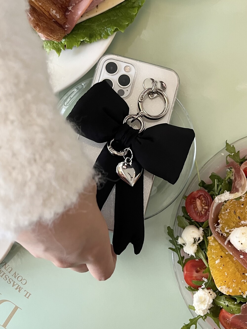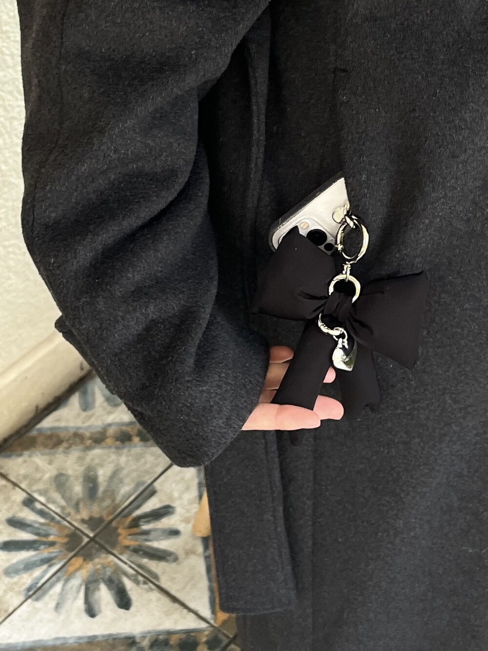 거울셀카 찍을 때도 포인트 되는 메린드레 패딩리본키링!