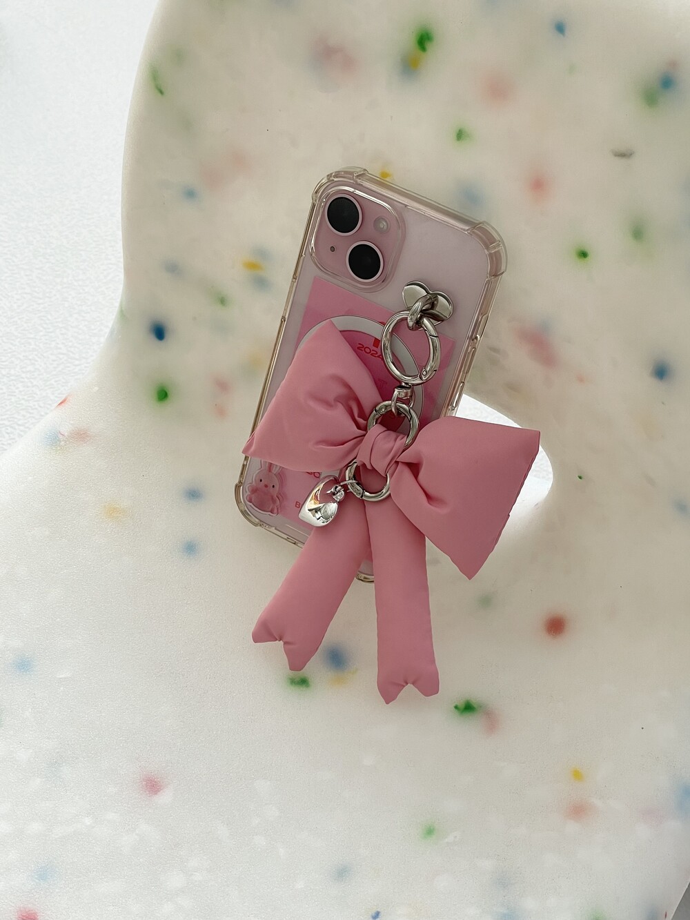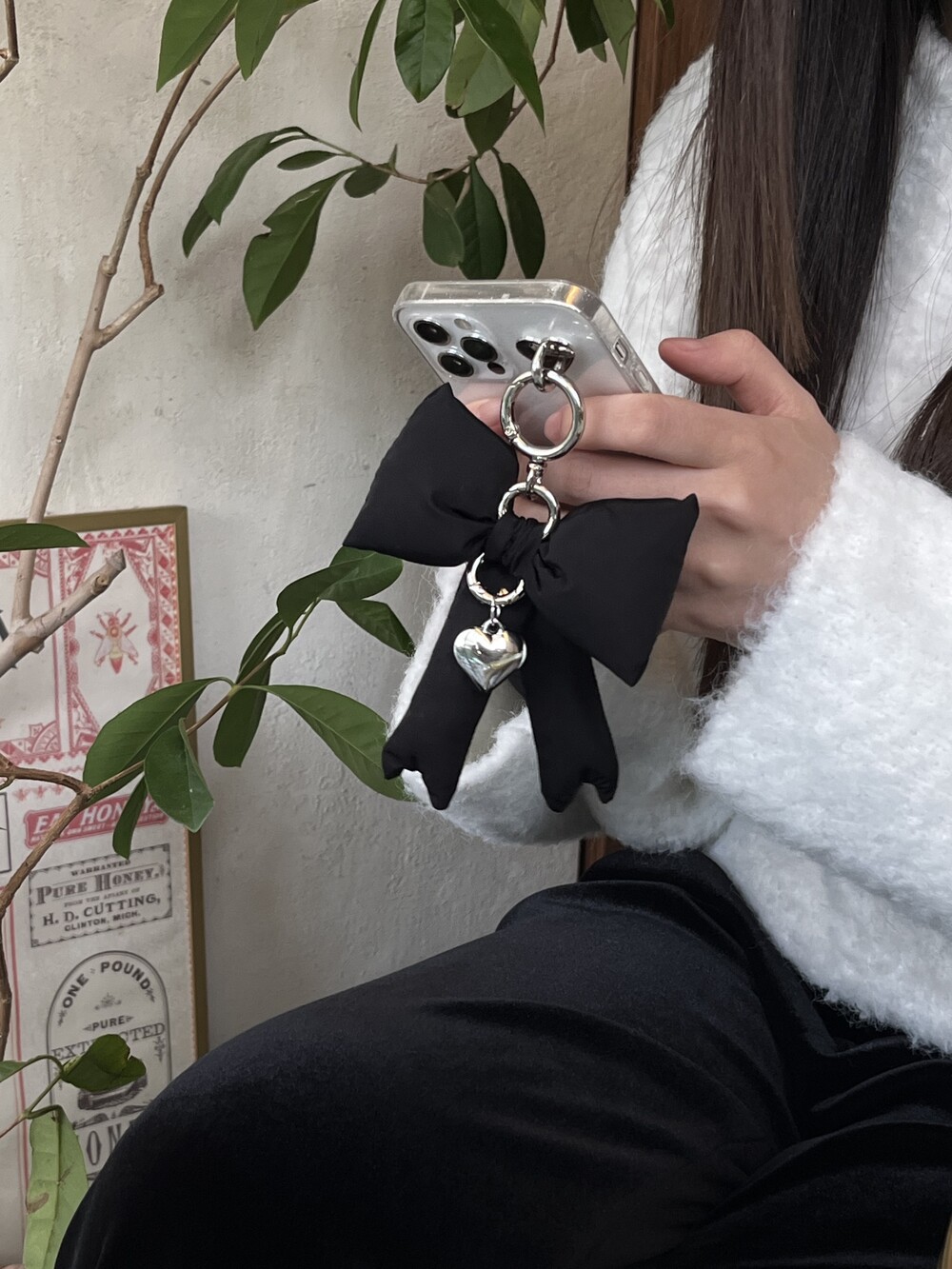 핸드폰 실버고리판에 달아 주머니에 넣으면 패딩리본만 꺼내져 너무 예쁜 악세사리가 되어요.