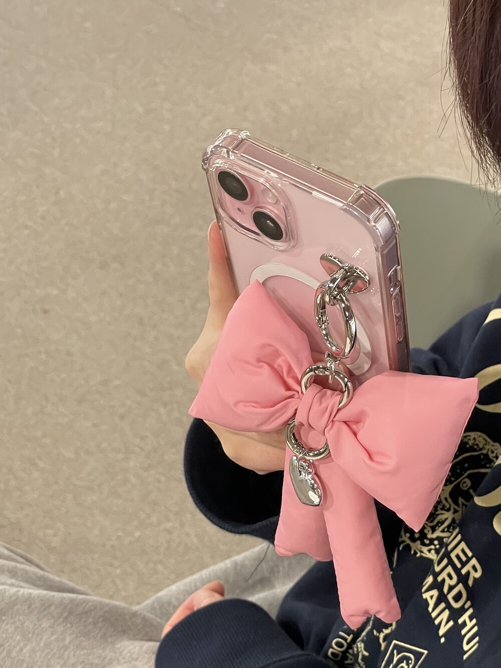 핸드폰을 할때도 패딩리본키링이 포인트되어 예쁜 사진이 담긴답니다.