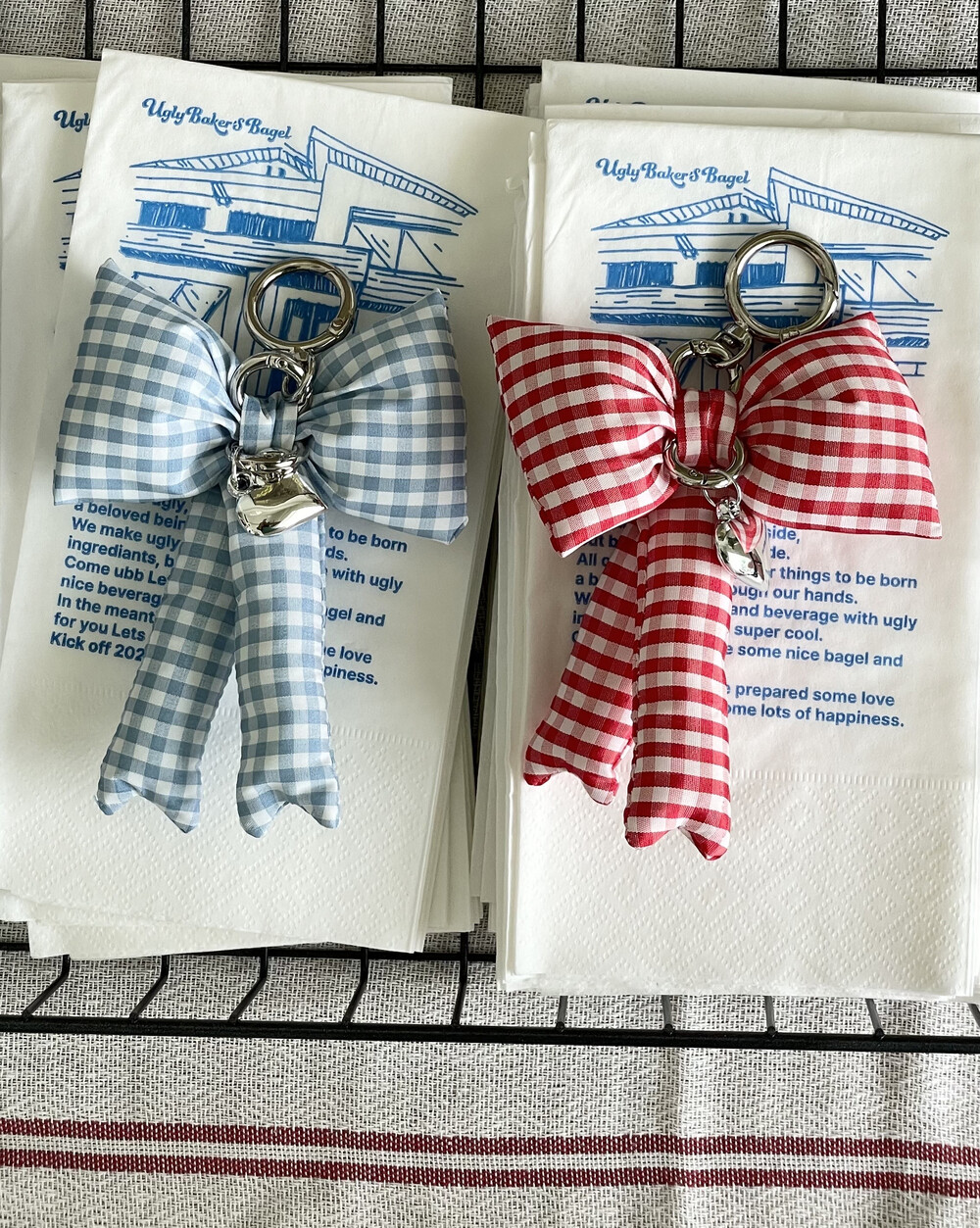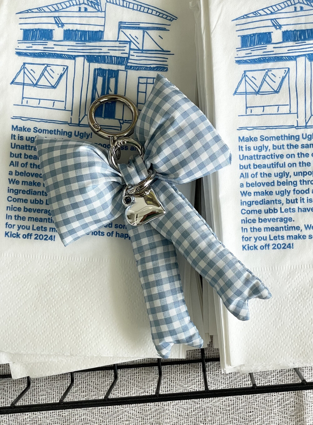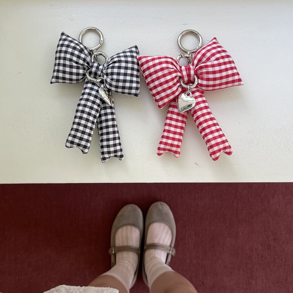 패딩리본키링은 가방에 달거나, 하트고리판을 추가하여 핸드폰키링으로 사용해보세요. 키치한 느낌을 주는 체크패딩리본키링 정말 예쁘답니다.