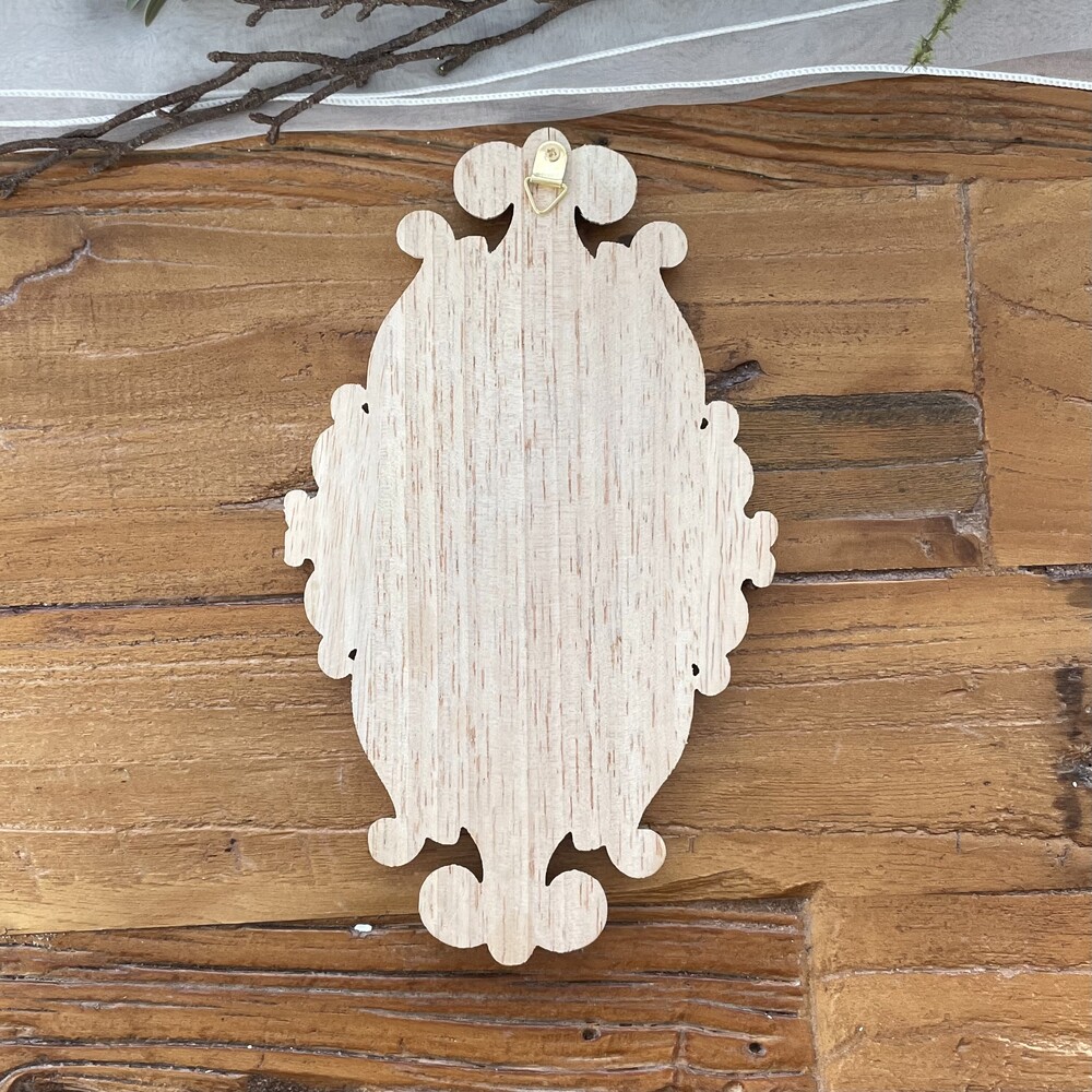 우드플레이트 뒷면에는 액자고리를 추가요금없이 연결해드리고 있어요. 고리에 걸거나, 끈을 연결하여 다양하게 연출할 수있습니다.