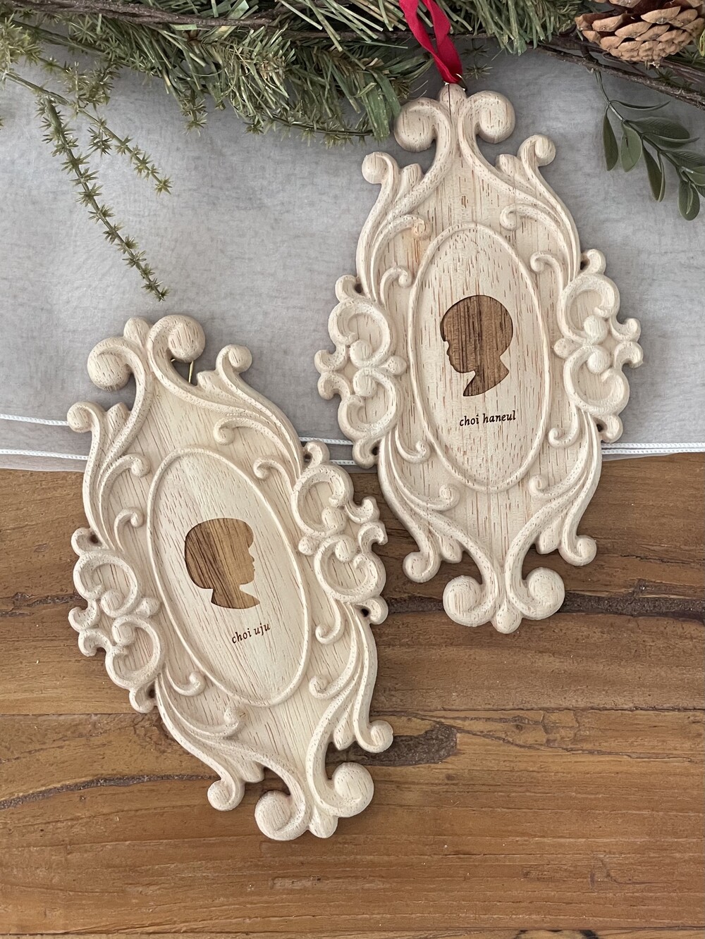 유니크한 플로랄 우드플레이트 위에 실루엣과 이름을 각인해 오랫동안 간직할 수 있도록 제작해드립니다. 벽에 걸어 사용하시거나, 오브제로 활용해도 좋은 감성소품입니다.