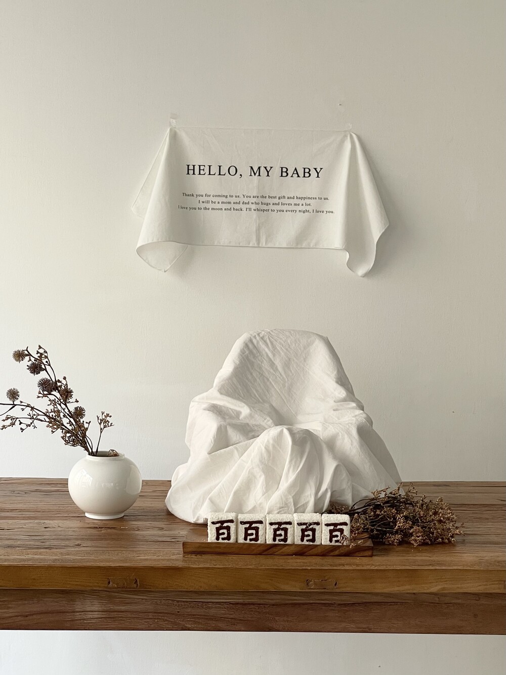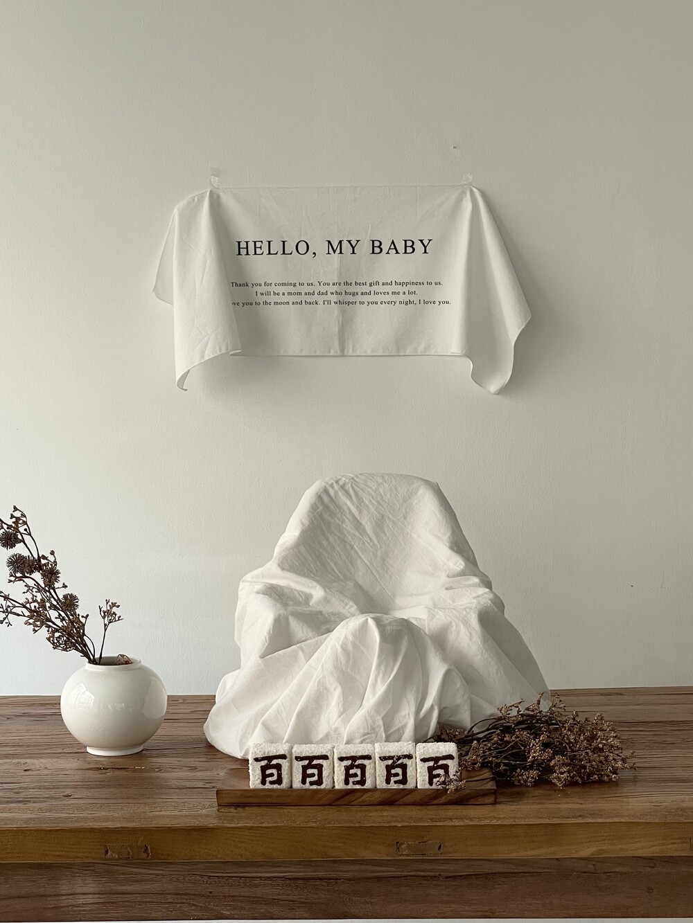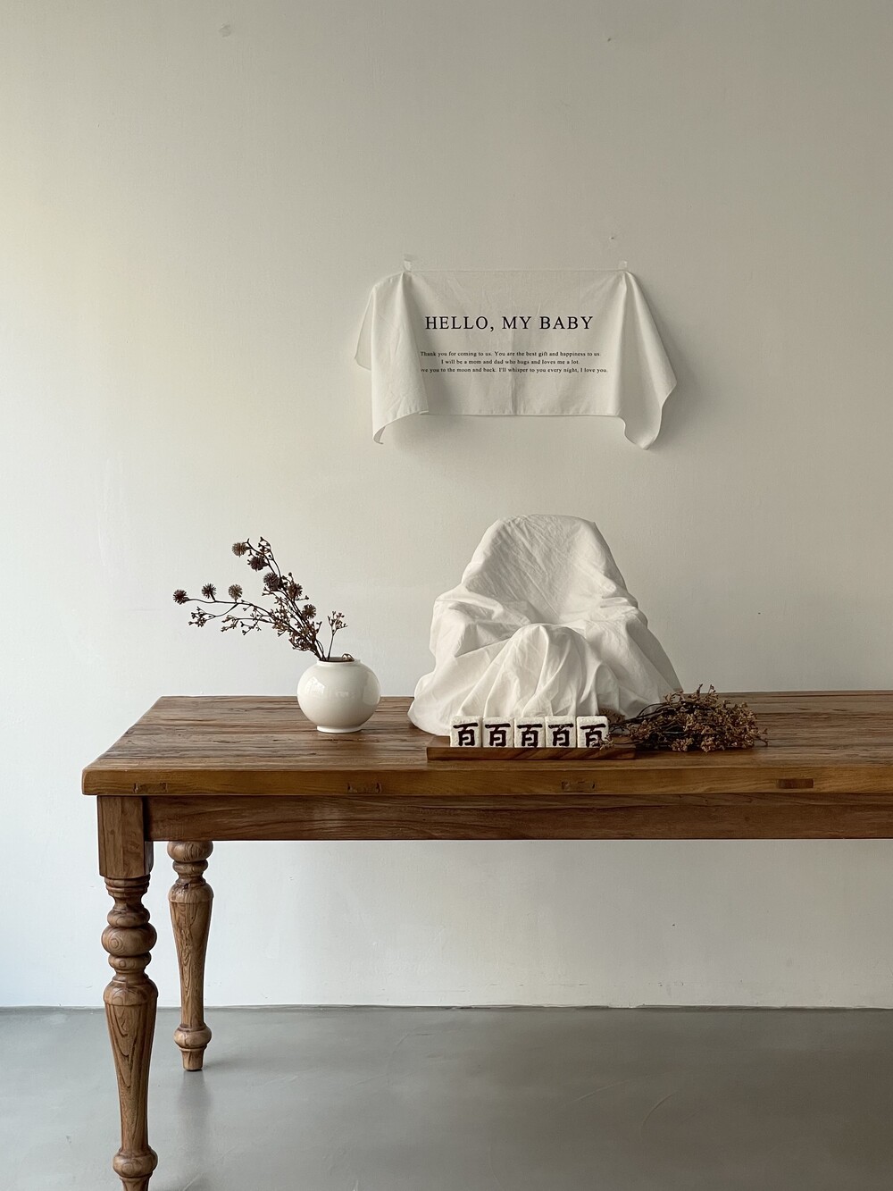 조화꽃, 백일떡or케이크를 올려두면 심플하고 예쁜 기념일테이블을 꾸밀 수 있답니다. 아이의 이름을 담은 메린드레 이니셜패브릭포스터가 있다면, 의미있는 테이블이 완성될거예요!