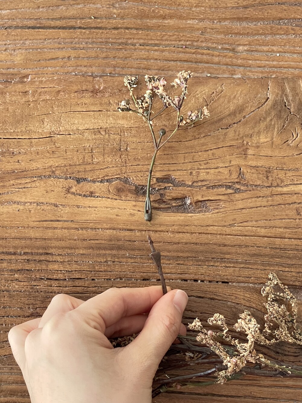 메린드레 빈티지조화는 이렇게 꽃머리가 분리됩니다. 분리된 꽃은 제품사진 찍을 때 연출하면 좋고, 다시 끼워넣을 수 있어요. 활용도가 높은 감성소품입니다.