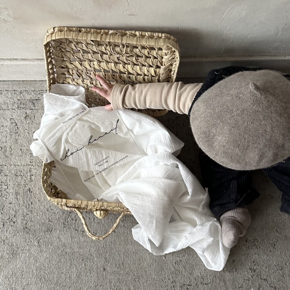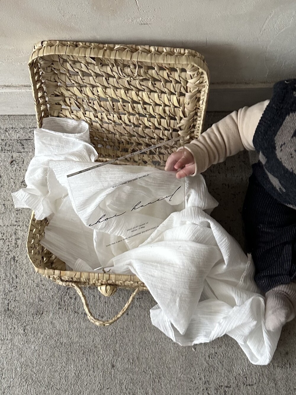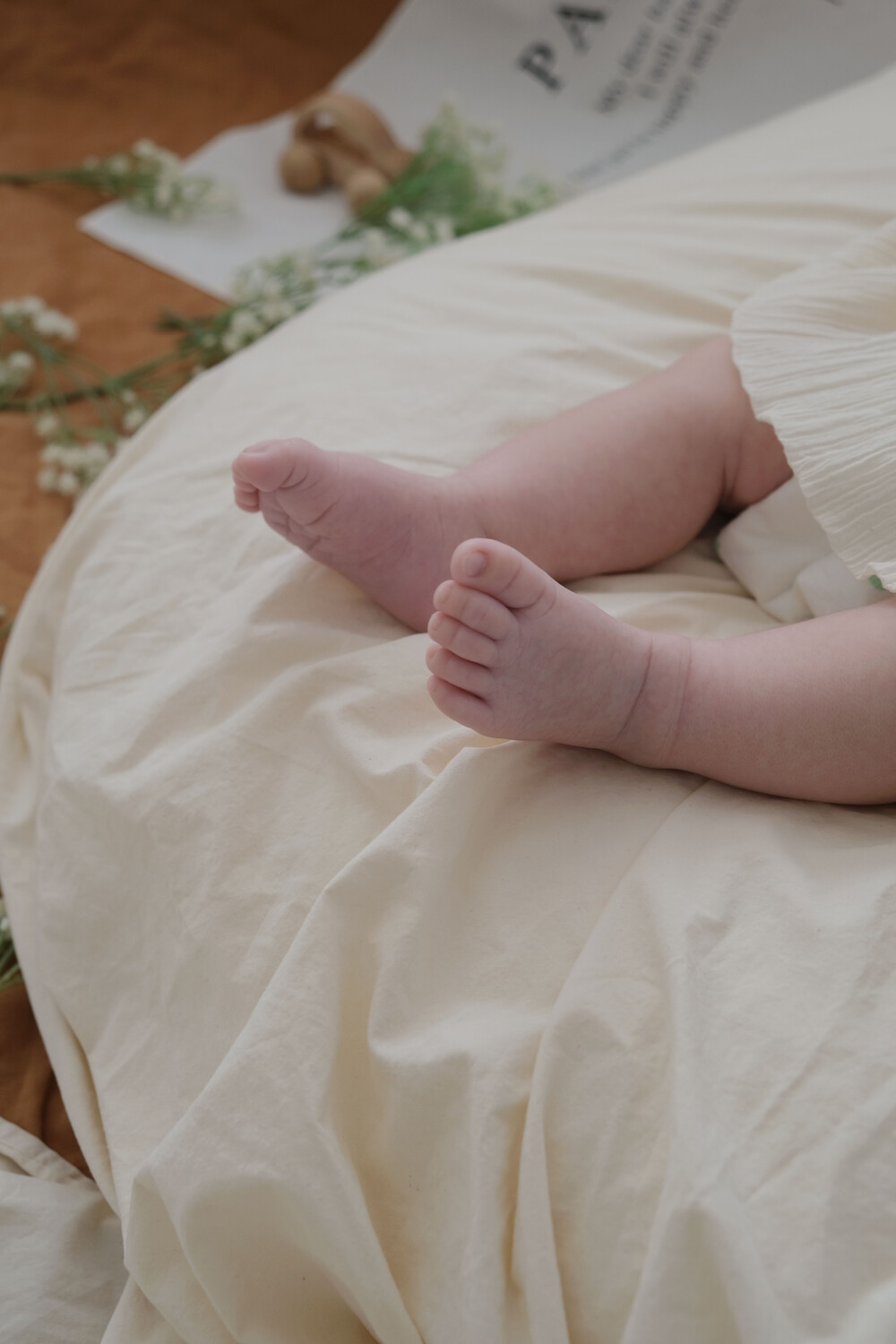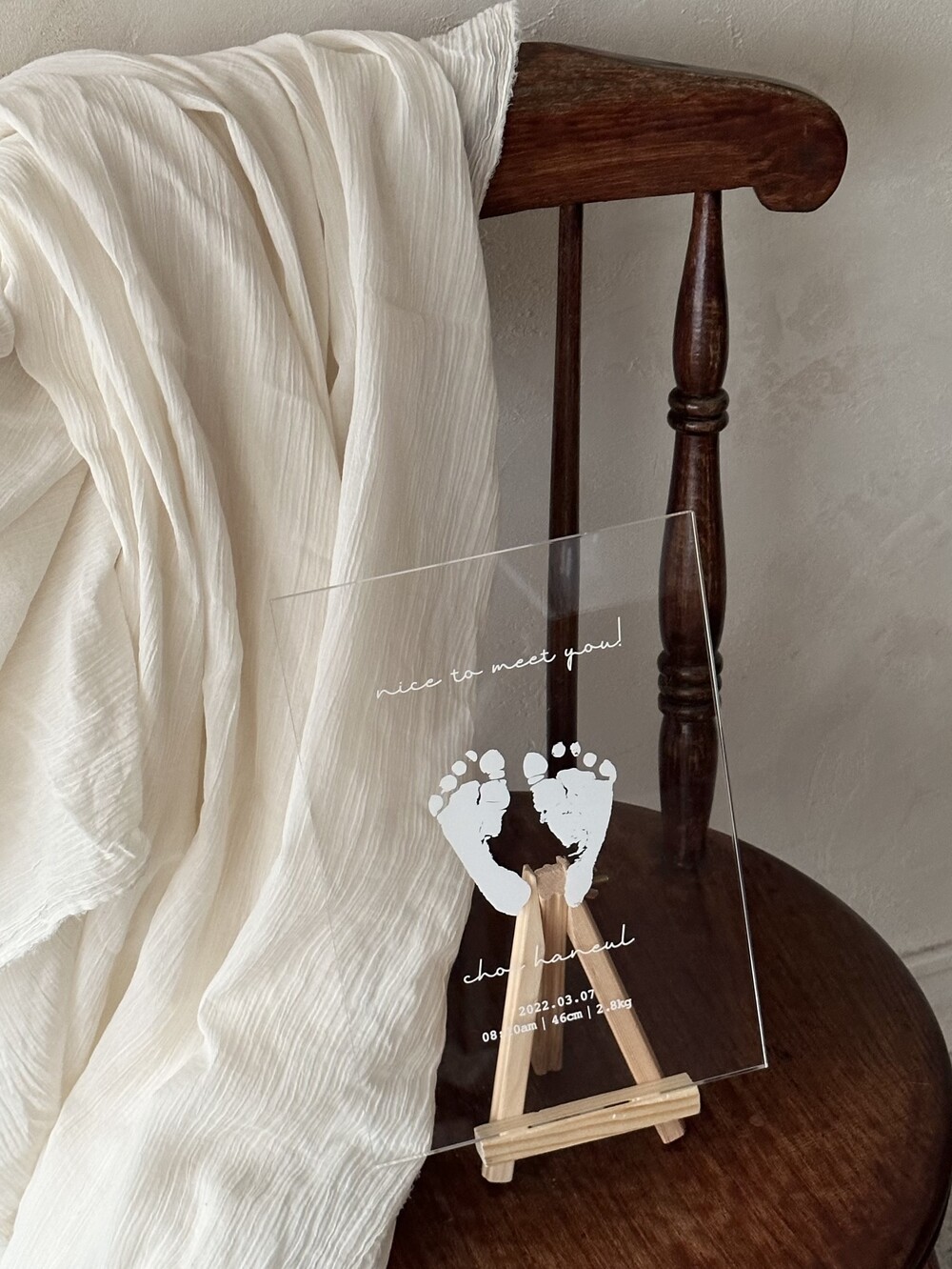 요루 코튼 베이지 위에 메린드레 이니셜패브릭포스터를 올려두어 아기 기념일 사진을 촬영하였어요.