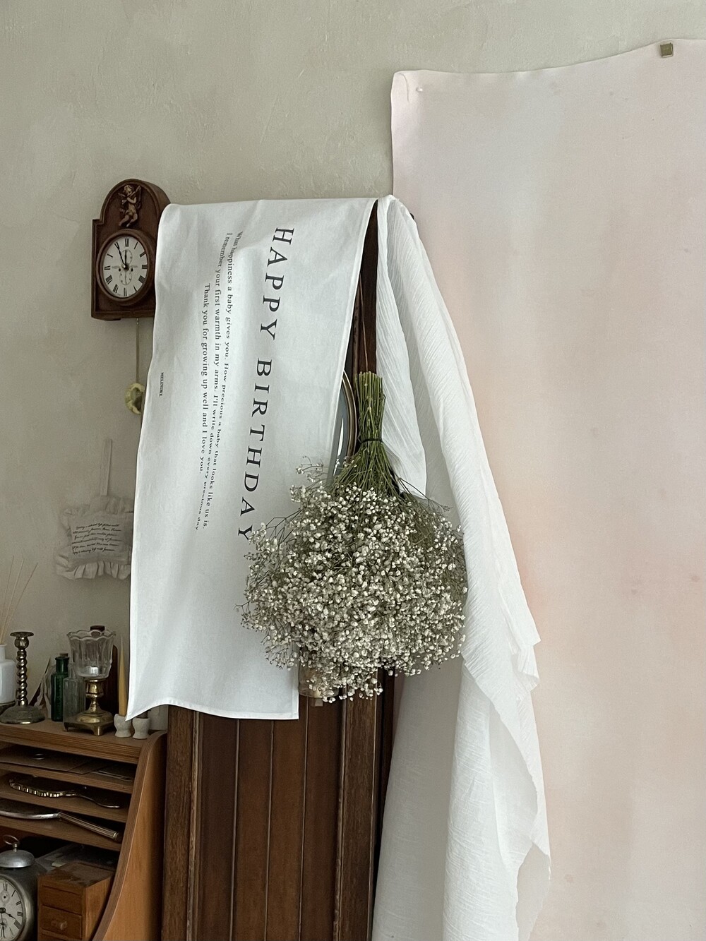 기념일 촬영 때 테이블에 깔아 연출 했는데, 요루코튼으로 화이트 컨셉의 컬러를 맞춰 예쁜 사진을 남겼어요. 주름원단이라 보관시 구겨져도 그 원단의 느낌을 주어 관리가 편합니다.