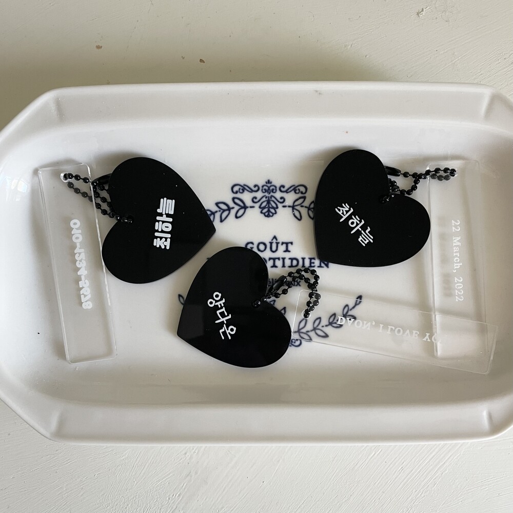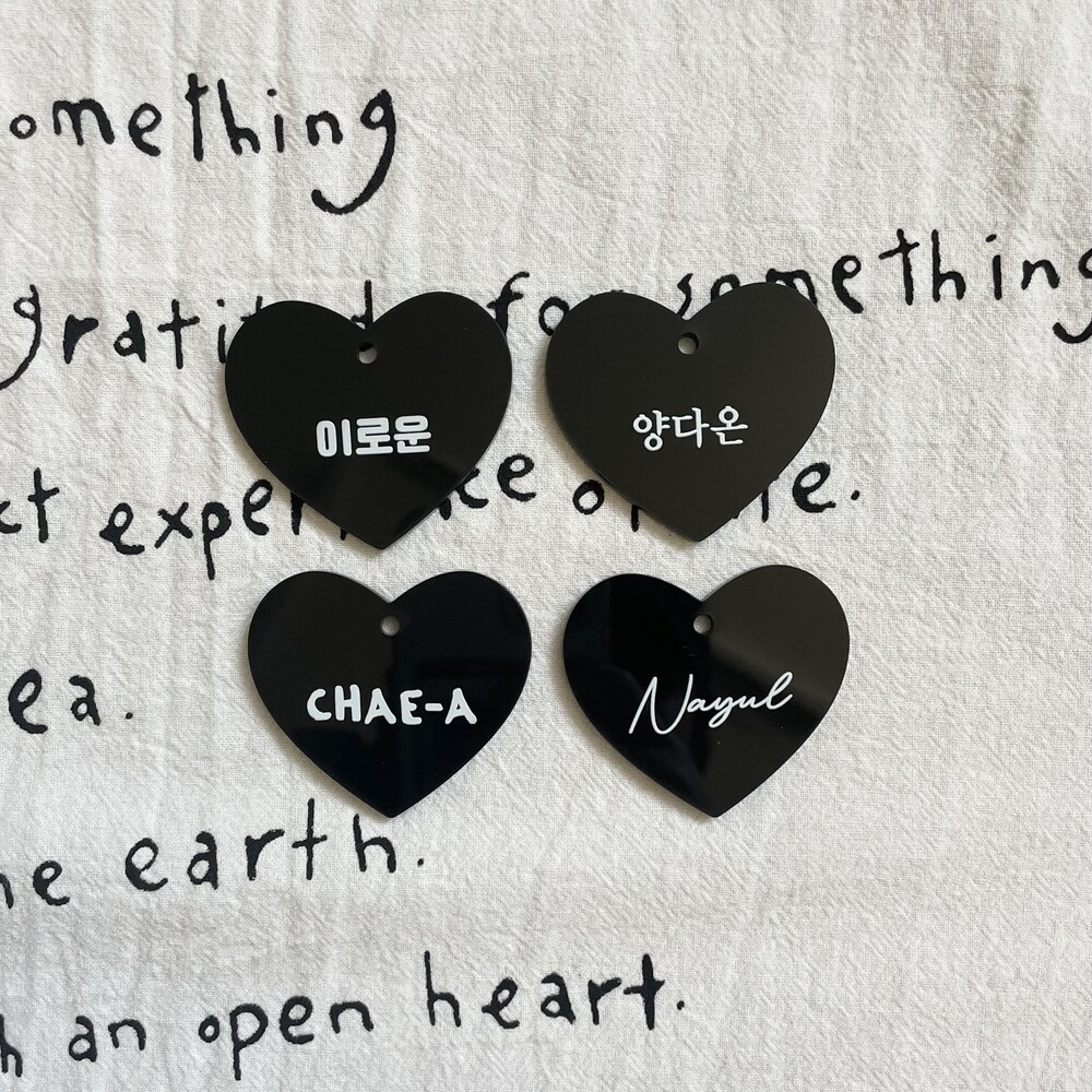 메린드레 베스트셀러인 하트아크릴네임택이 블랙버전으로 출시하게 되었습니다.