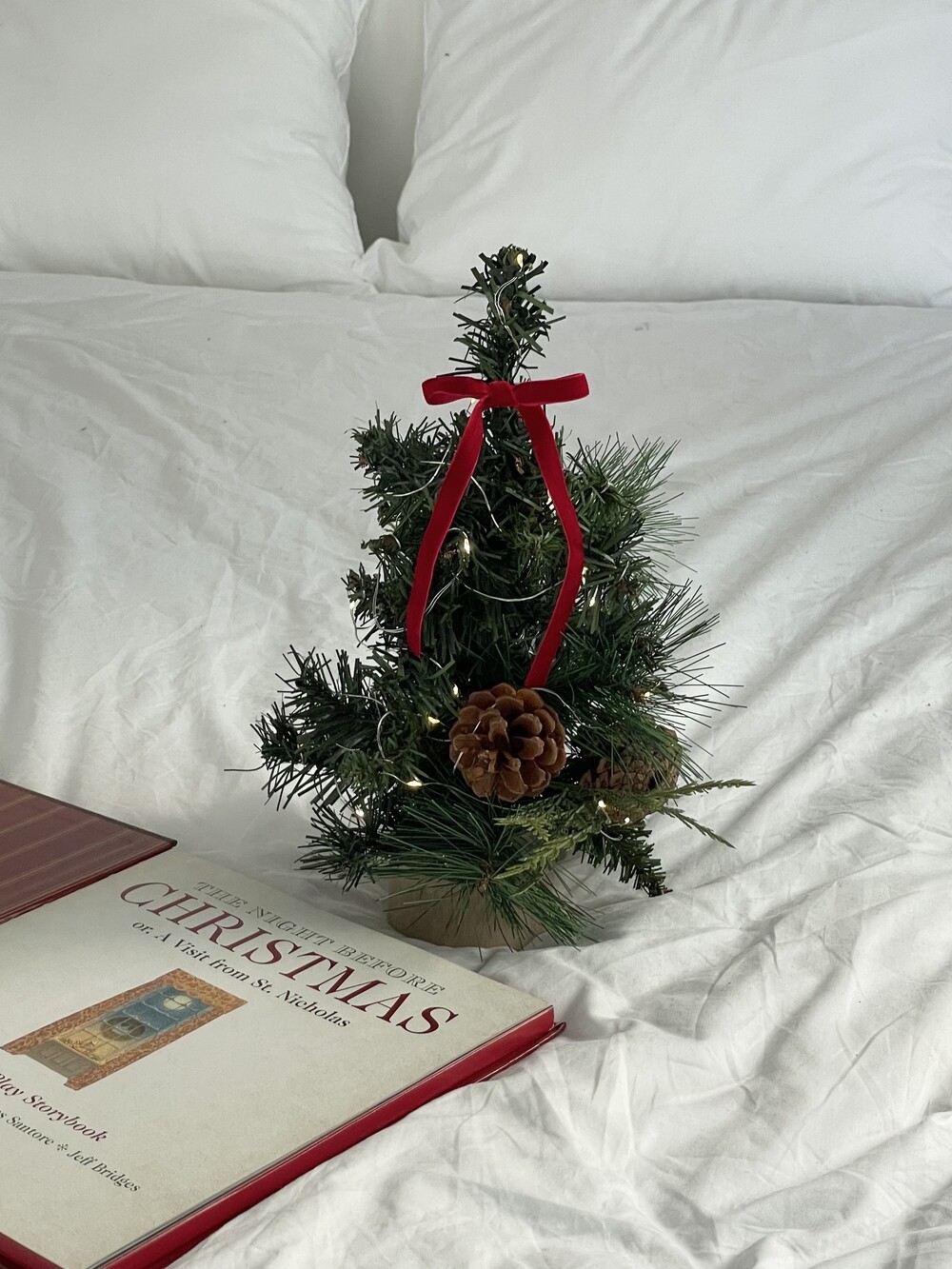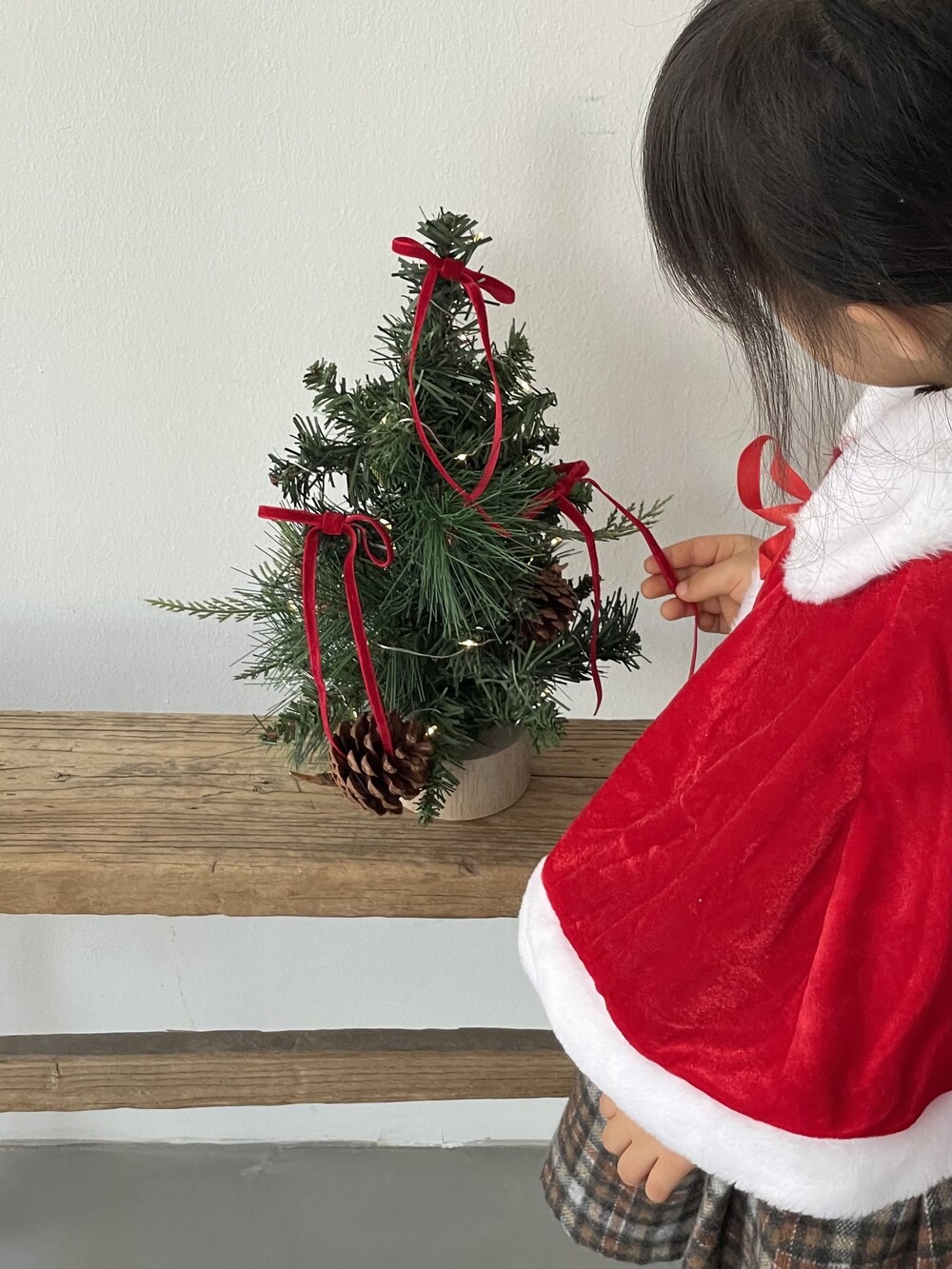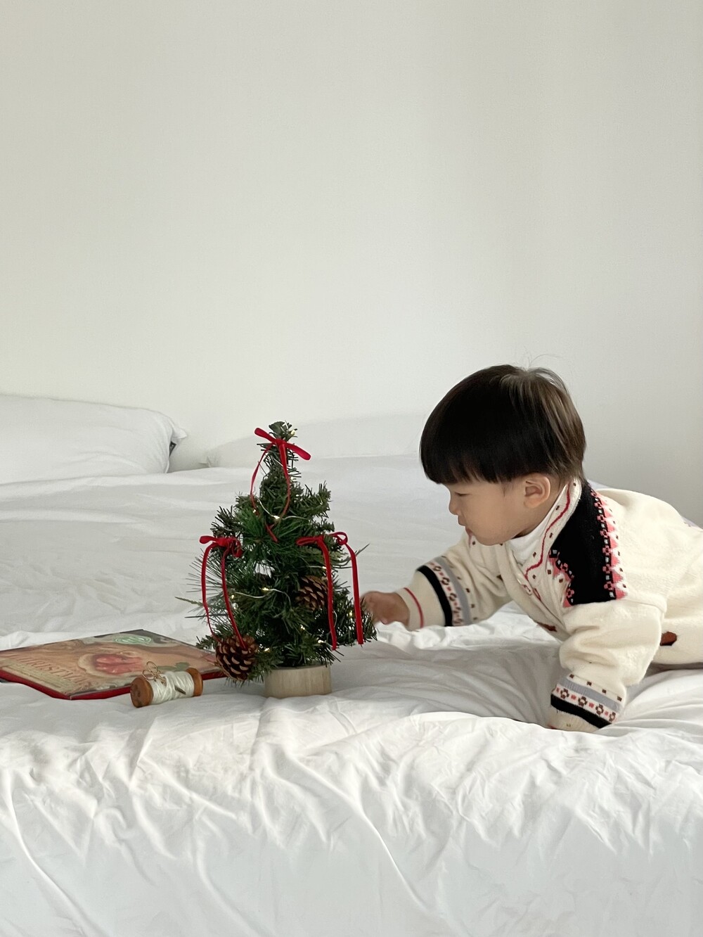 아이들과 함께 찍으면 작은 미니트리 하나만으로도 크리스마스 분위기를 낼 수 있습니다.