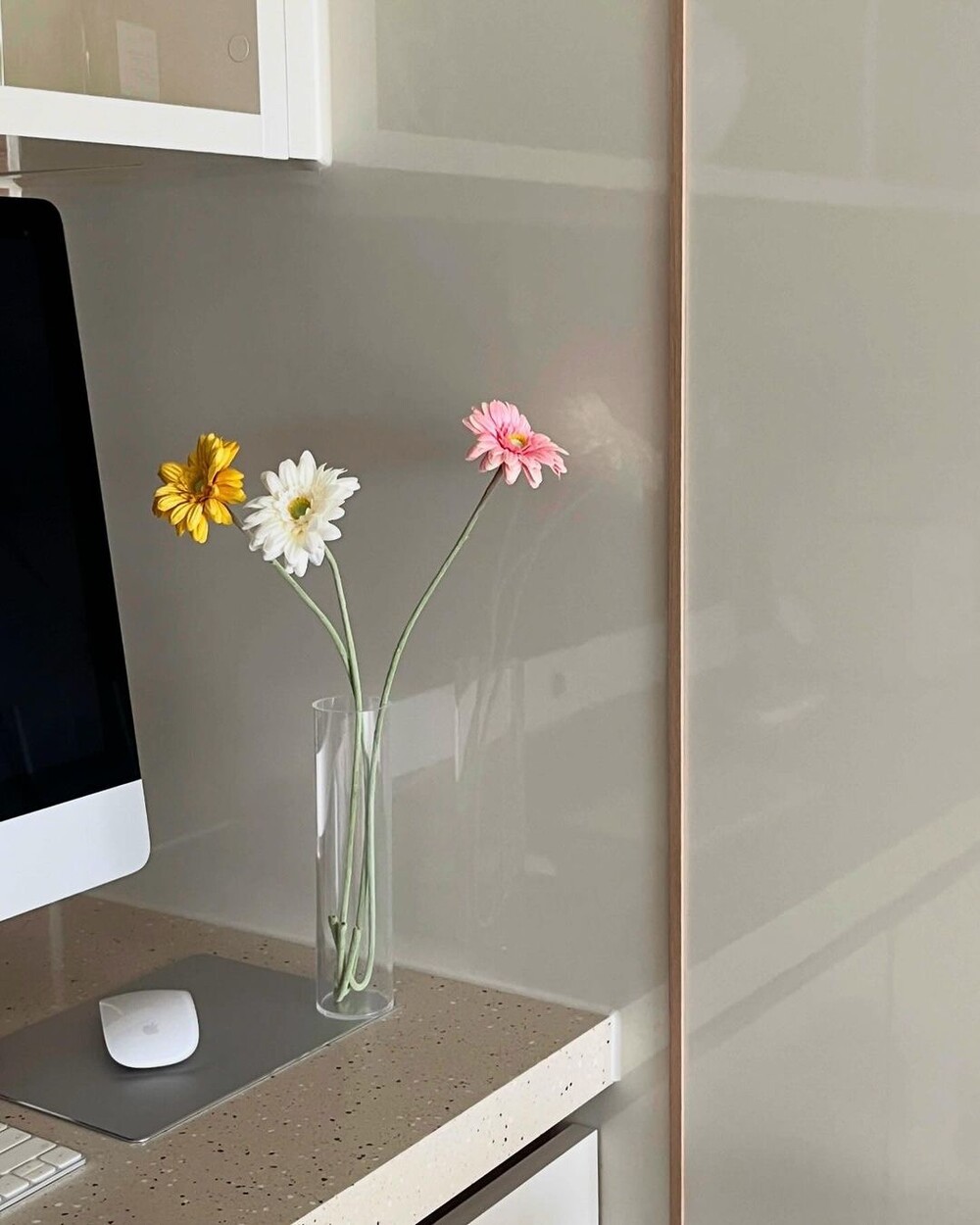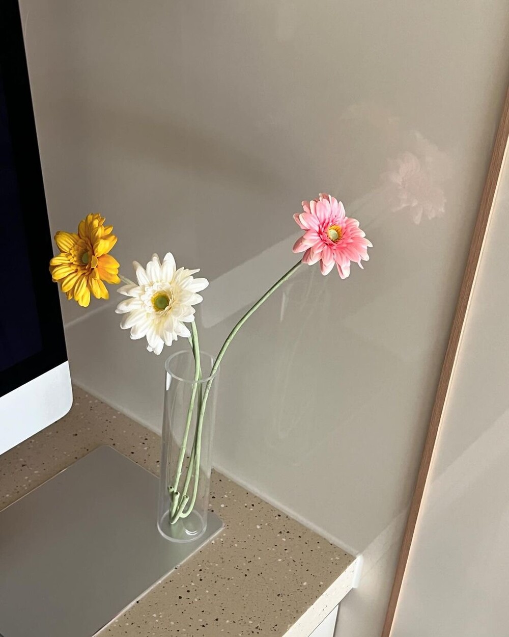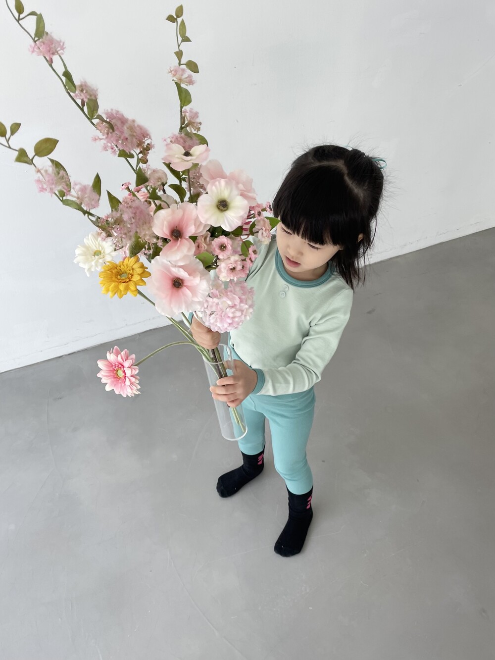 깔끔한 배경에 거베라 조화를 포인트를 주어 아이와 함께 담아보세요.