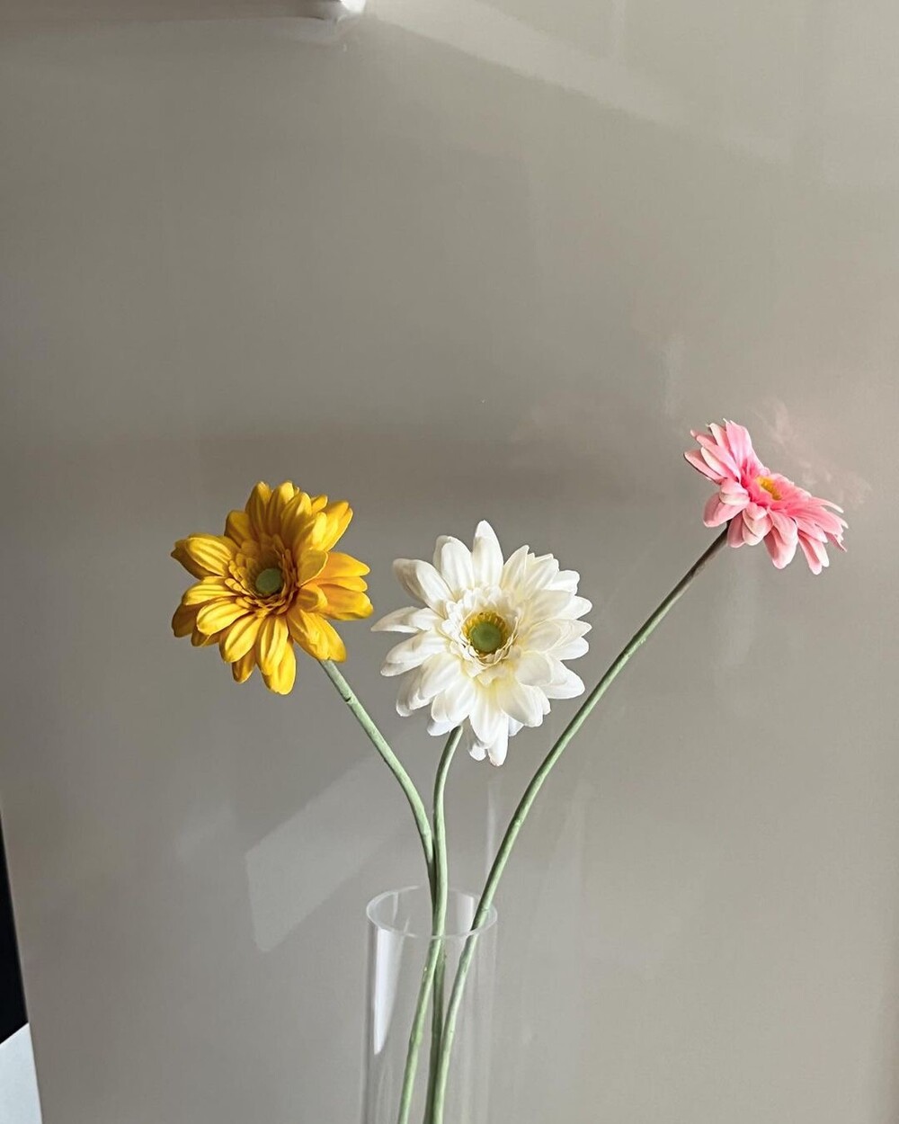 조화지만 생화 같은 거베라 조화로, 인테리어 소품/기념일테이블 꽃장식/아기기념일촬영시 소품으로 다양하게 활용해보세요. 줄기가 길어 원하는 대로 구부리거나 잘라 연출할 수 있습니다.