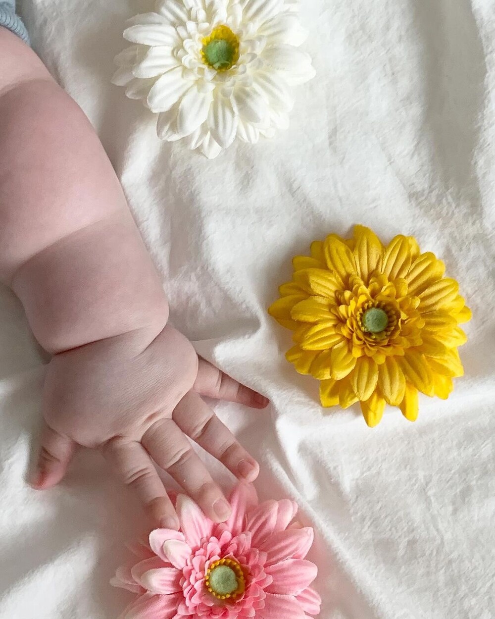 함께 판매하고 있는 원통아크릴화병에 담아 아기기념일촬영을 해보세요!