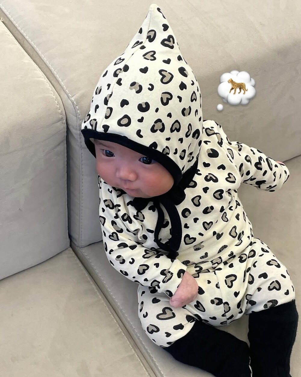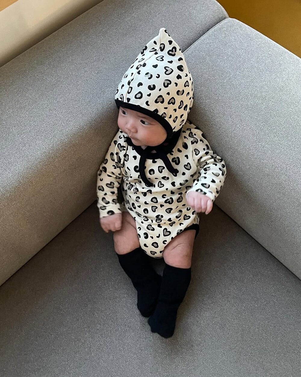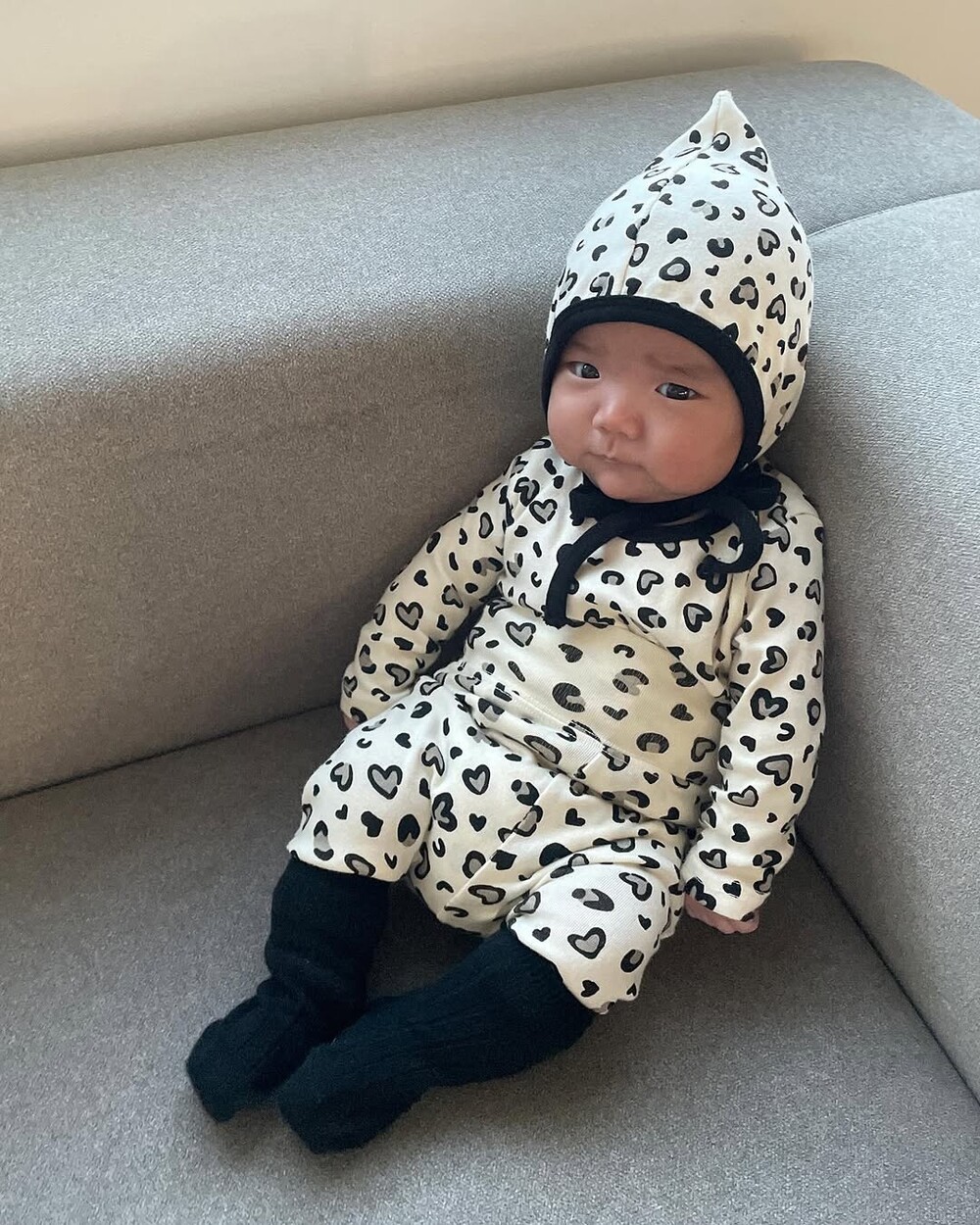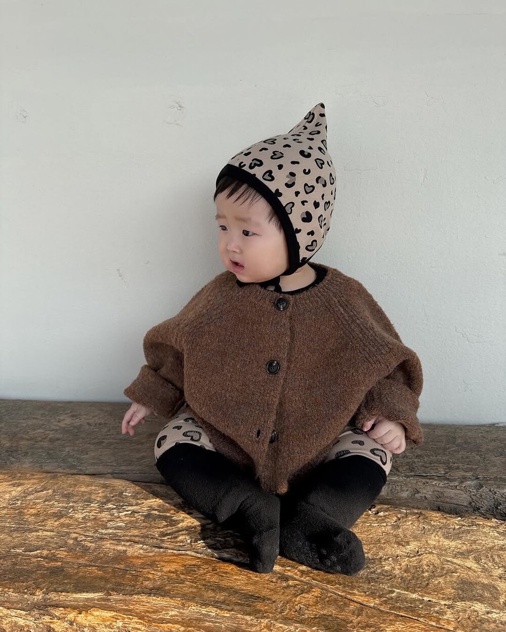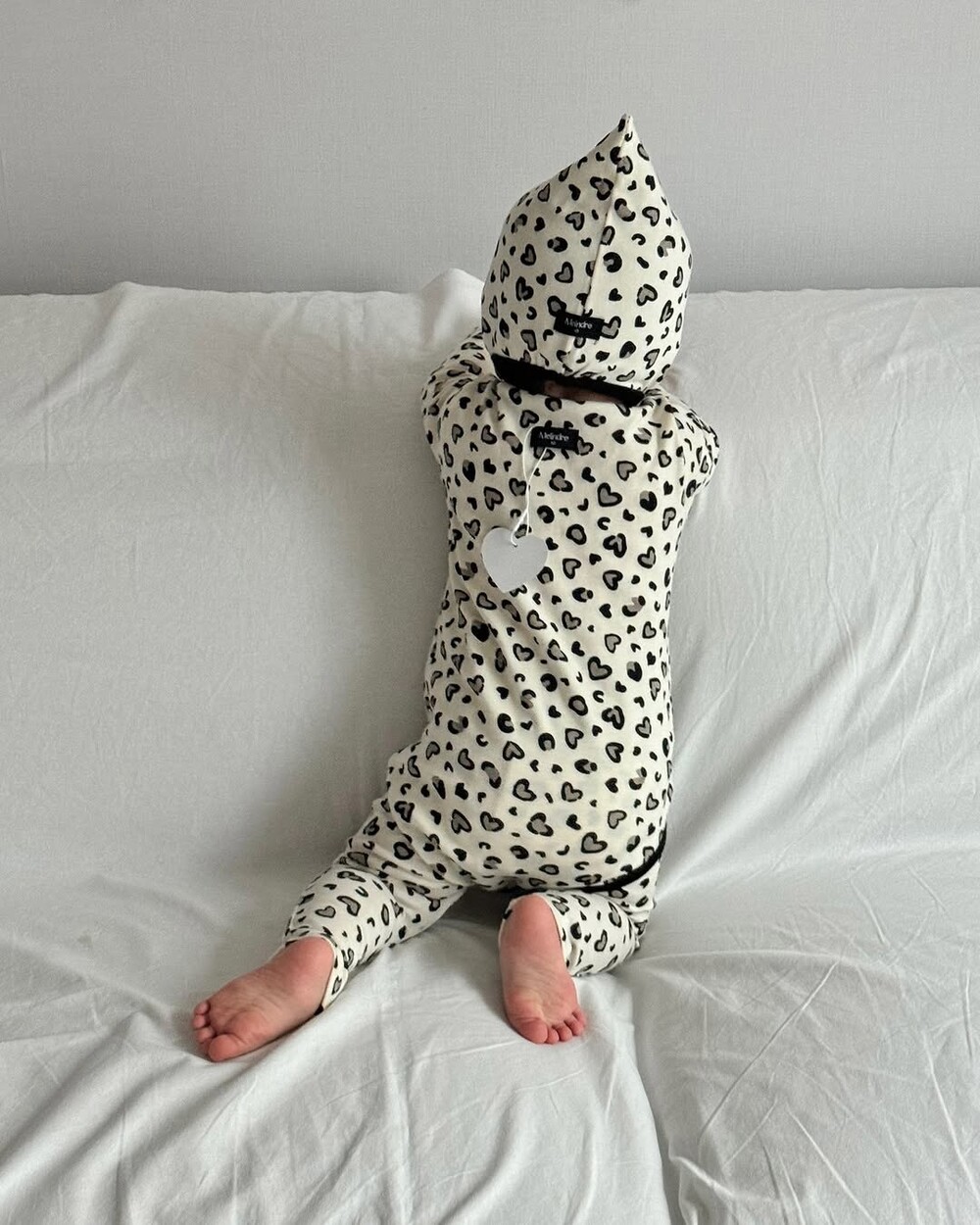 보넷+바디수트+배앓이방지 레깅스 3pcs 세트로 제작된 상품입니다. 사랑스러운 하트모양 호피패턴으로 입으면 귀여운 아기맹수로 변신한답니다. 후라이스 스판 원단으로 신축성이 좋아 아이들이 편하게 착용가능해요.