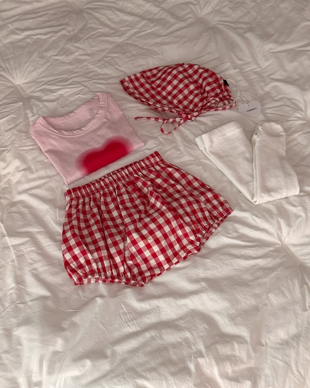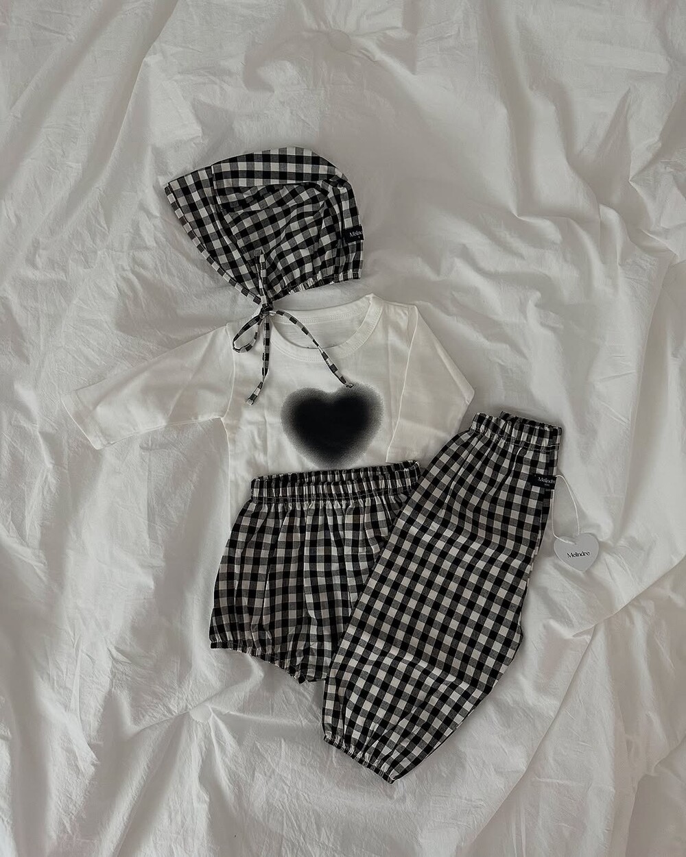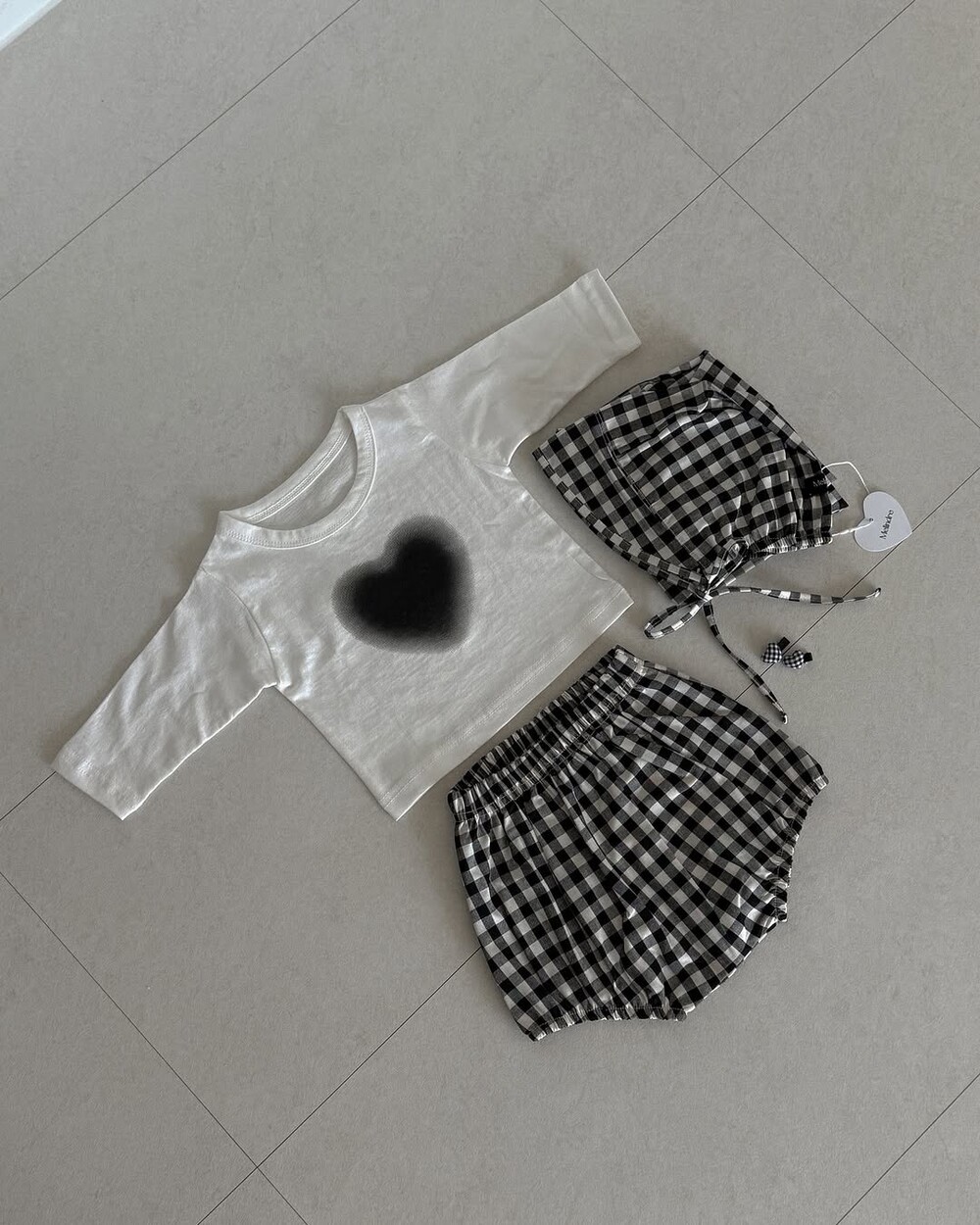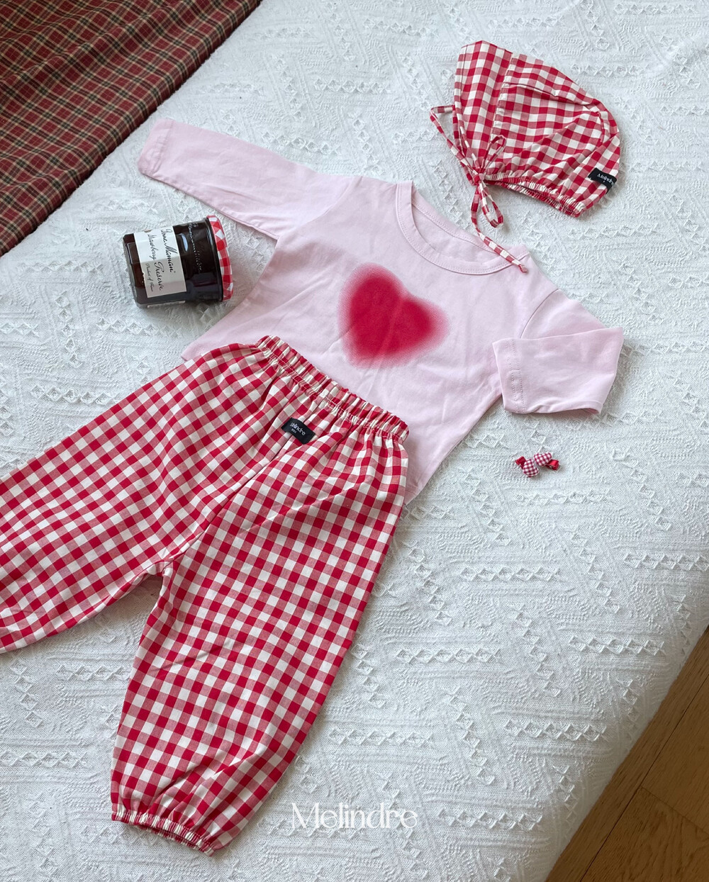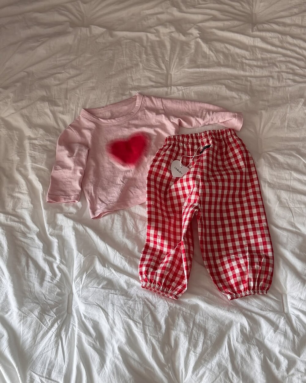 - 체크 조거팬츠/하트 티셔츠 XXS size