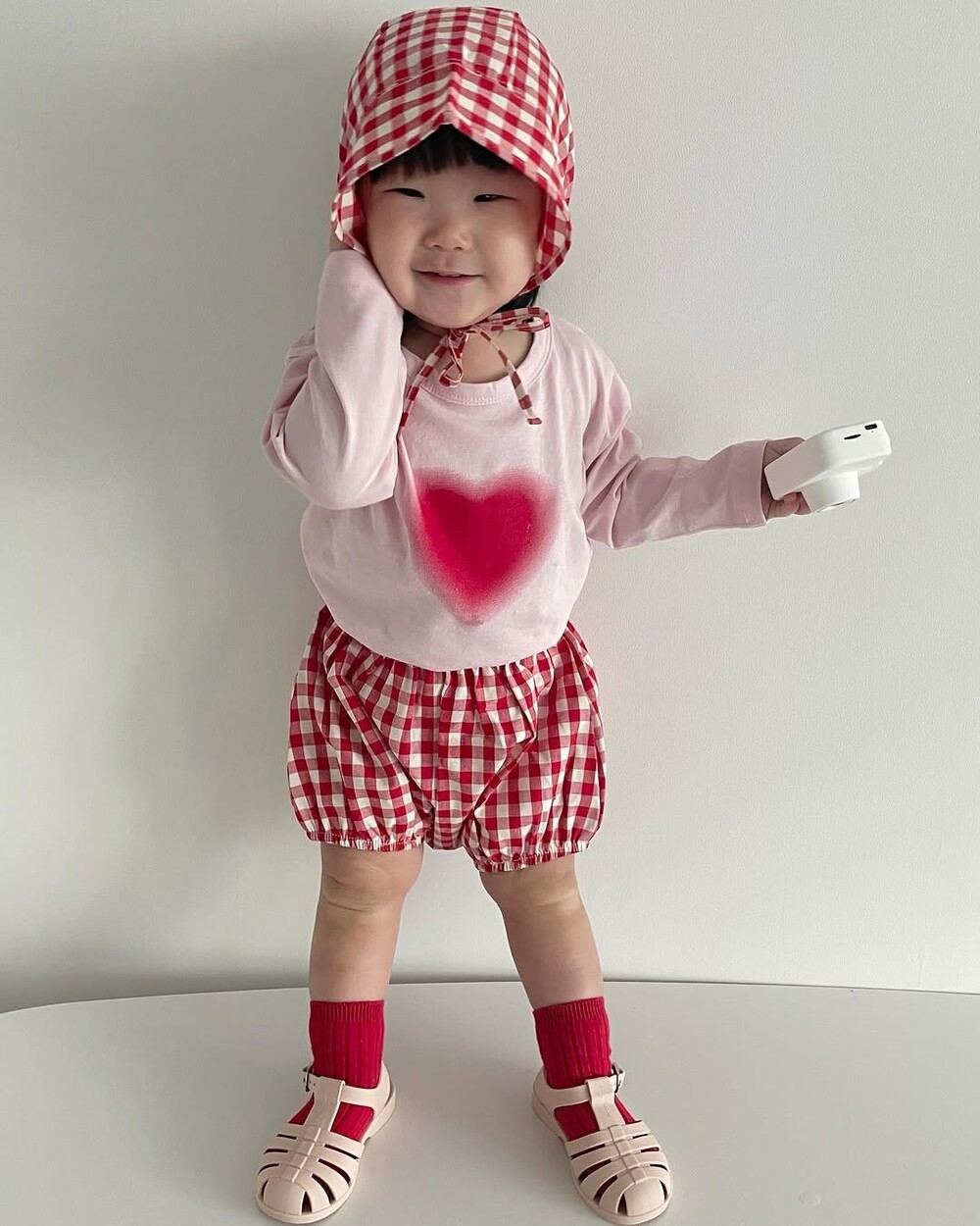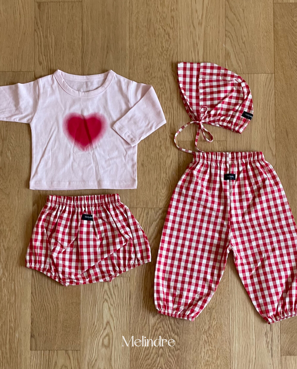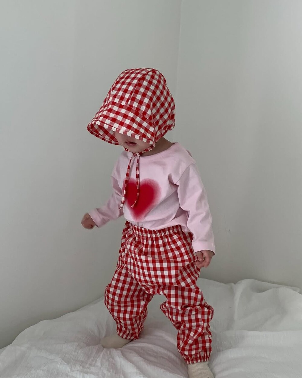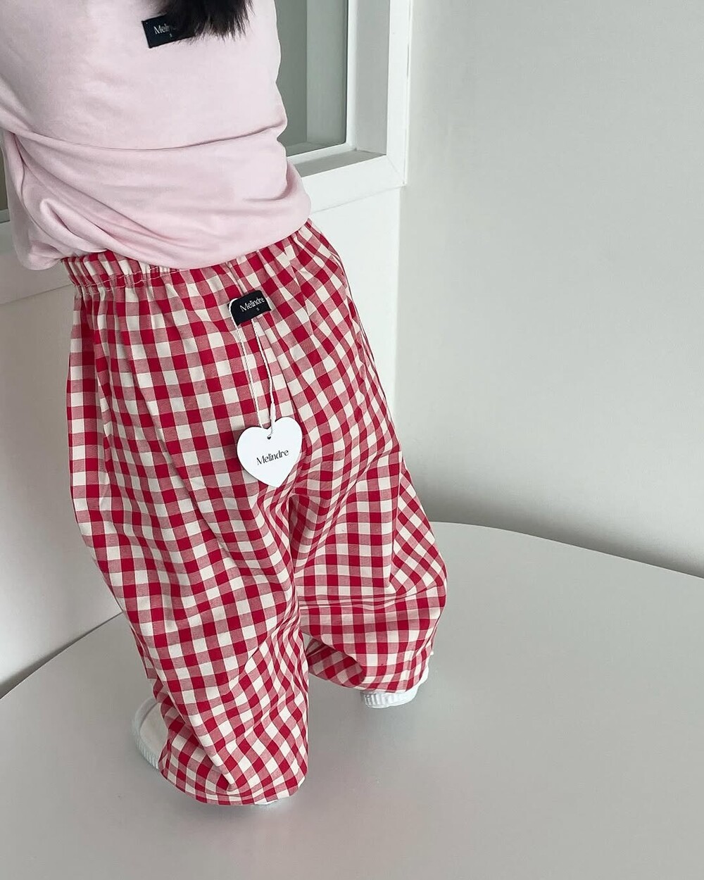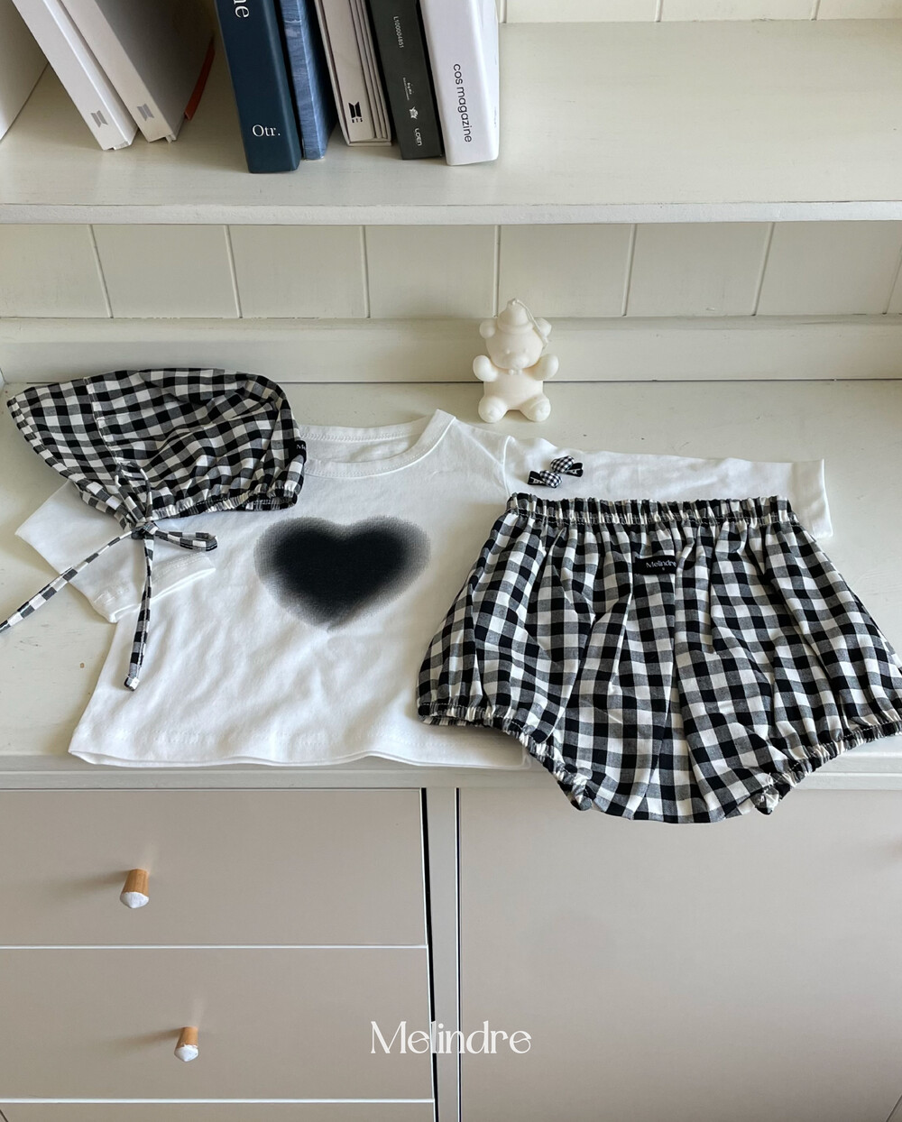 - 체크 조거팬츠/하트 티셔츠 XXS size