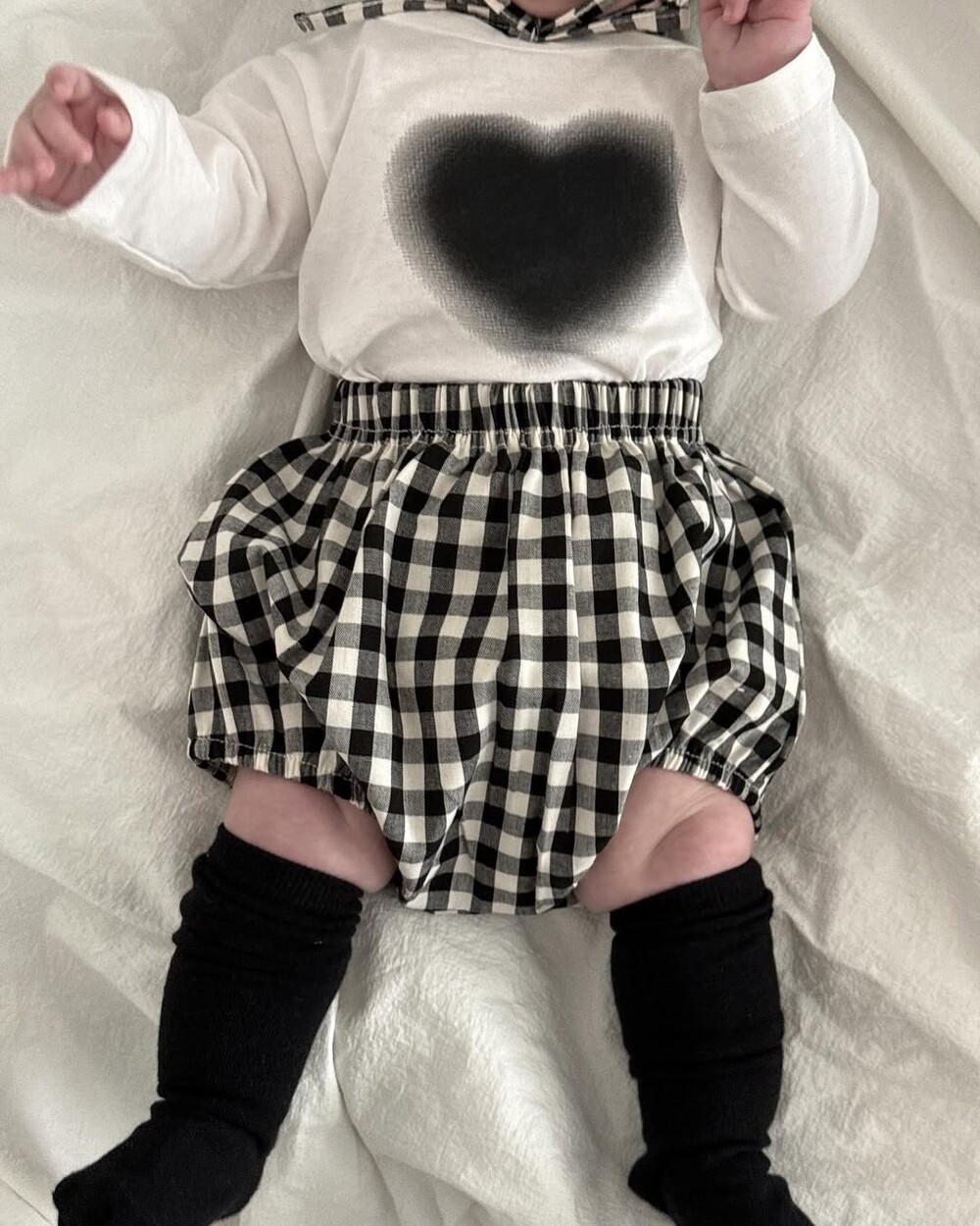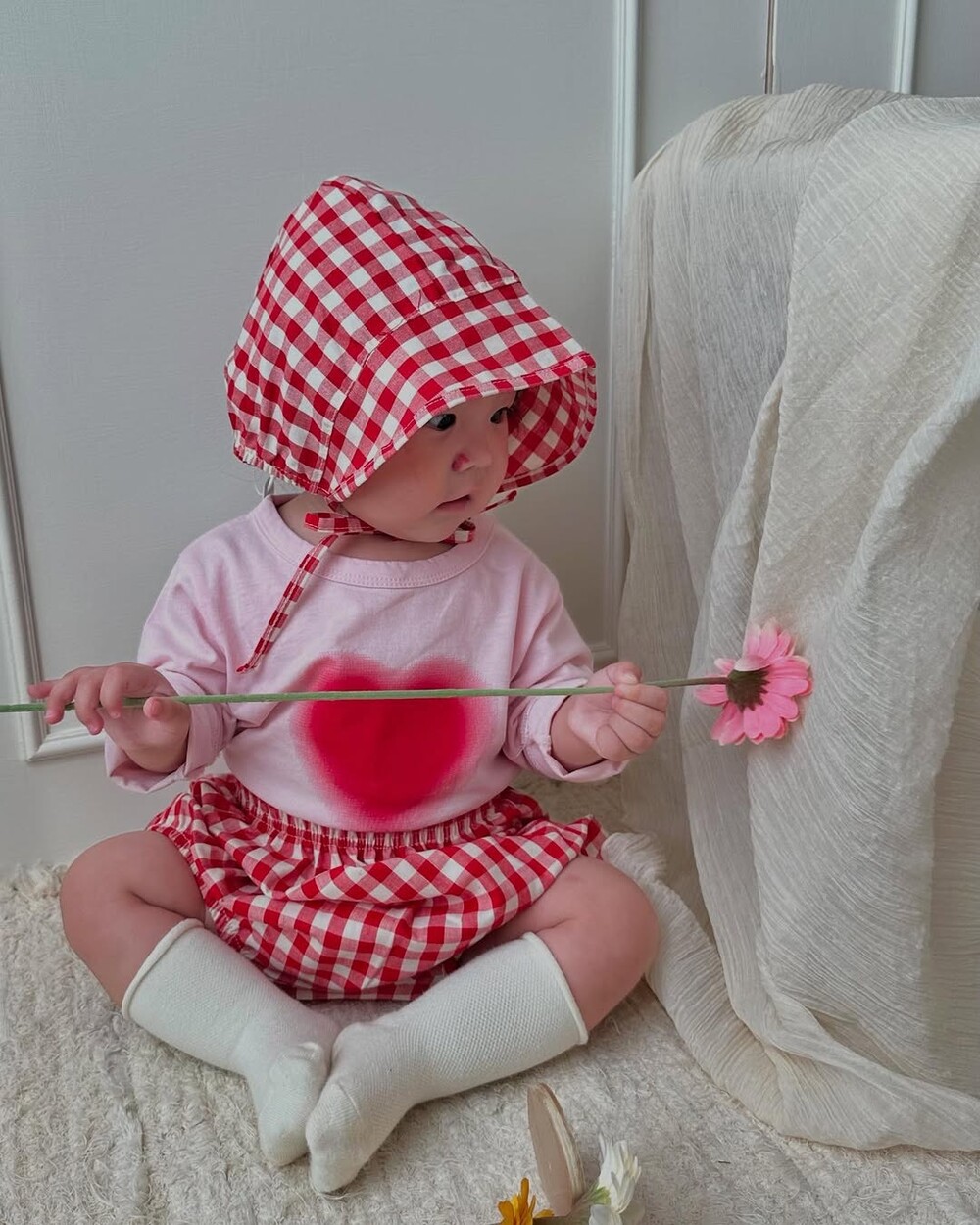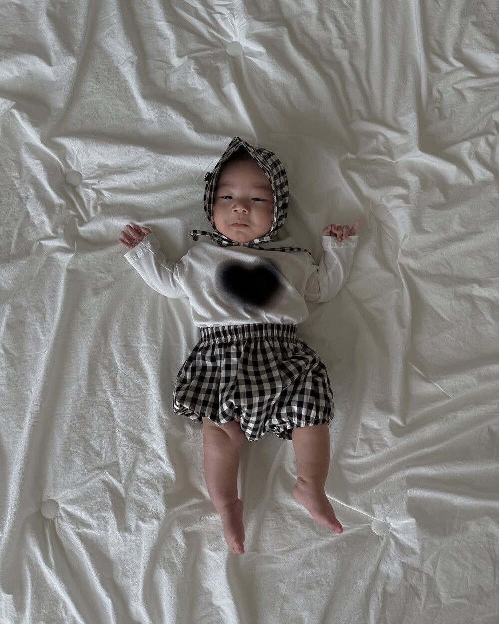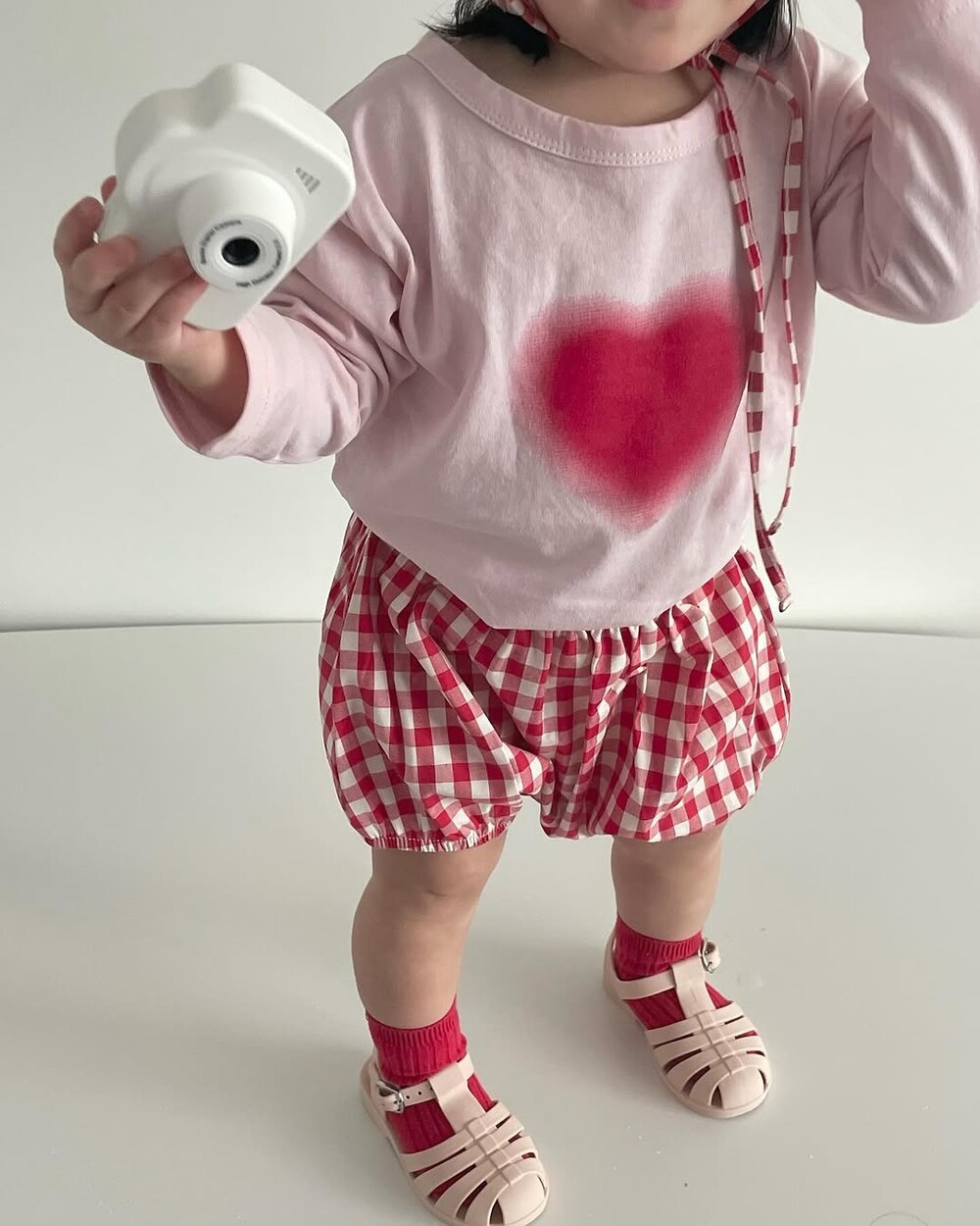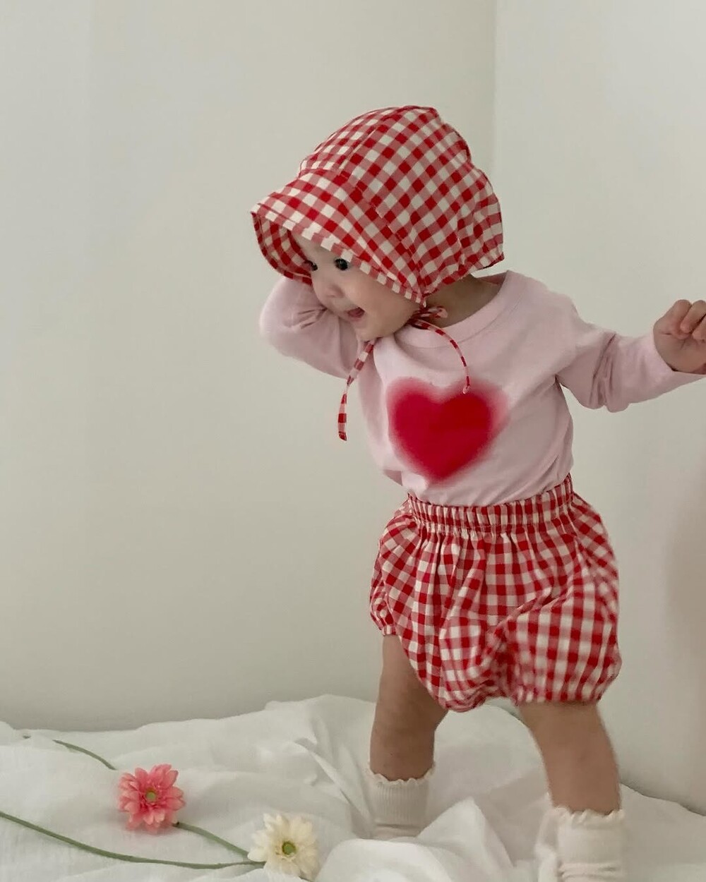 - 체크 조거팬츠/하트 티셔츠 XXS size