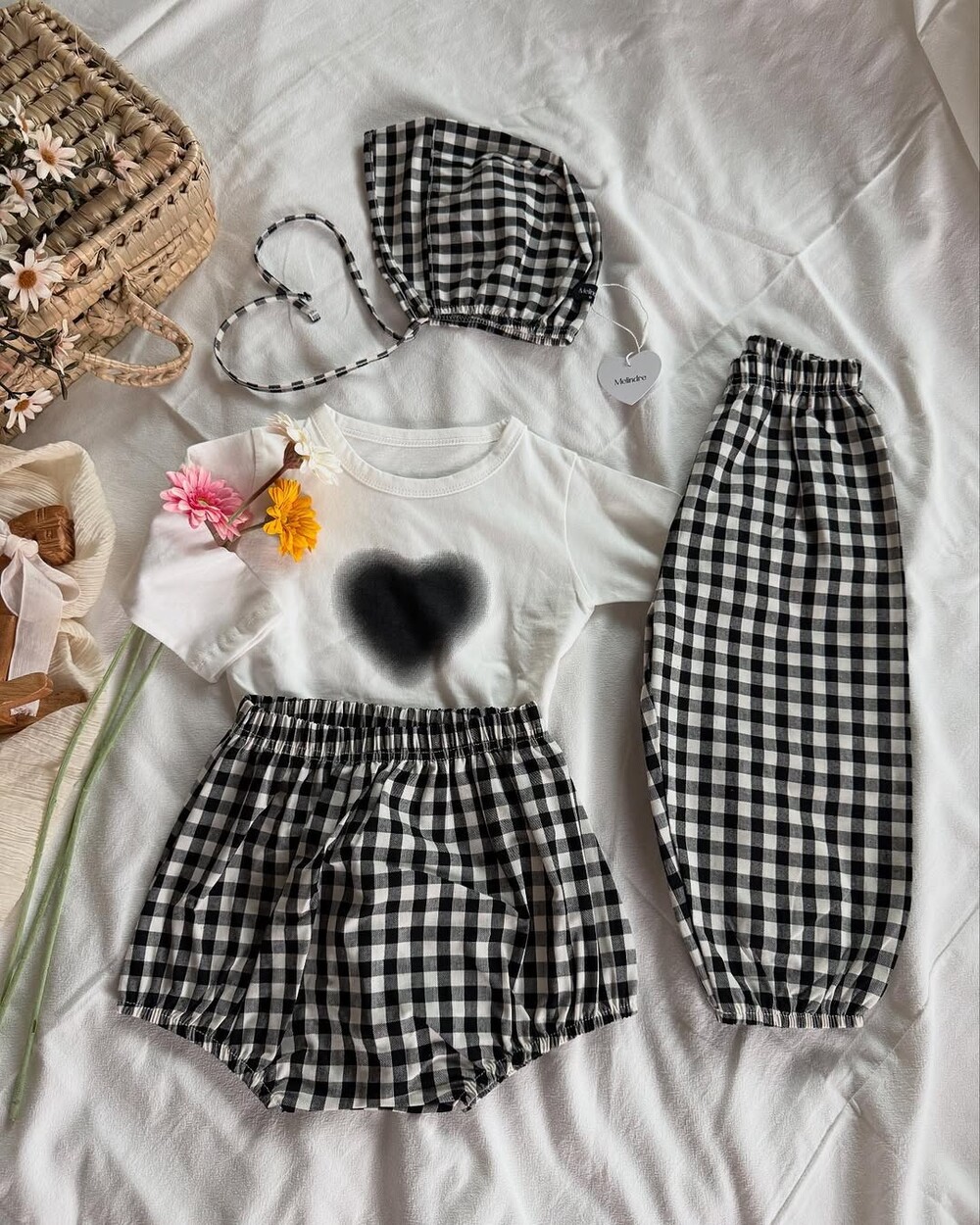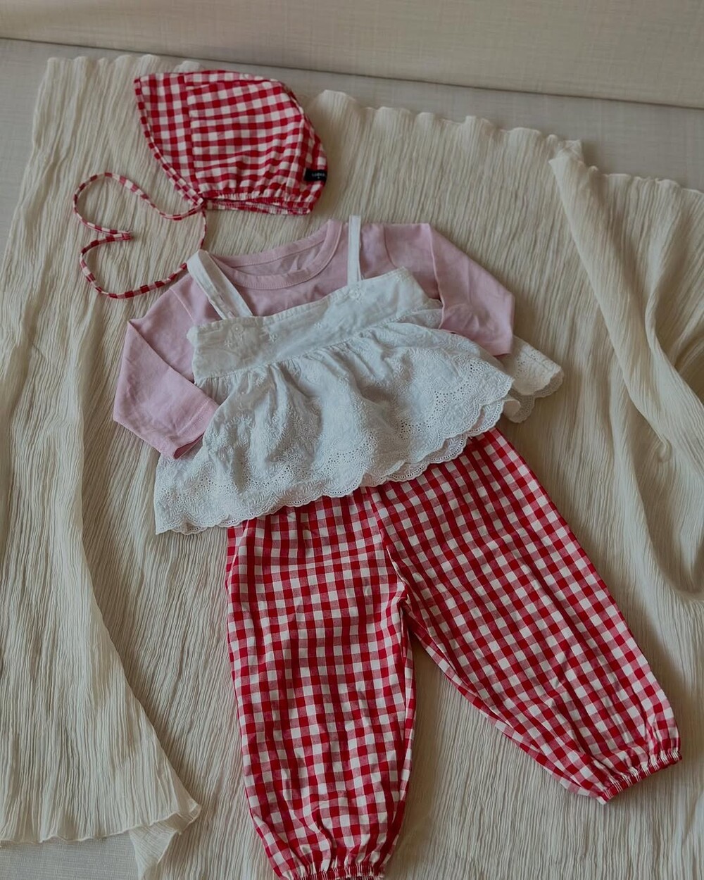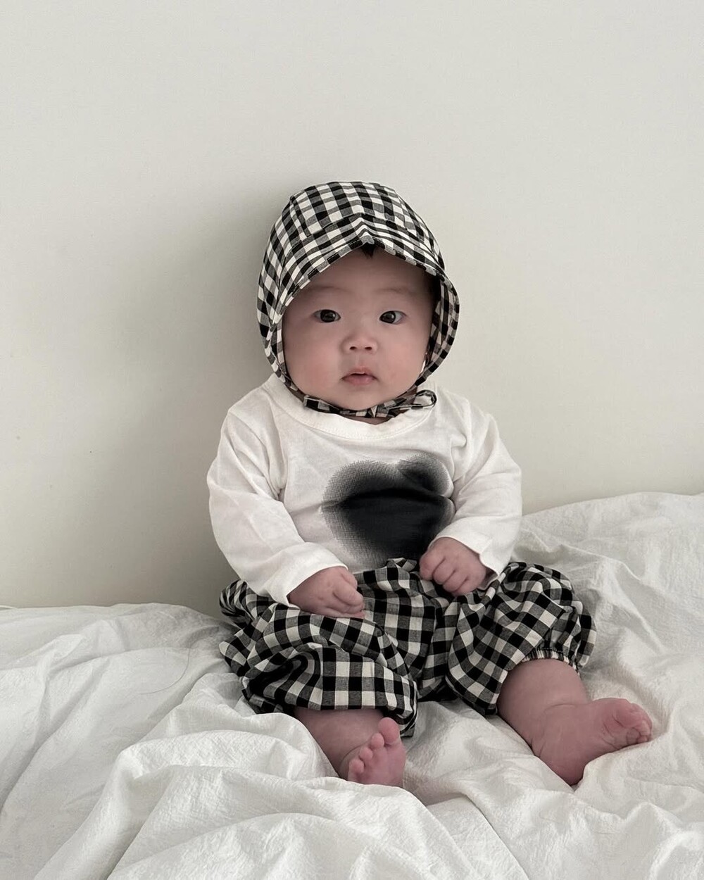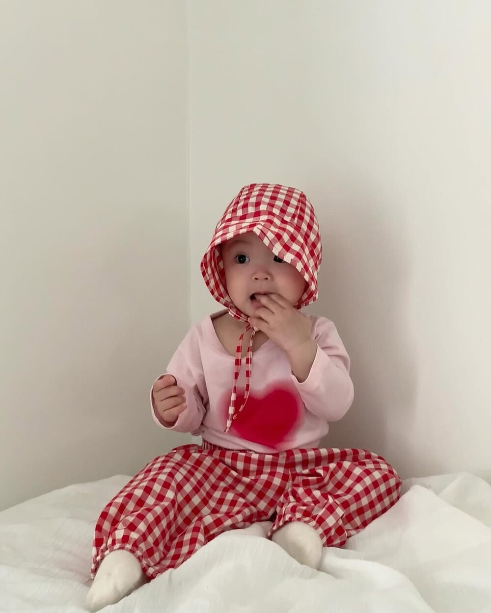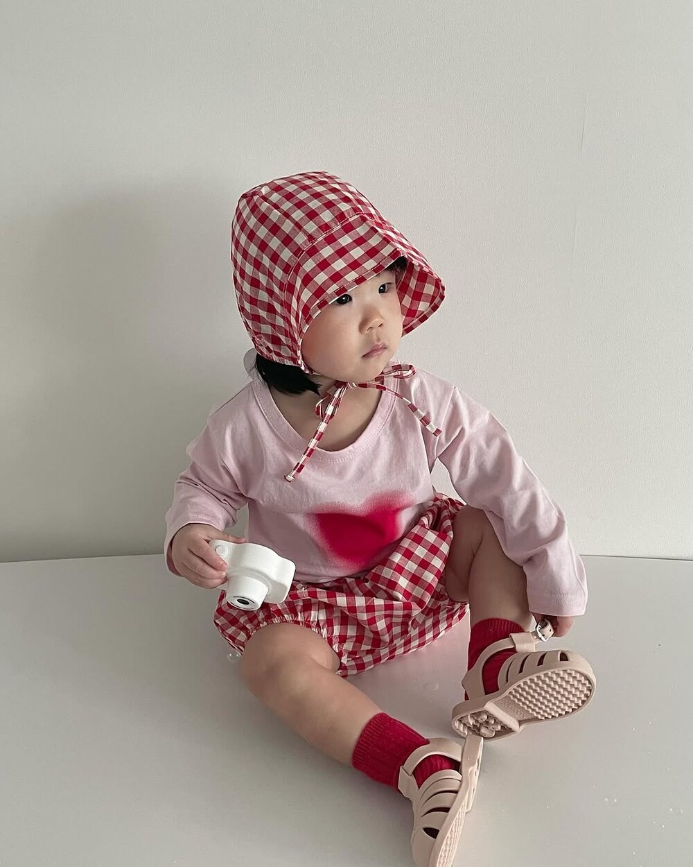 - 체크 조거팬츠/하트 티셔츠 XXS size