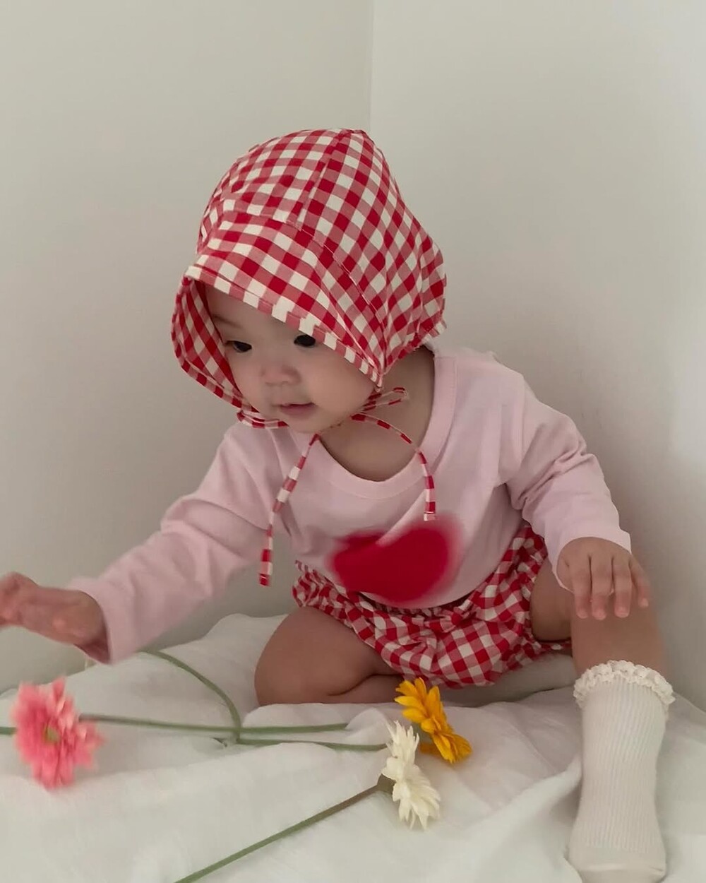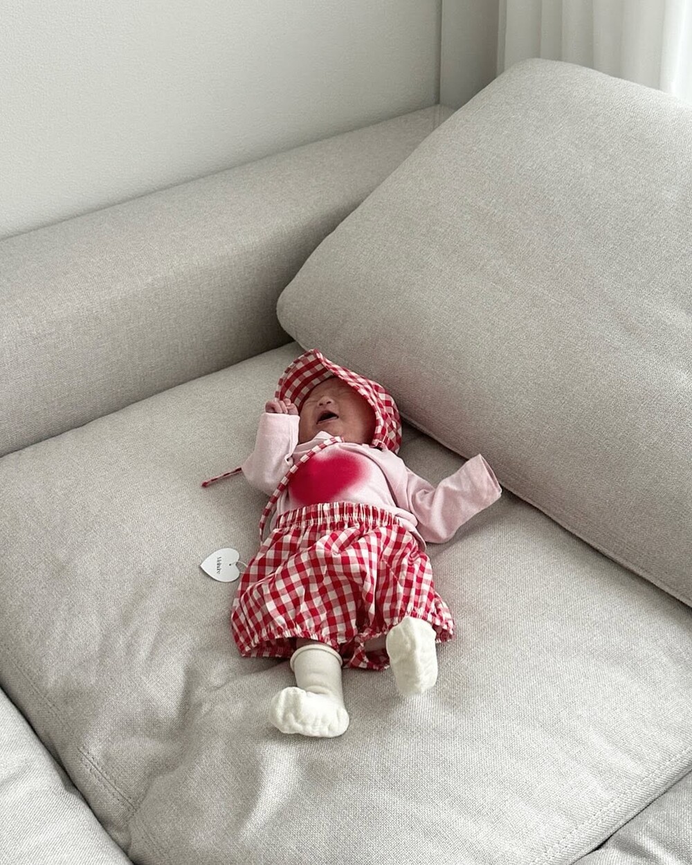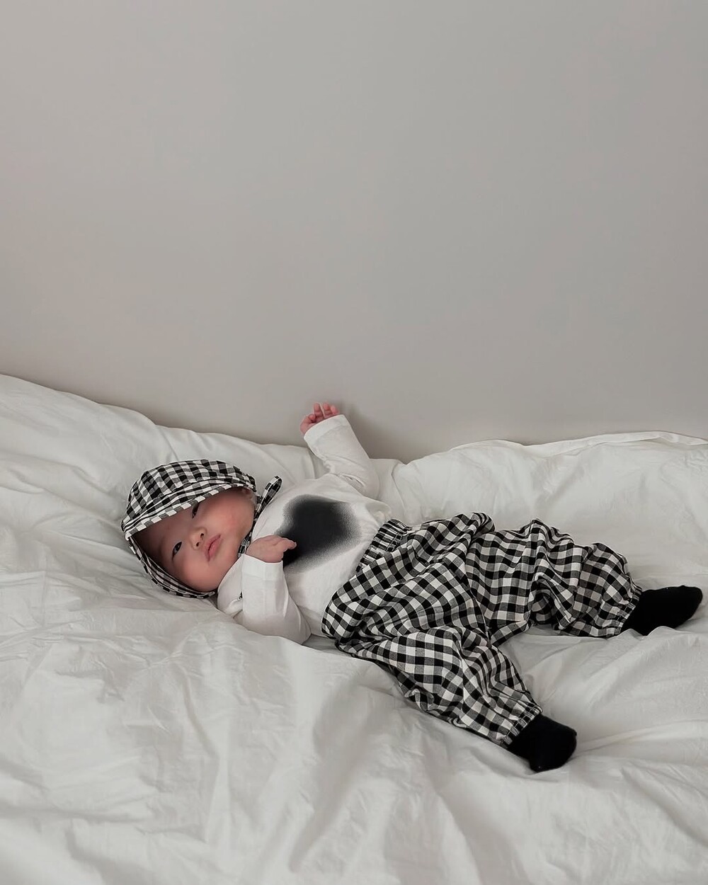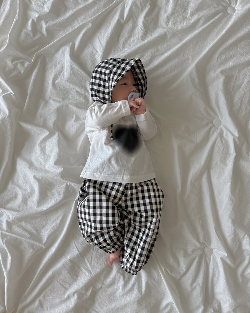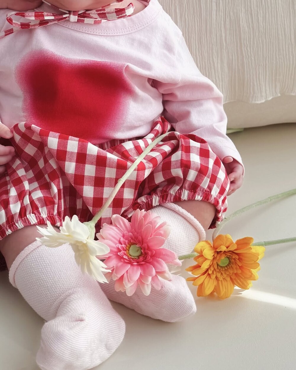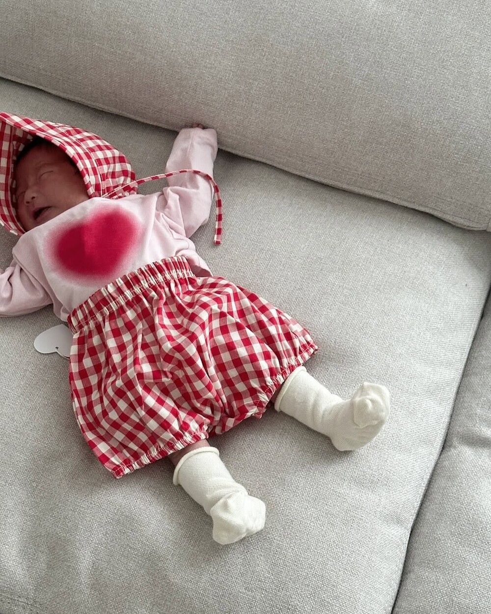 - 체크 조거팬츠/하트 티셔츠 XXS size