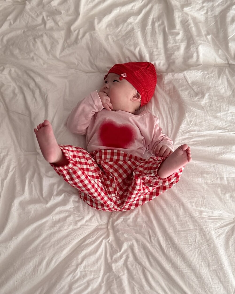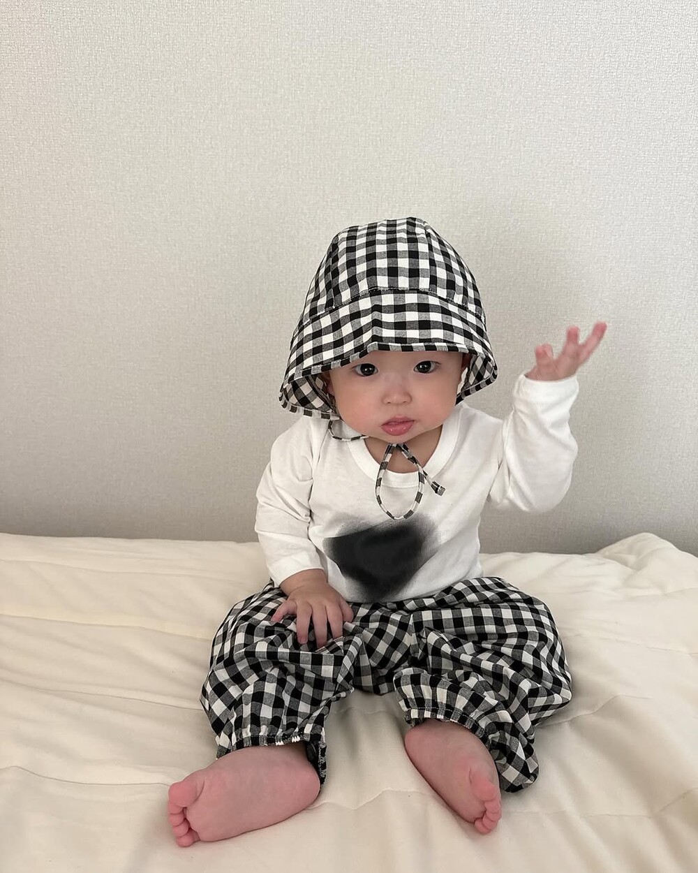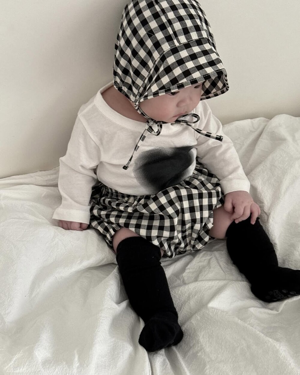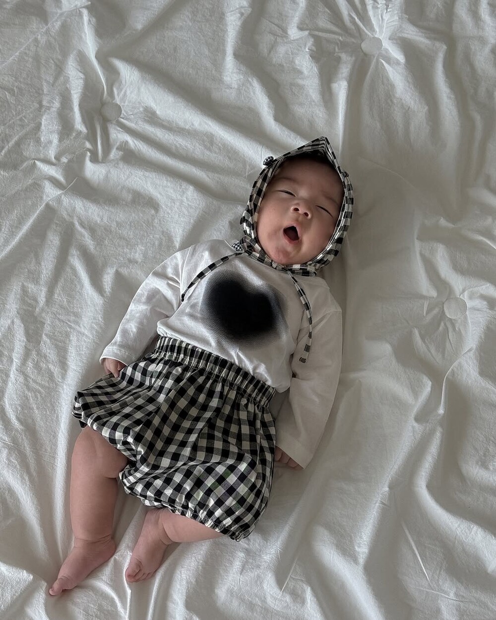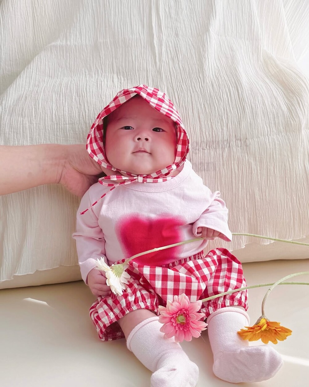 - 체크 조거팬츠/하트 티셔츠 XXS size
