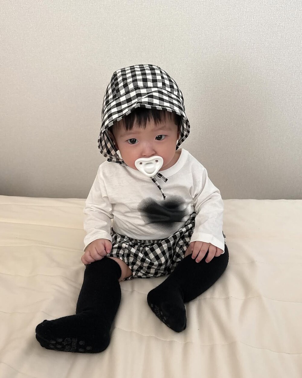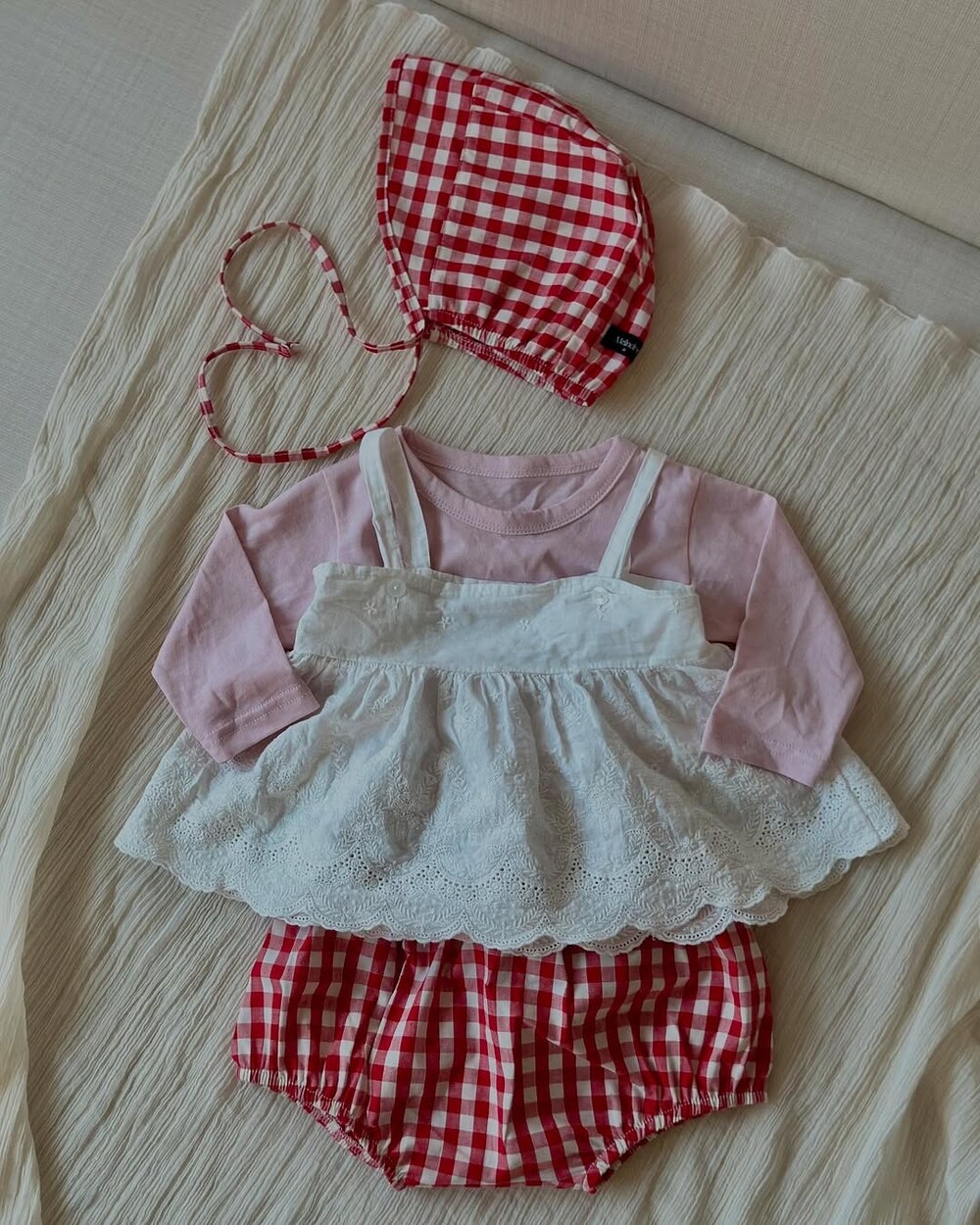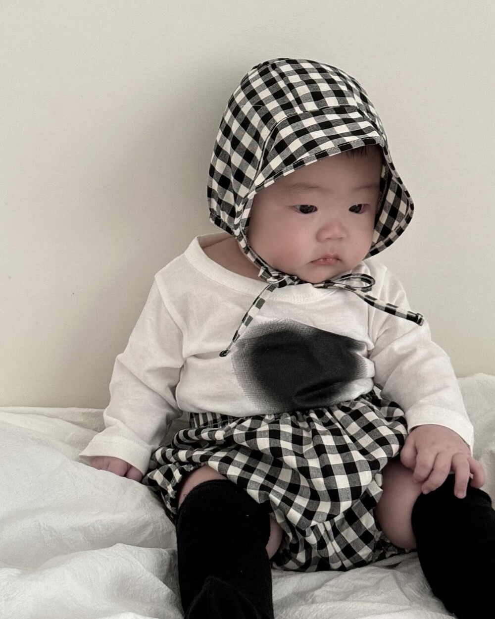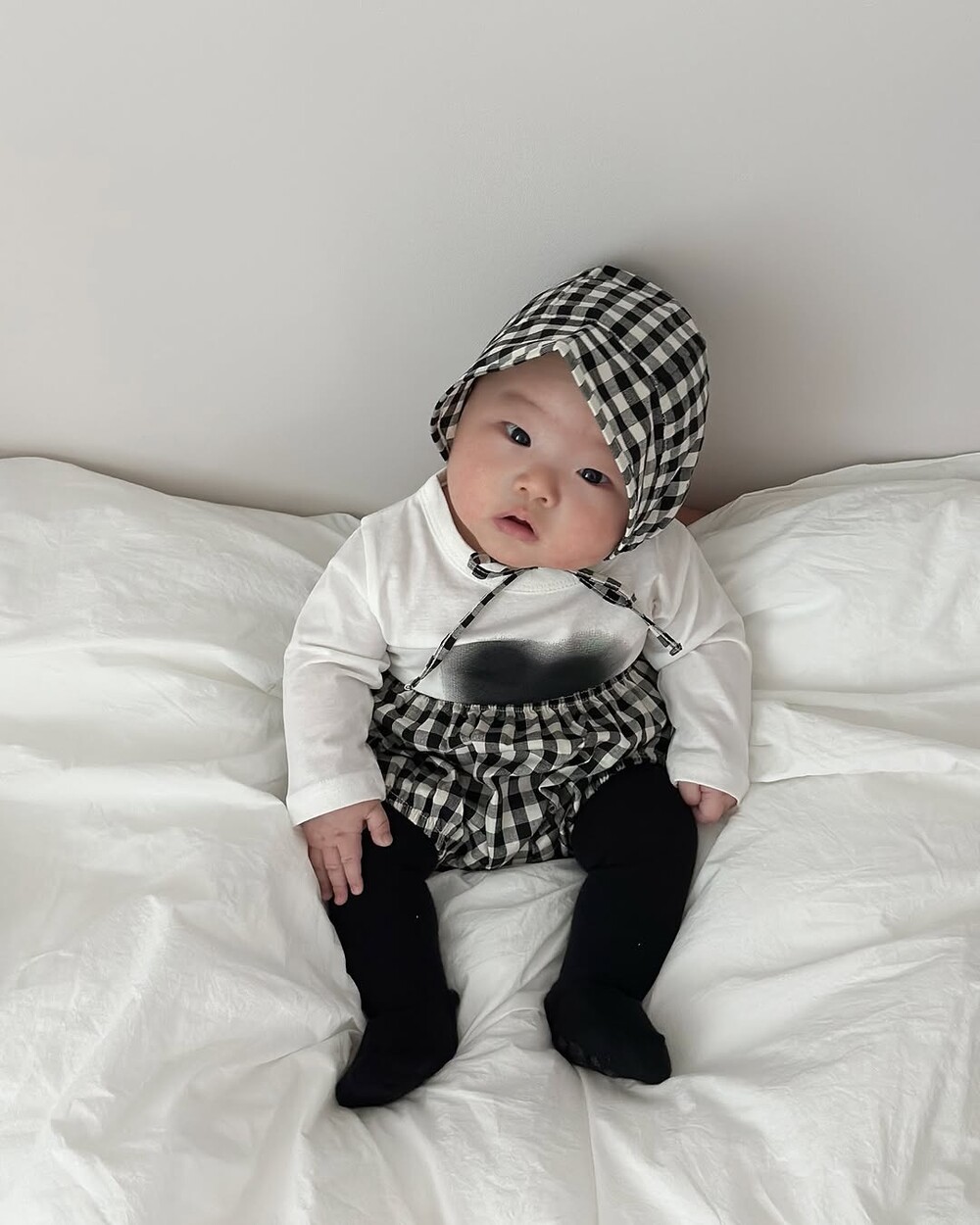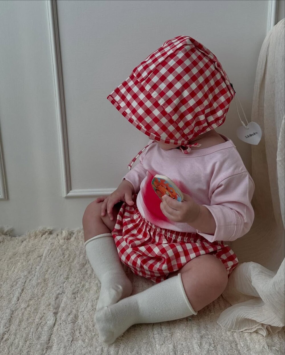 - 체크 조거팬츠/하트 티셔츠 XXS size