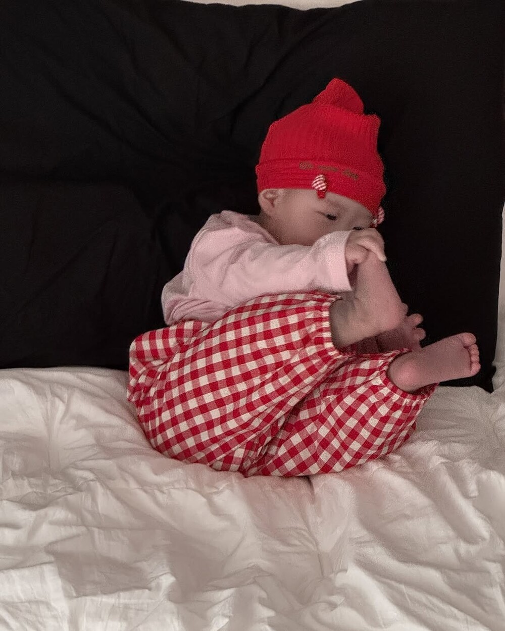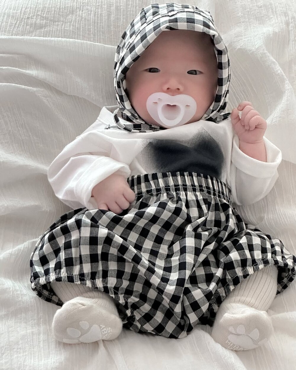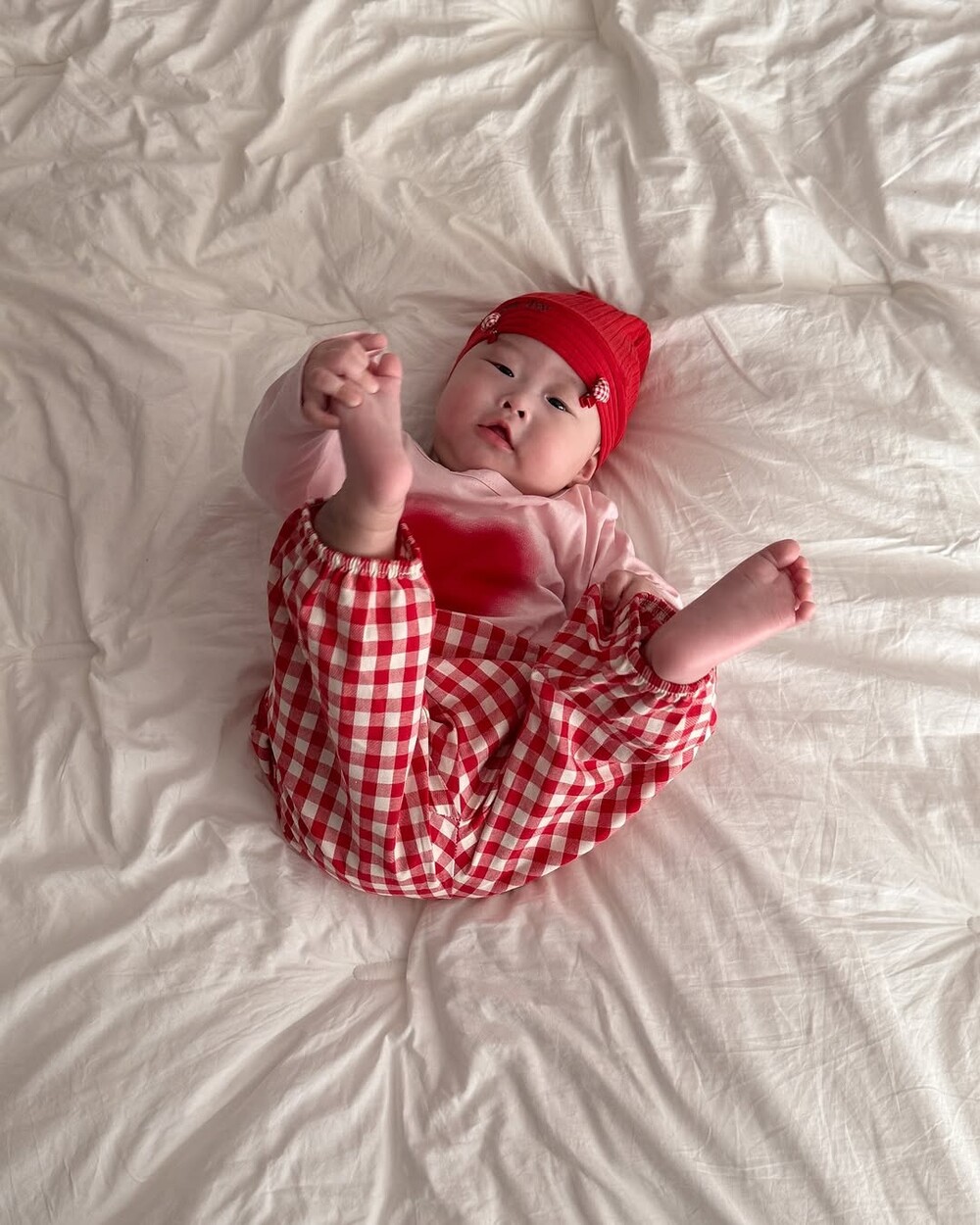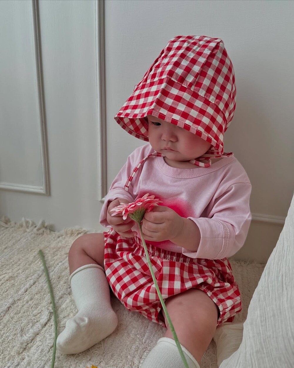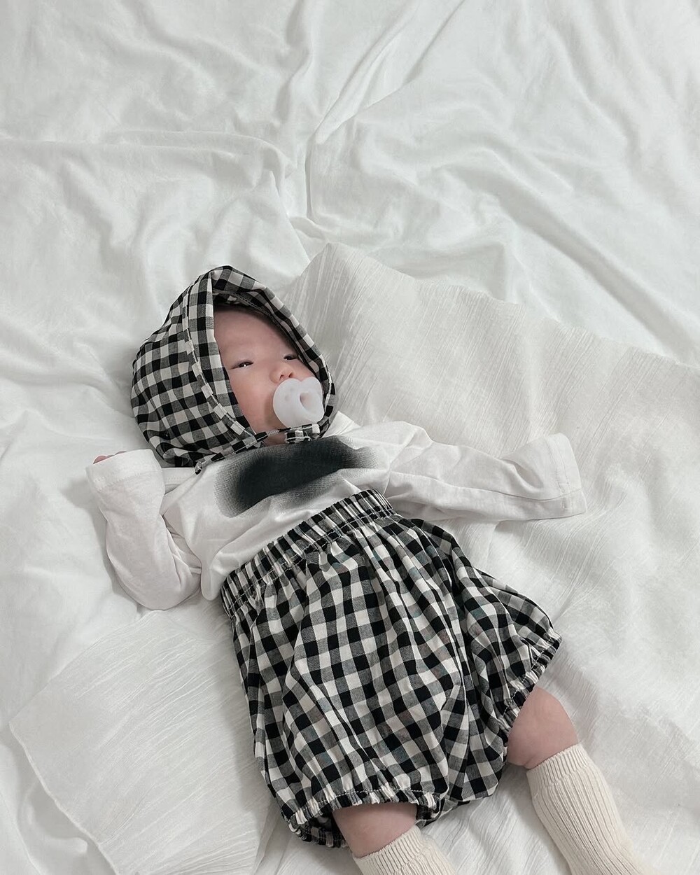 - 체크 조거팬츠/하트 티셔츠 XXS size