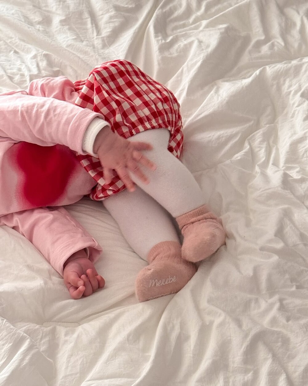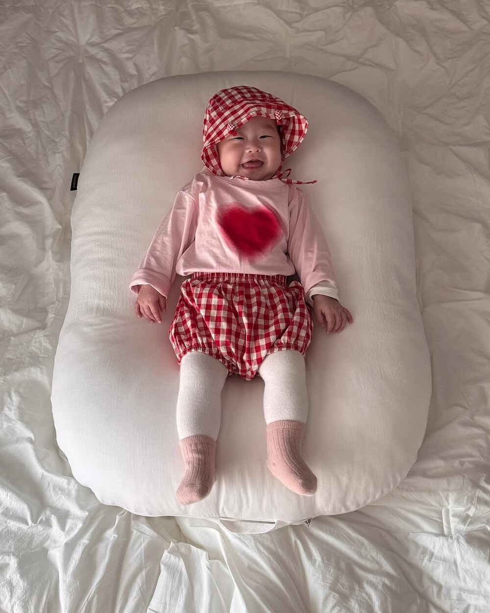 자극없는 면100% 원단에 스프레이로 뿌린듯한 하트나염이 프린팅 되어 있어요.
