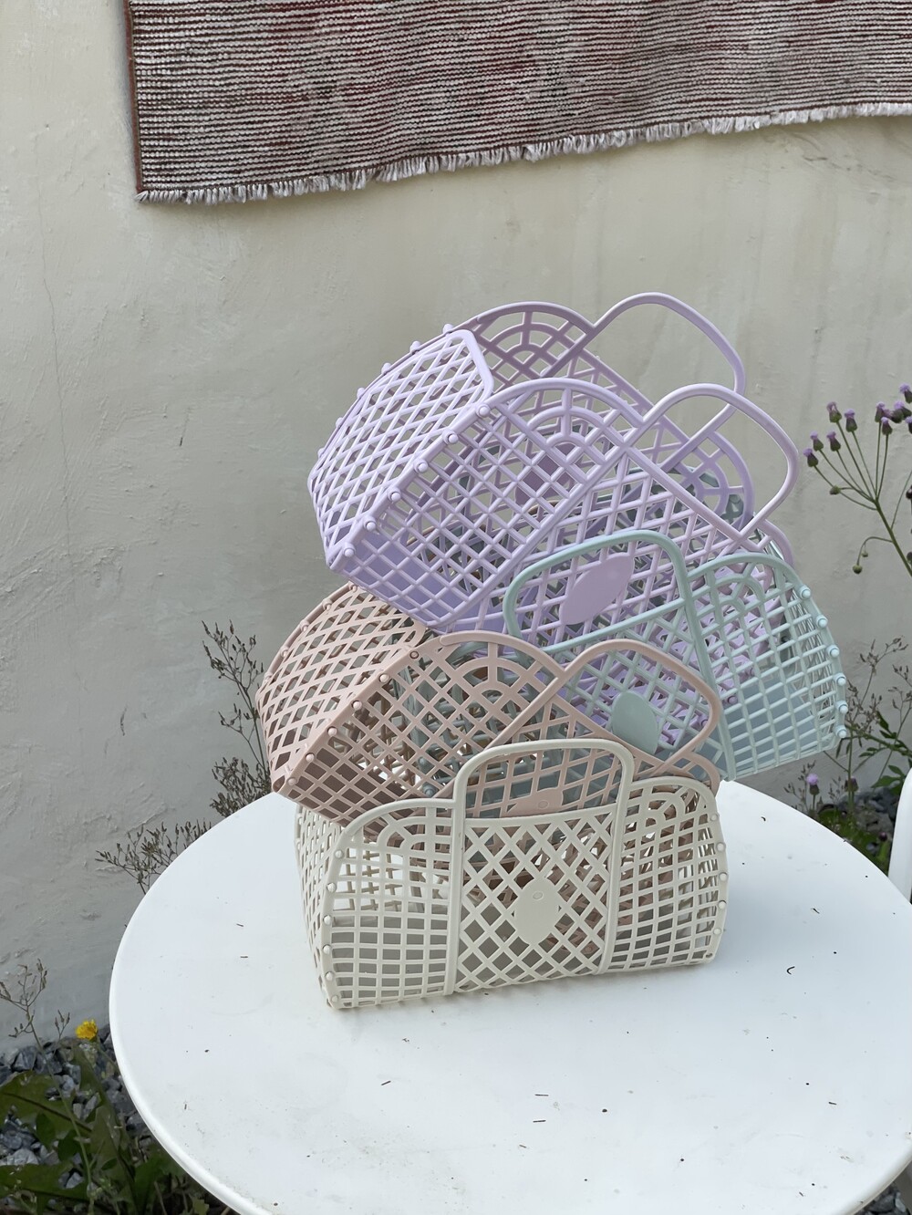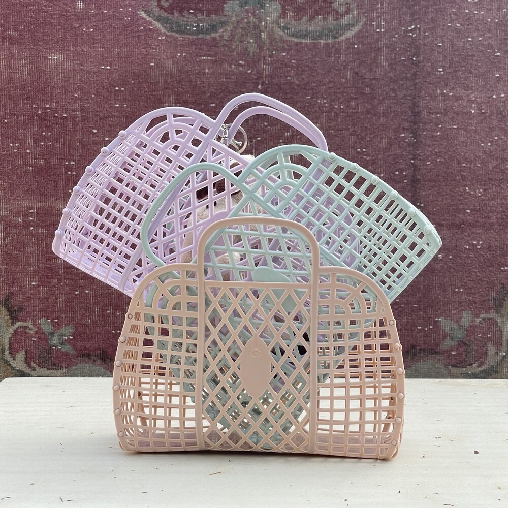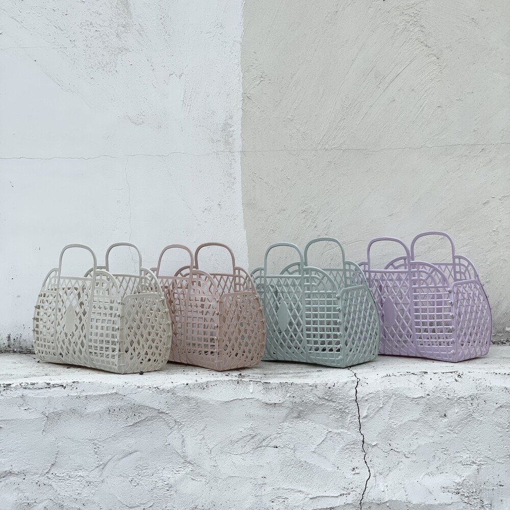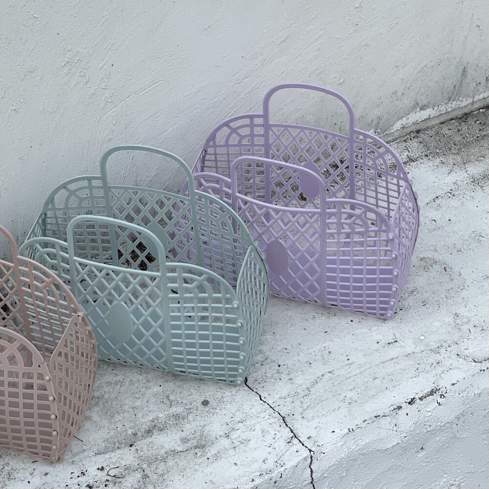 구멍이 나 있어, 아이들 모래놀이가방이나 비치백으로 좋은 젤리백입니다. 감성가득한 톤다운된 컬러들로만 가져왔어요.