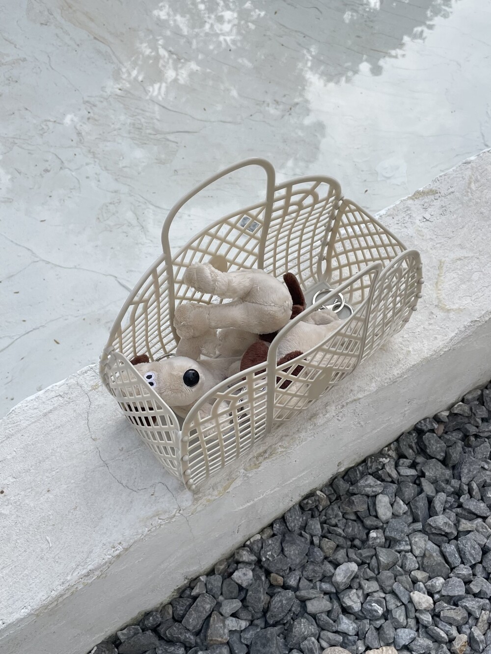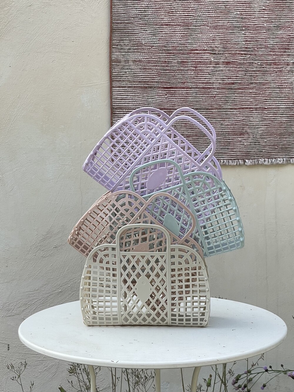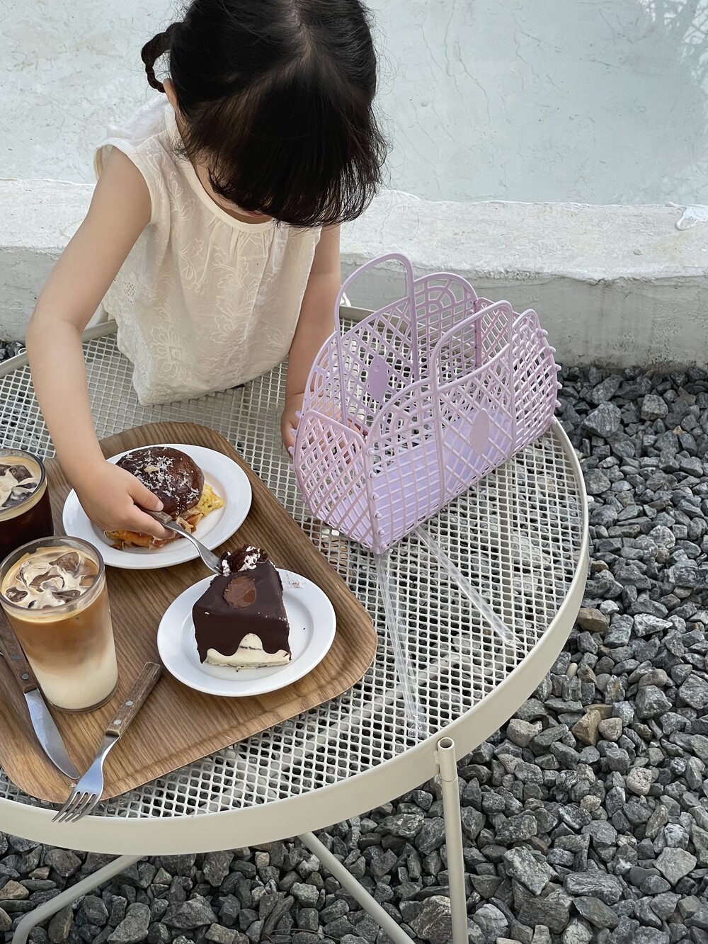 구멍이 나 있어, 아이들 모래놀이가방이나 비치백으로 좋은 젤리백입니다. 감성가득한 톤다운된 컬러들로만 가져왔어요.
