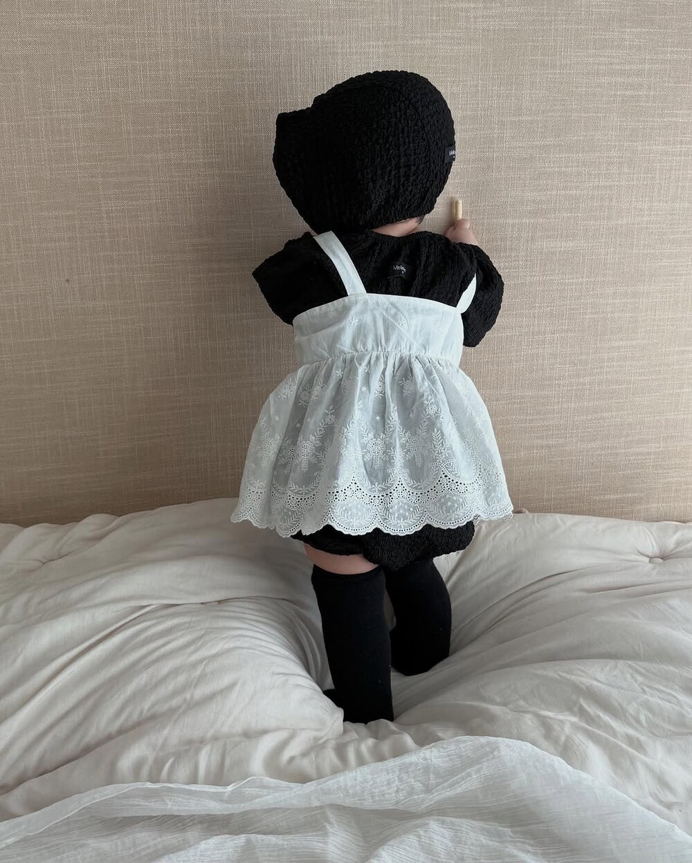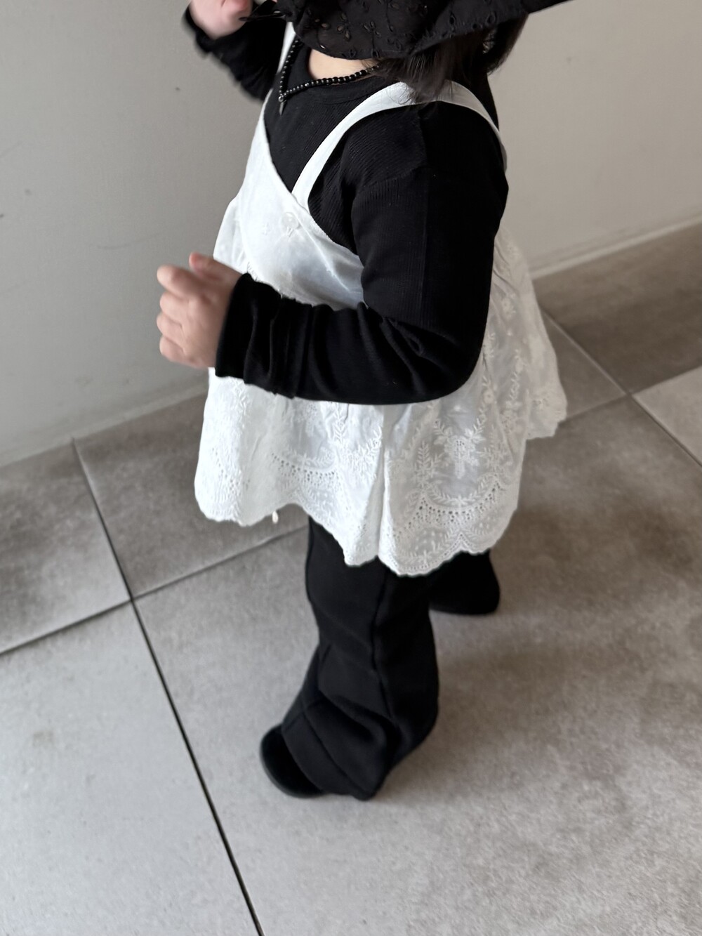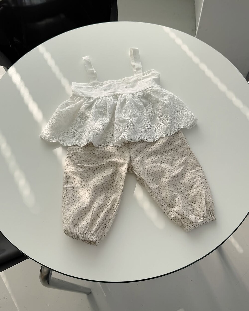 레이스 뷔스티에는 끈에 단추가 2개 달려있어 아이들 성장속도에 맞춰 조절할 수 있습니다.