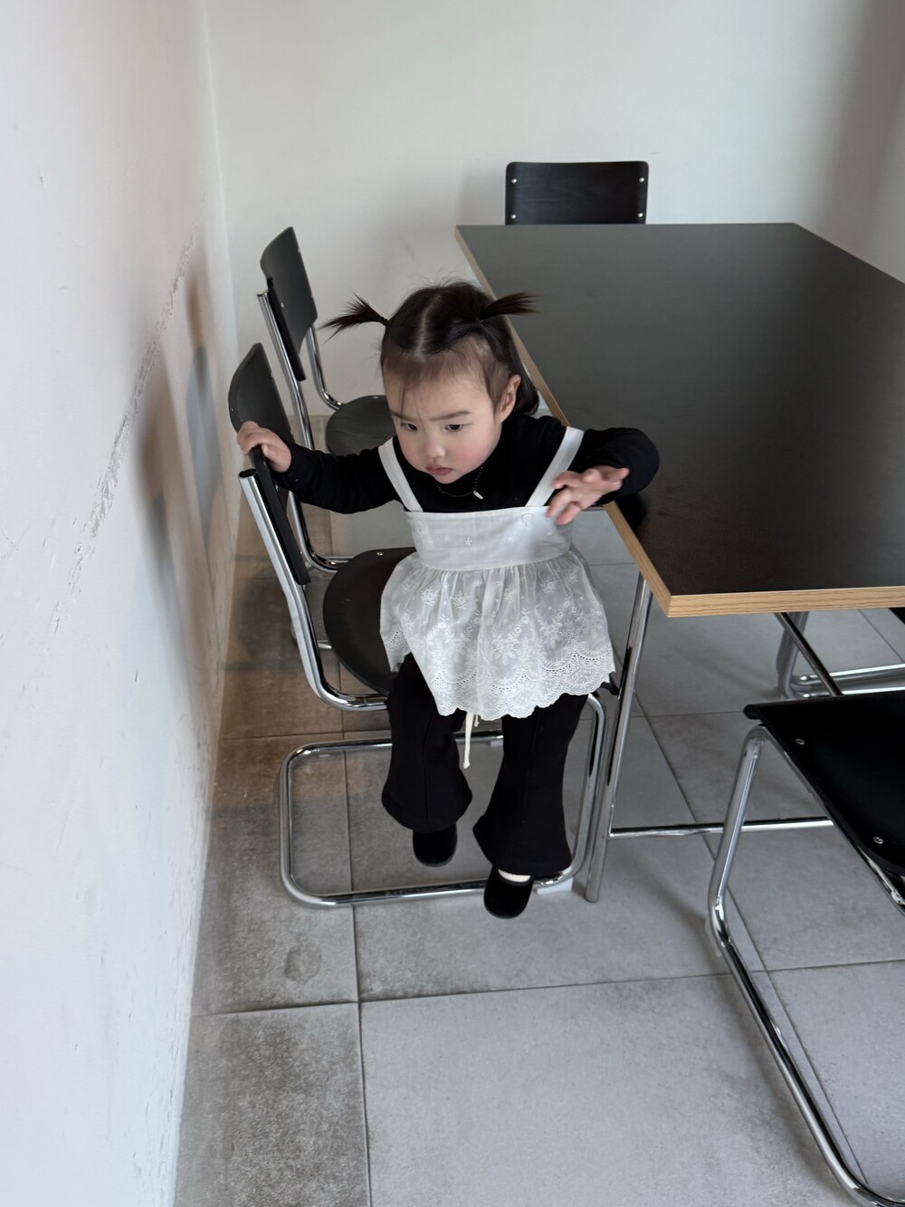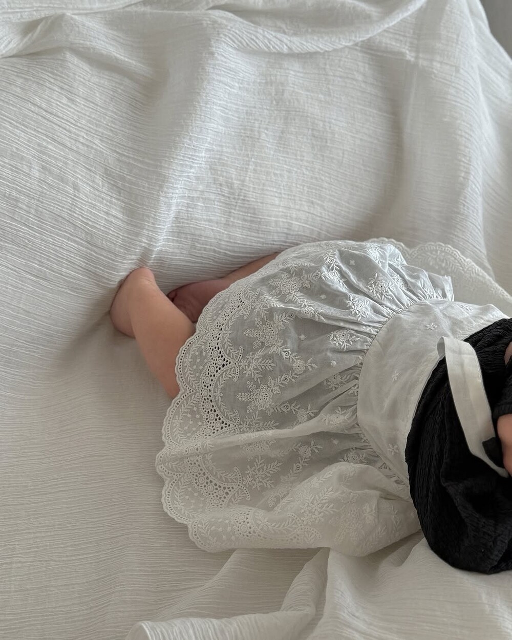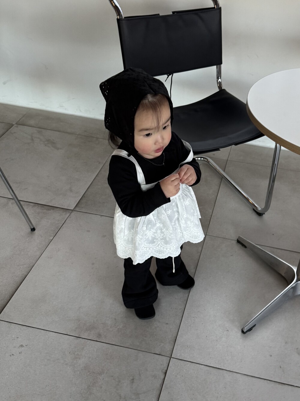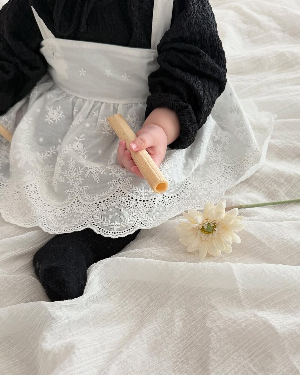 레이스 뷔스티에는 끈에 단추가 2개 달려있어 아이들 성장속도에 맞춰 조절할 수 있습니다.