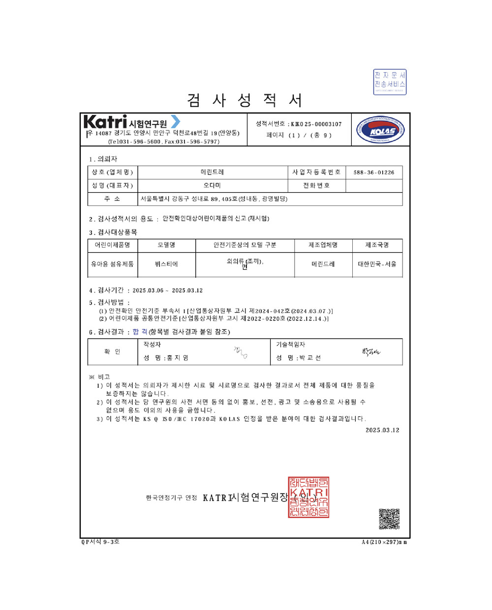 국내생산하였고, KC안전인증을 획득해 우리아이에게 안심하고 입힐 수 있어요.