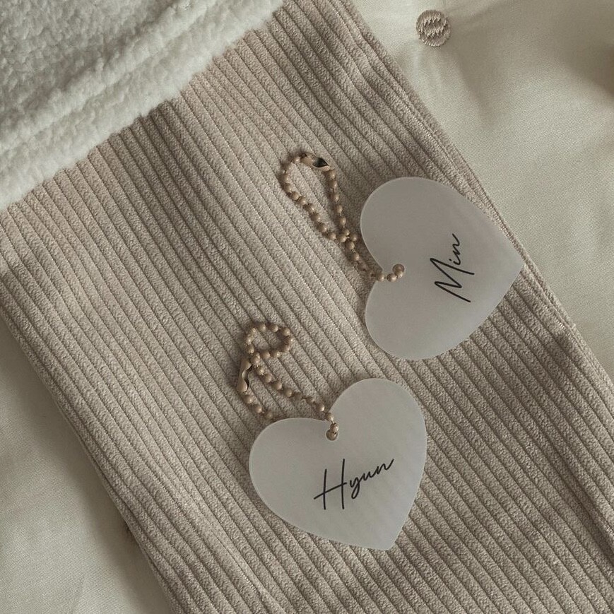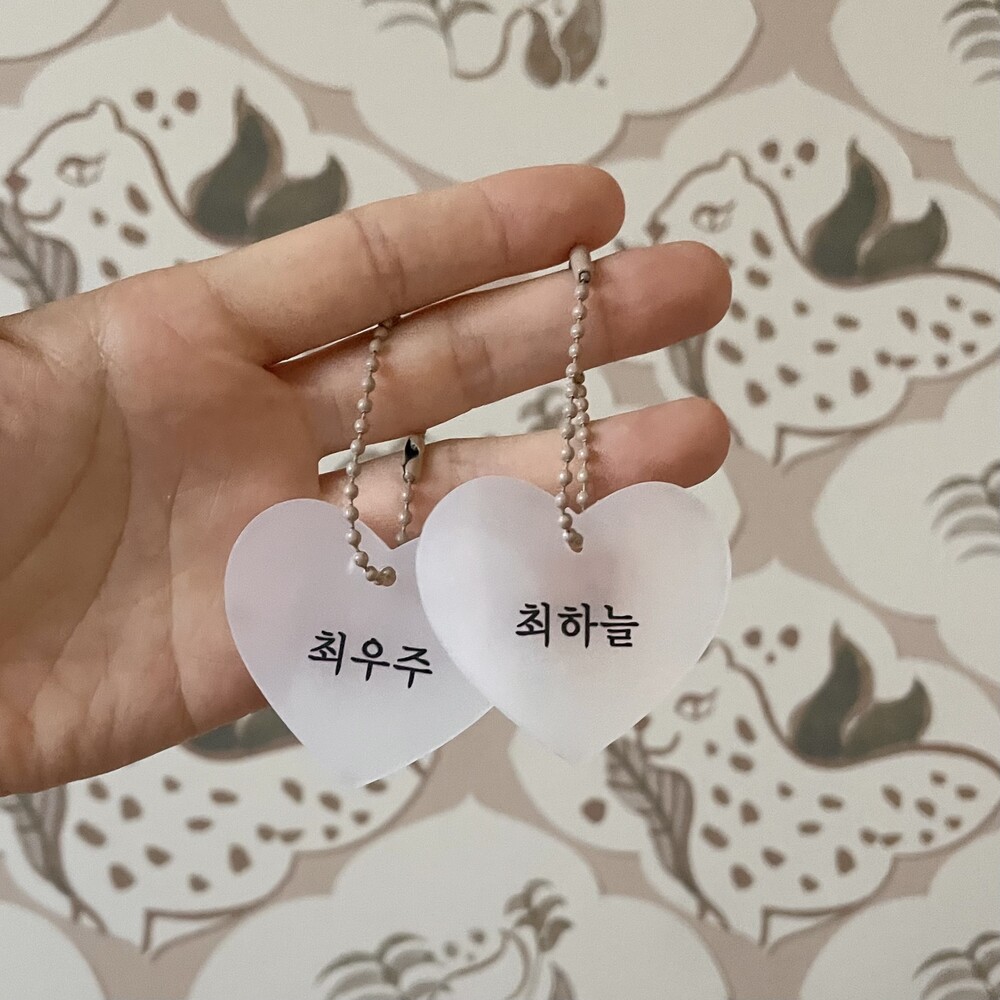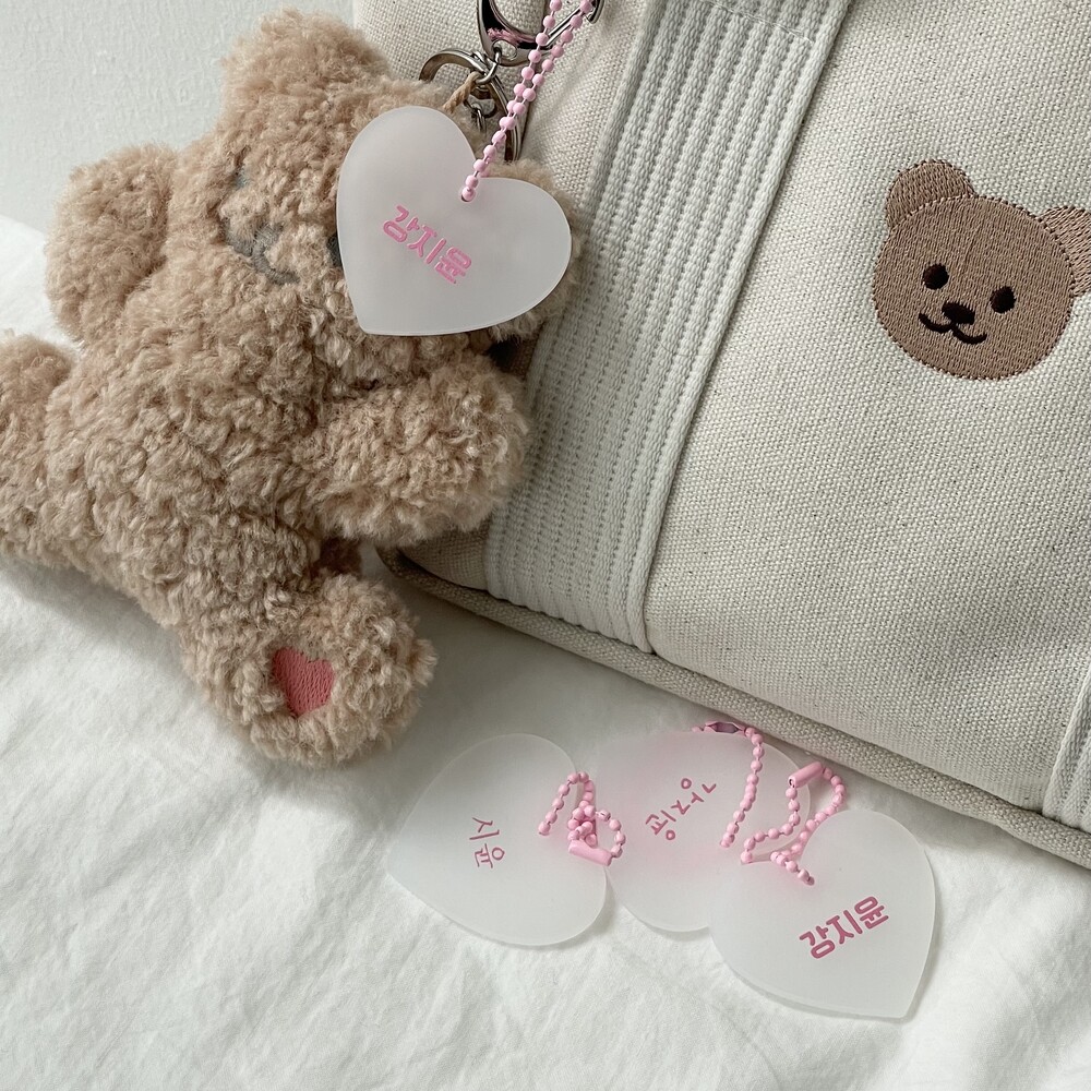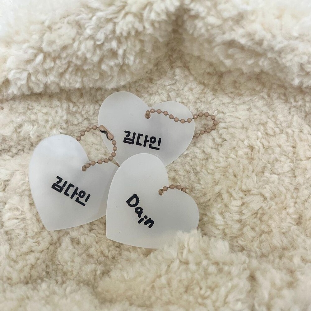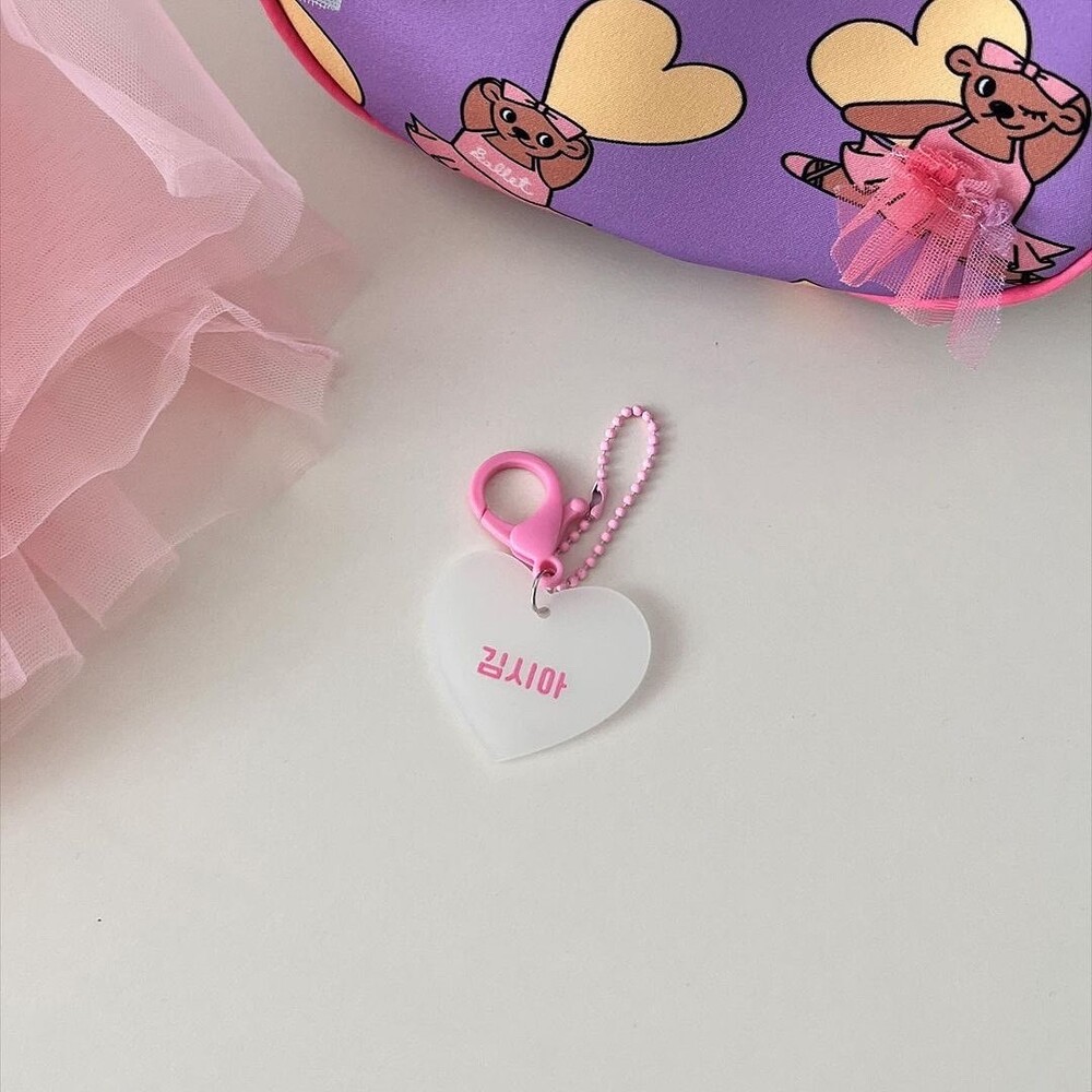"어린이집 가방에 달아도 좋고, 낮잠이불에도 좋아요♡ 하트 아크릴 네임텍, 이렇게 이쁜데 가격까지 착하다구요!"