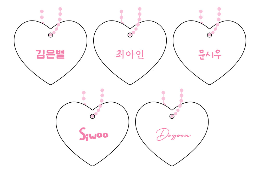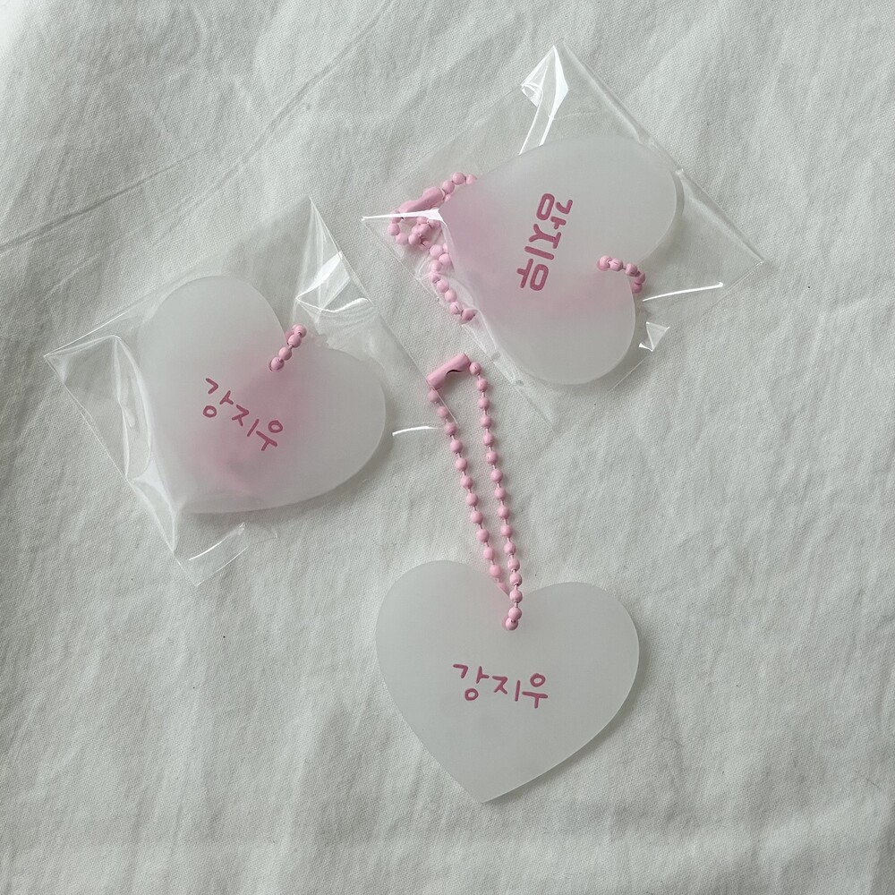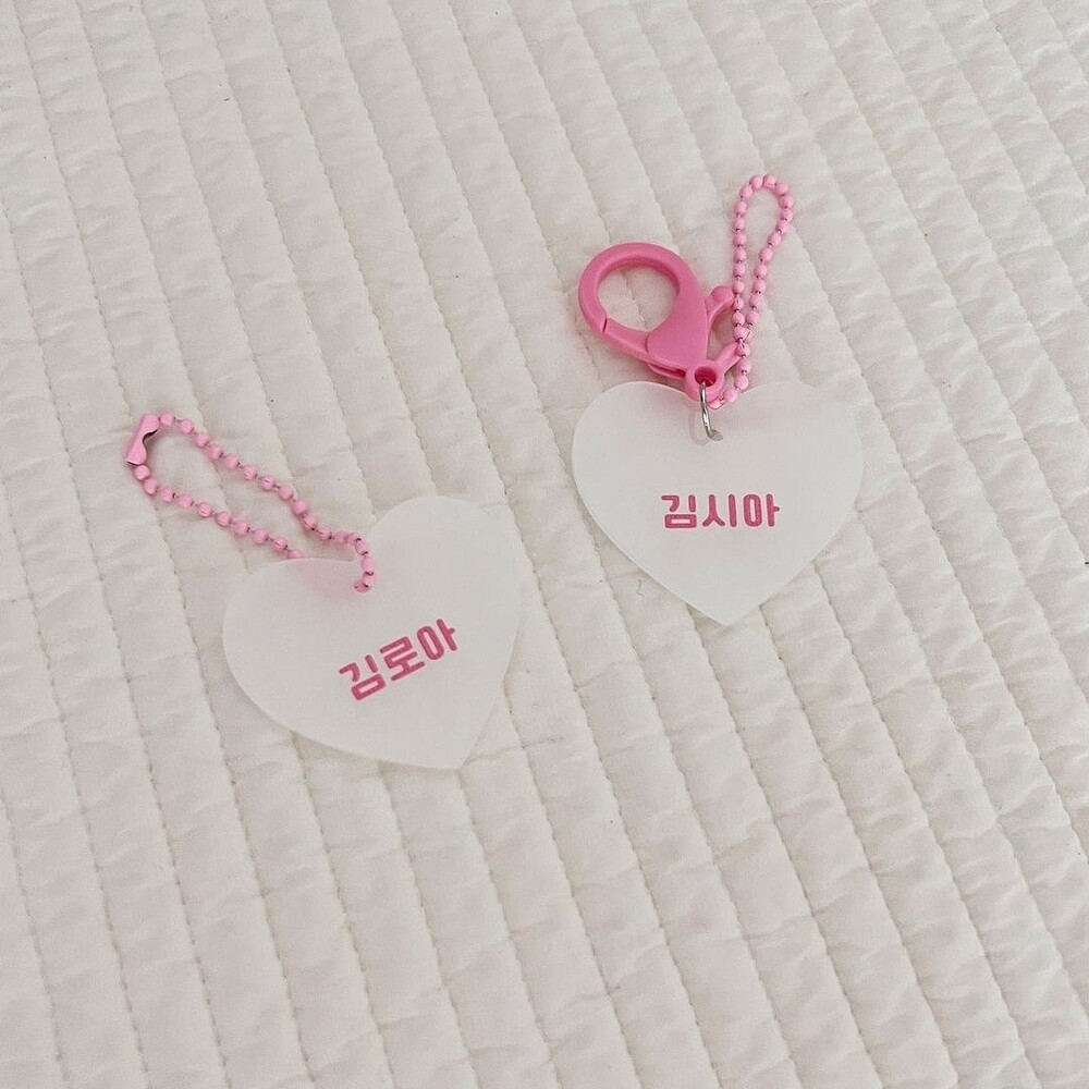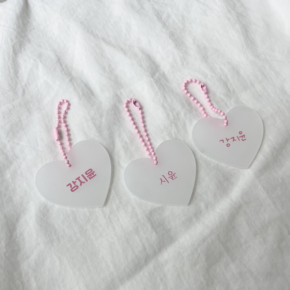 [자체제작] 핑크 하트아크릴네임택 3개 (+체인볼 3개 추가증정)