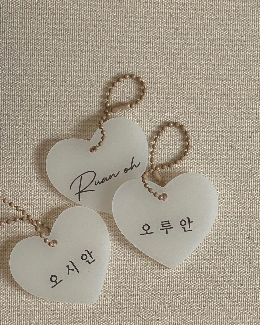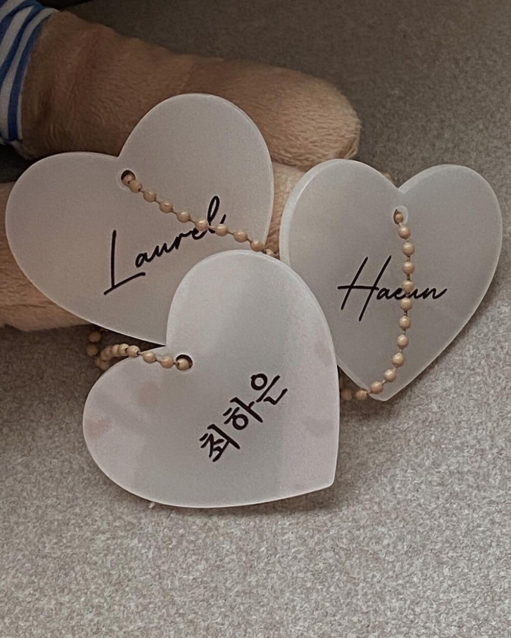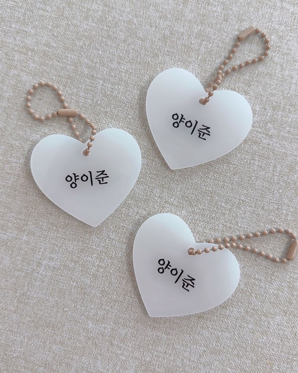 [자체제작] 핑크 하트아크릴네임택 3개 (+체인볼 3개 추가증정)
