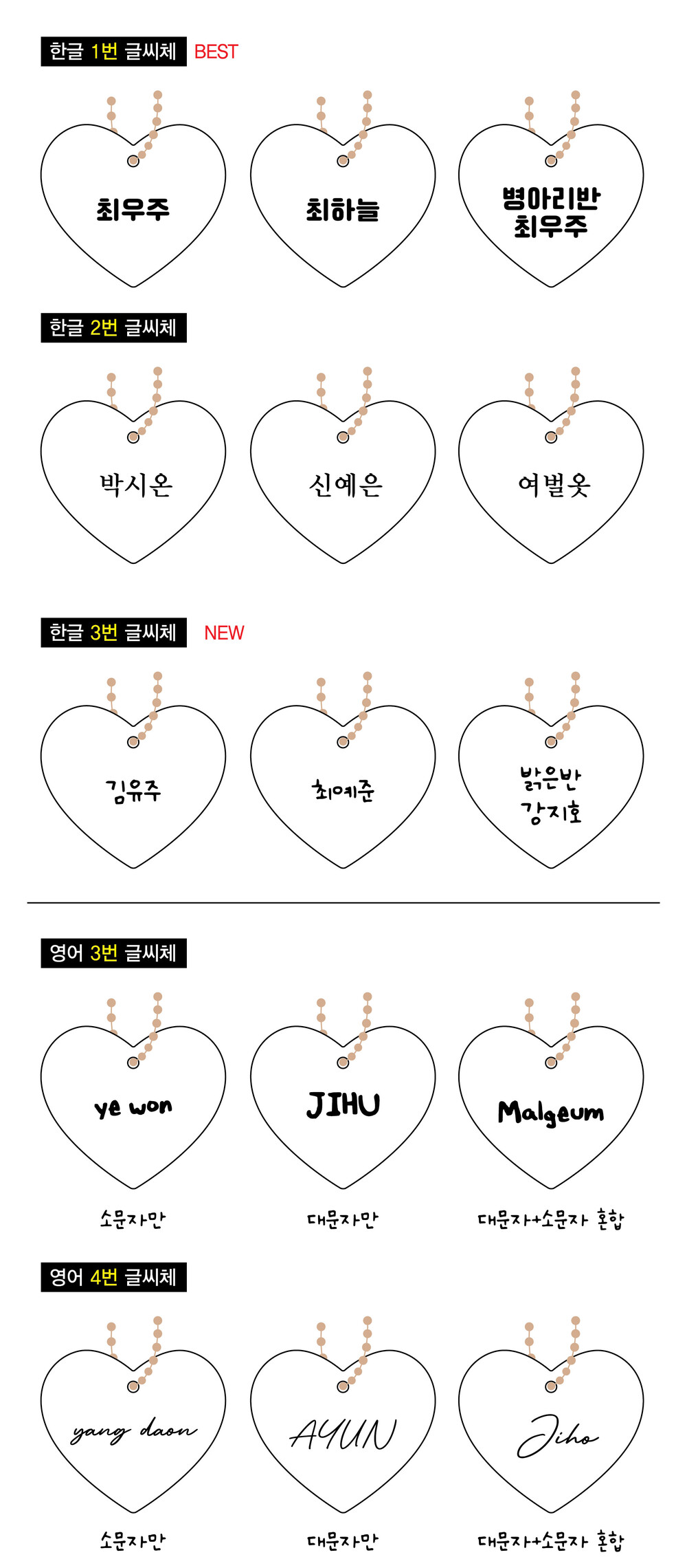 -하트1/하트2/하트3 문구는 /으로 구분해주세요!