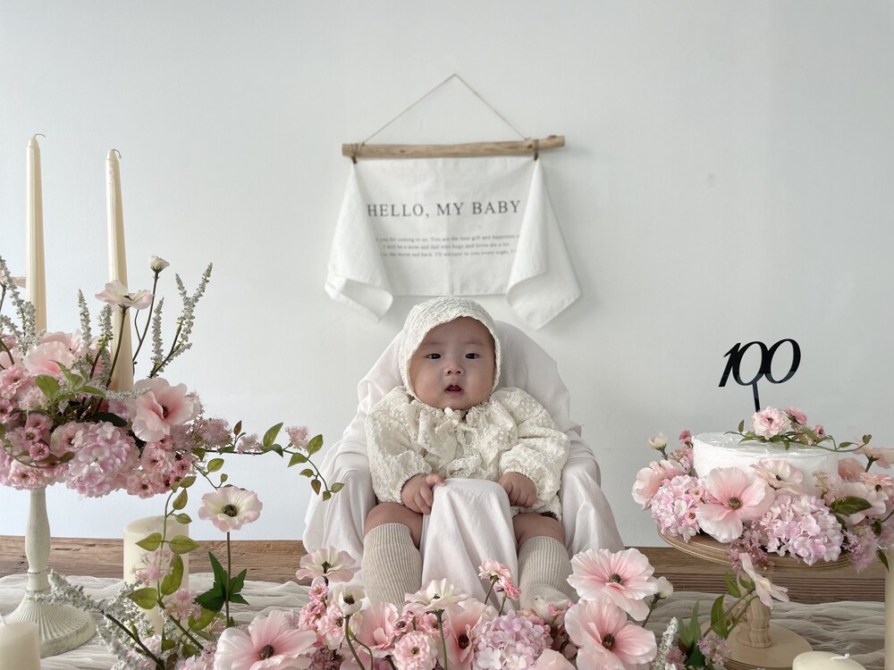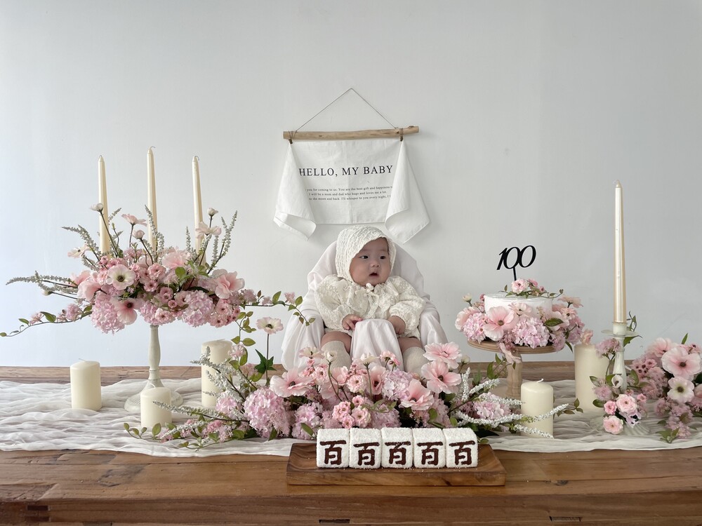 빈티지무드의 테이블위에 깔아주면 더욱 예뻐요. 백일상/돌상/브라이덜샤워 데코천으로 다양하게 활용해보시길바라요.