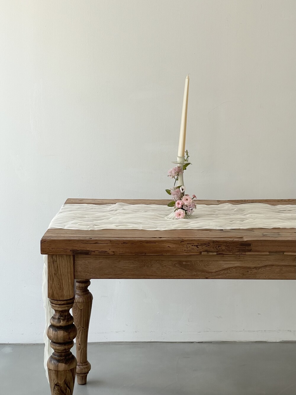 사이즈는 3가지 타입으로 준비하였습니다. 세팅하고자하는 테이블 사이즈보다 1M정도 여유있게 주문하는 걸 추천드려요. 양 옆으로 주름천이 떨어지는 게 더욱 예쁘답니다. 여유있게 사이즈를 고른 후, 세팅해보며 예쁜길이로 직접 재단해도 좋아요.
